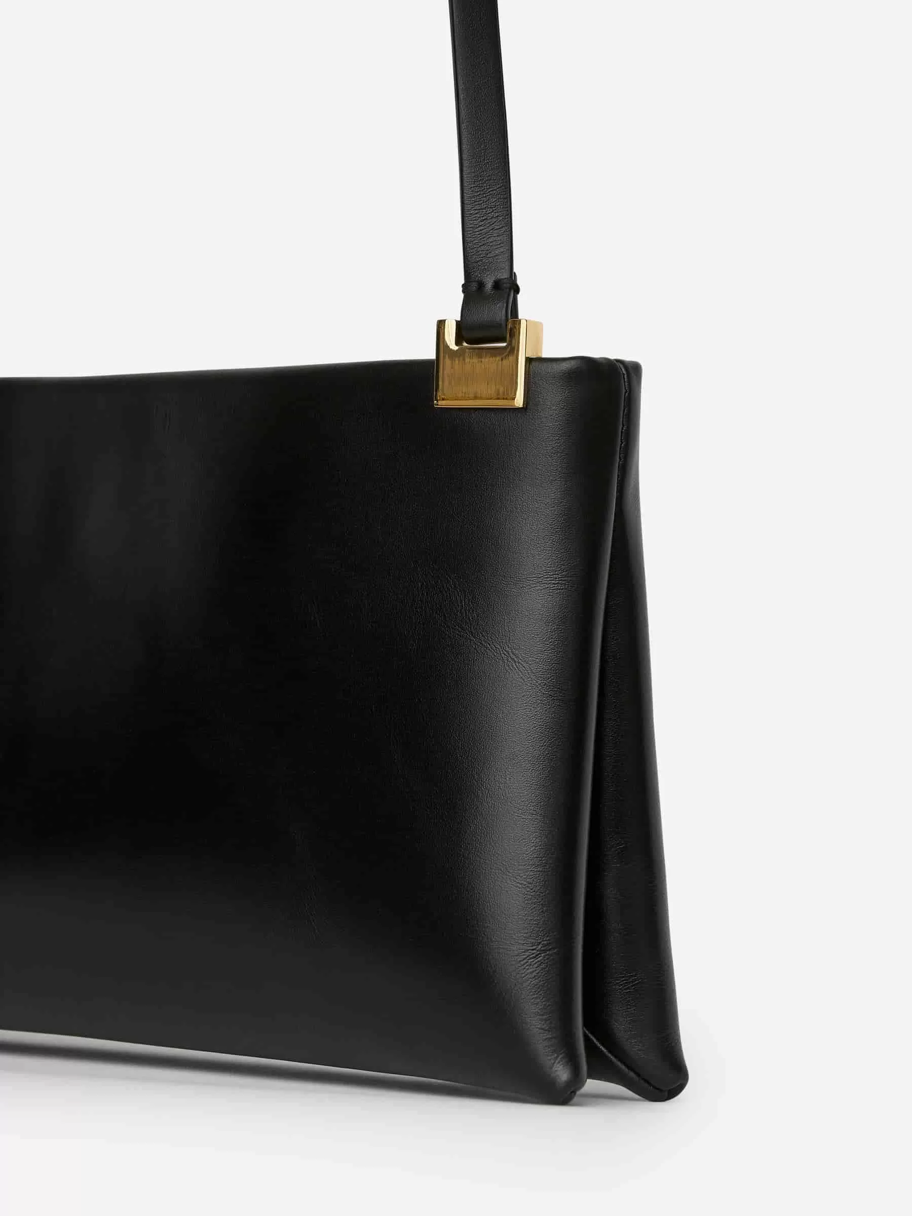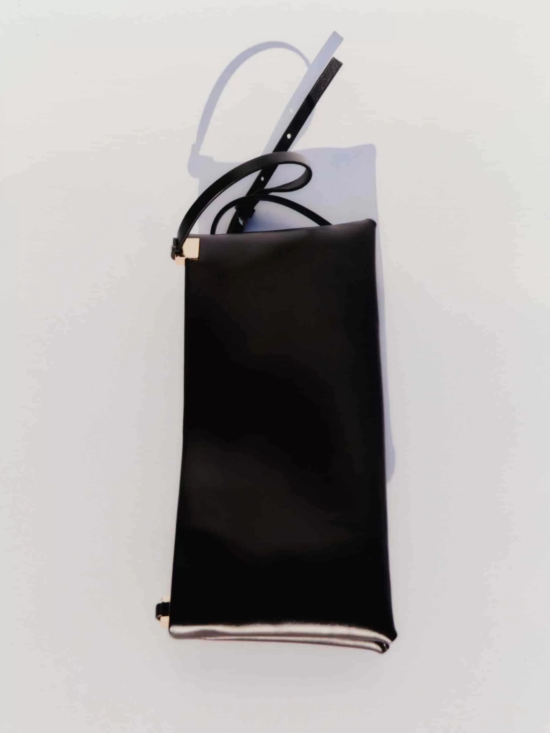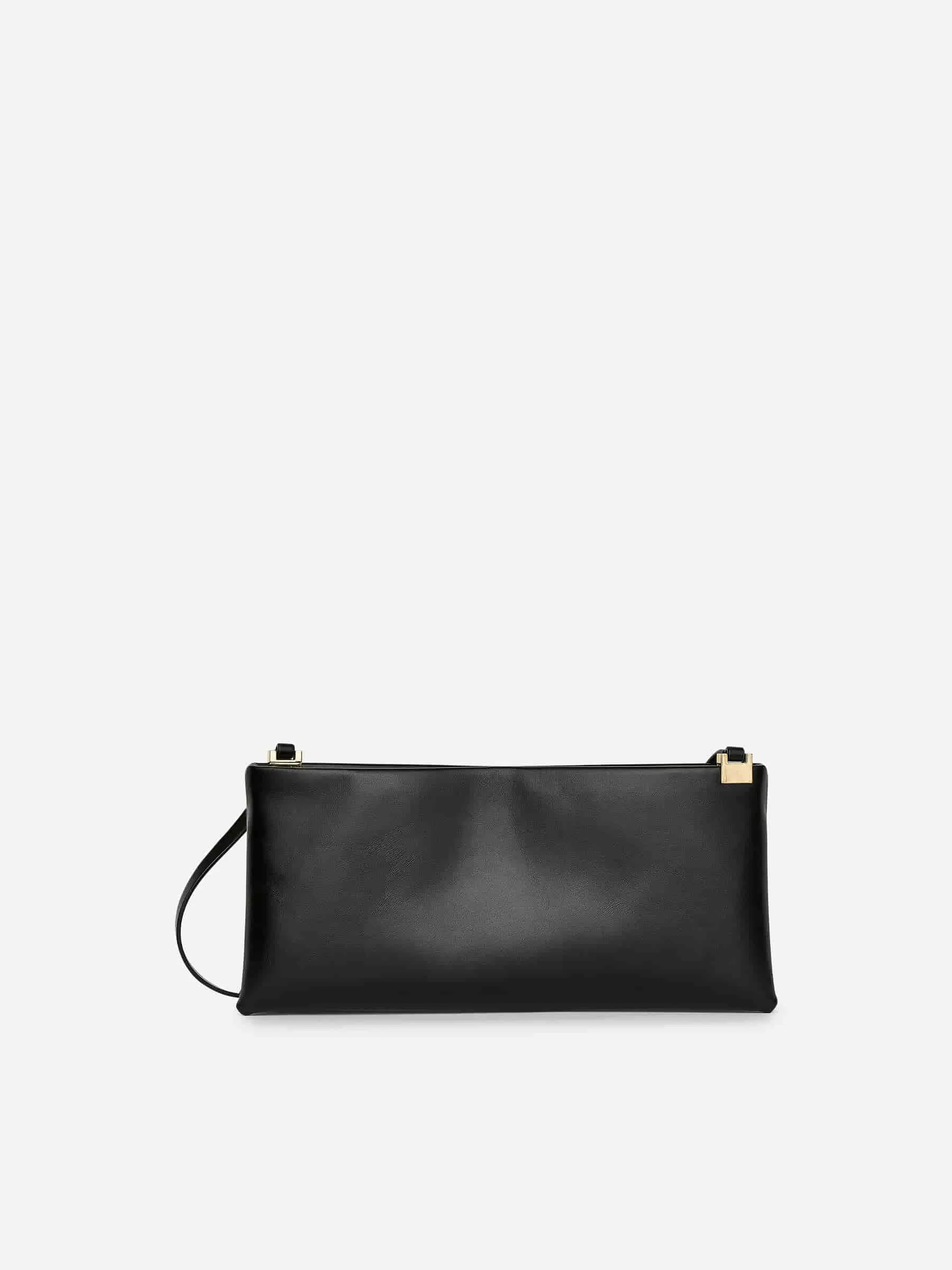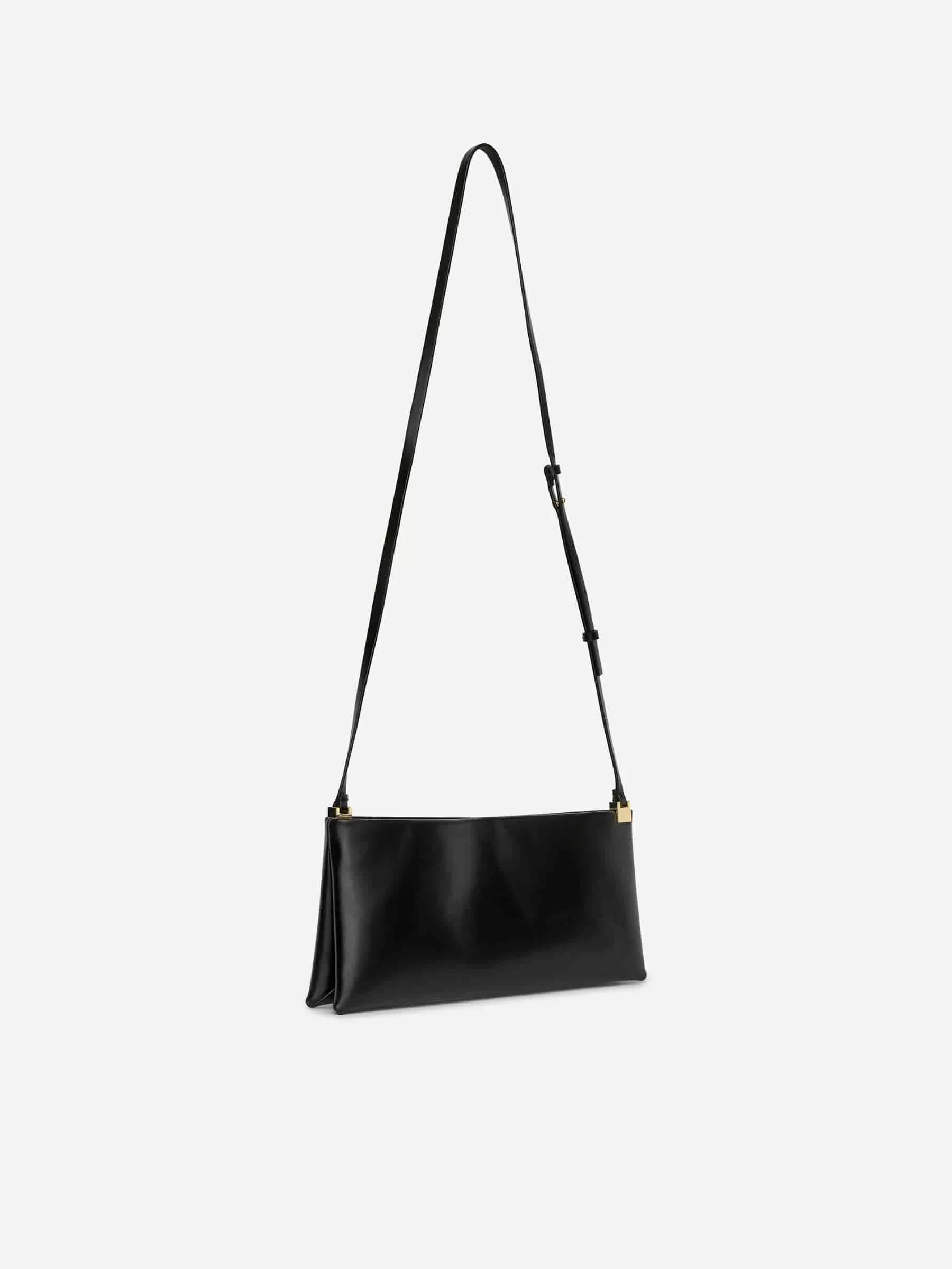 Abendtasche aus chromfreiem Leder. Ausgestattet mit dekorativen goldfarbenen Verzierungen am Ende des verstellbaren Riemens. Innentasche. Maße: 33 x 15 x 6 cm.