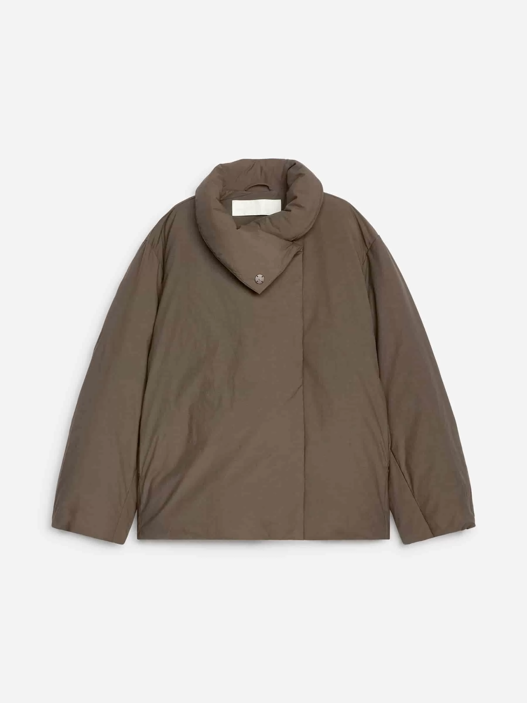 ARKE Damen Upcycled Daunenjacke mit hohem Kragen Dunkler Maulwurf