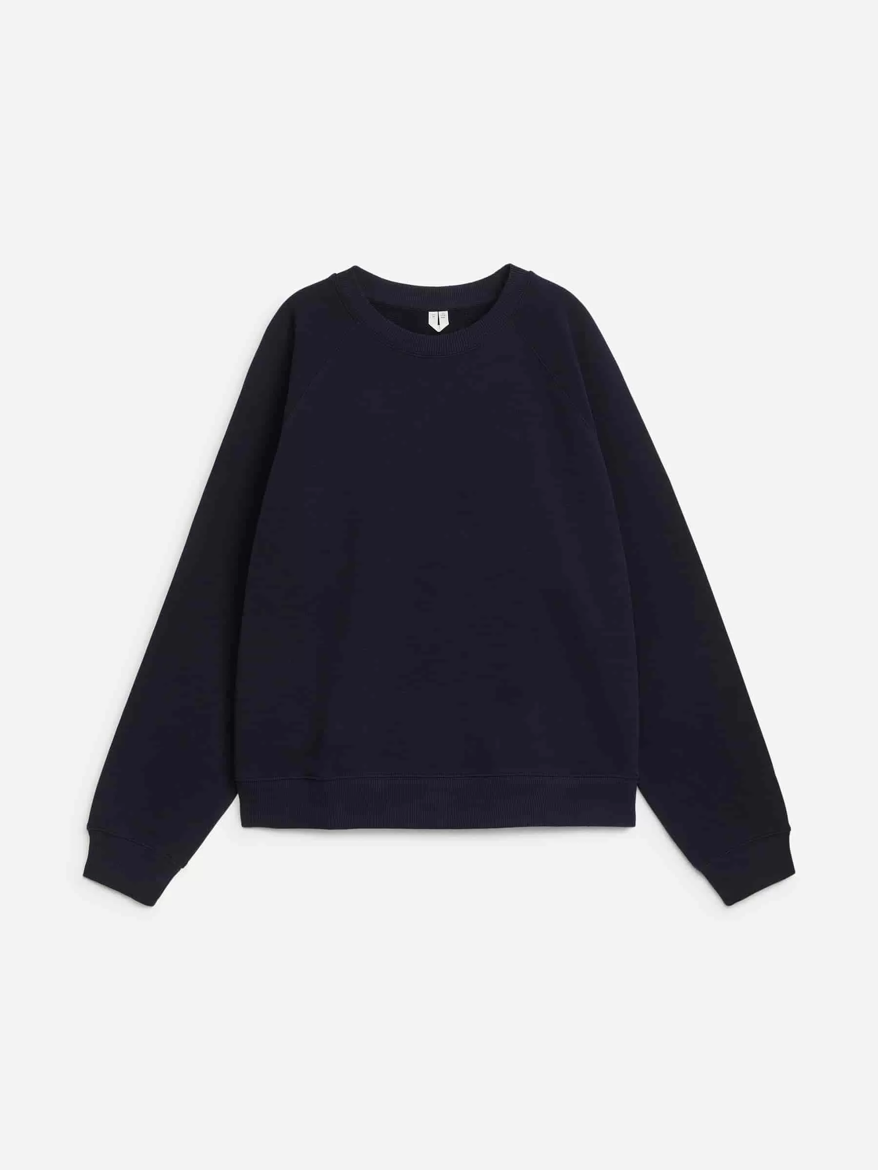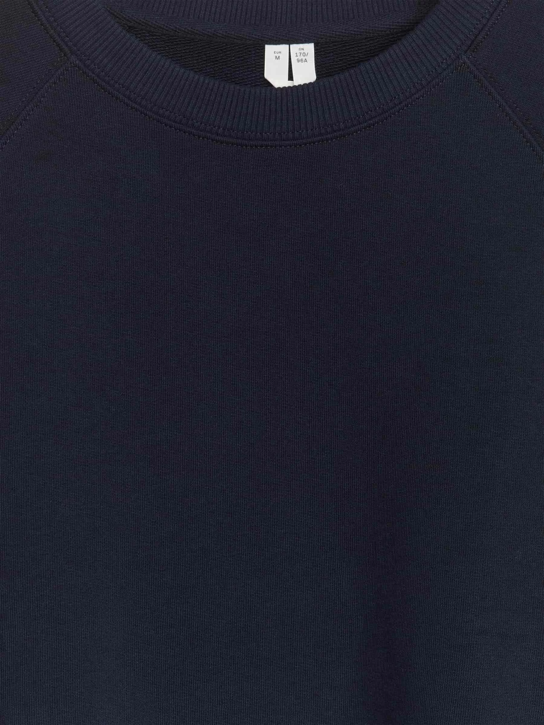 Leicht verkürztes Sweatshirt mit Raglanärmeln. Hergestellt aus Baumwolle mit einer French-Terry-Unterseite für feuchtigkeitsableitende Eigenschaften. Gerippte Abschlüsse.