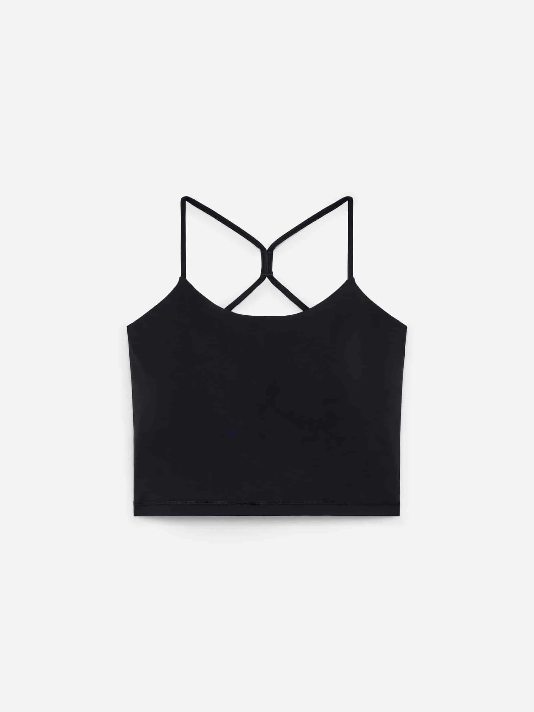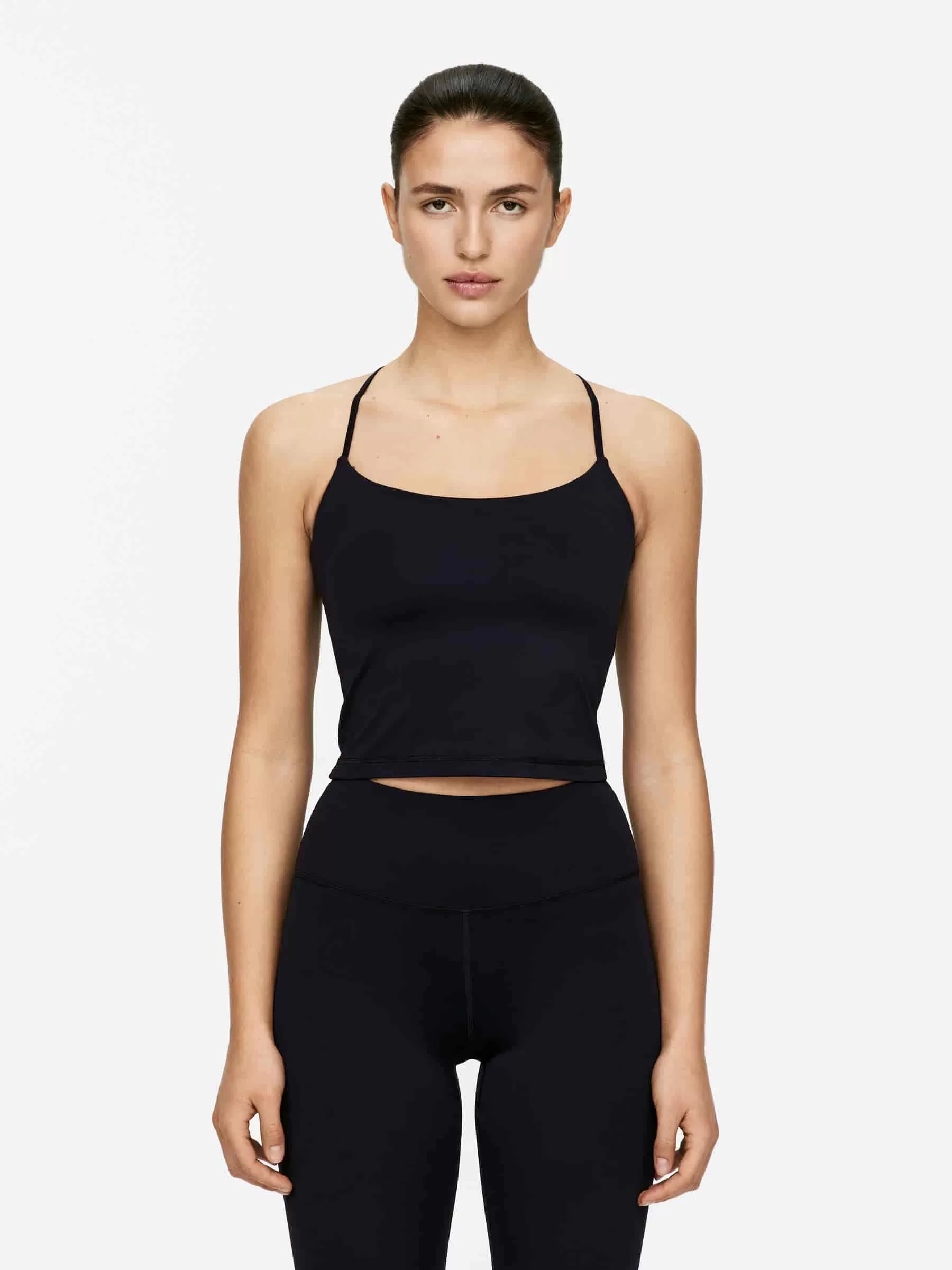 Sportoberteil aus weichem und dehnbarem, atmungsaktivem Jerseystoff. Ein verkürzter Stil mit dünnen elastischen Trägern und herausnehmbaren Polstern. Leichte Unterstützung.