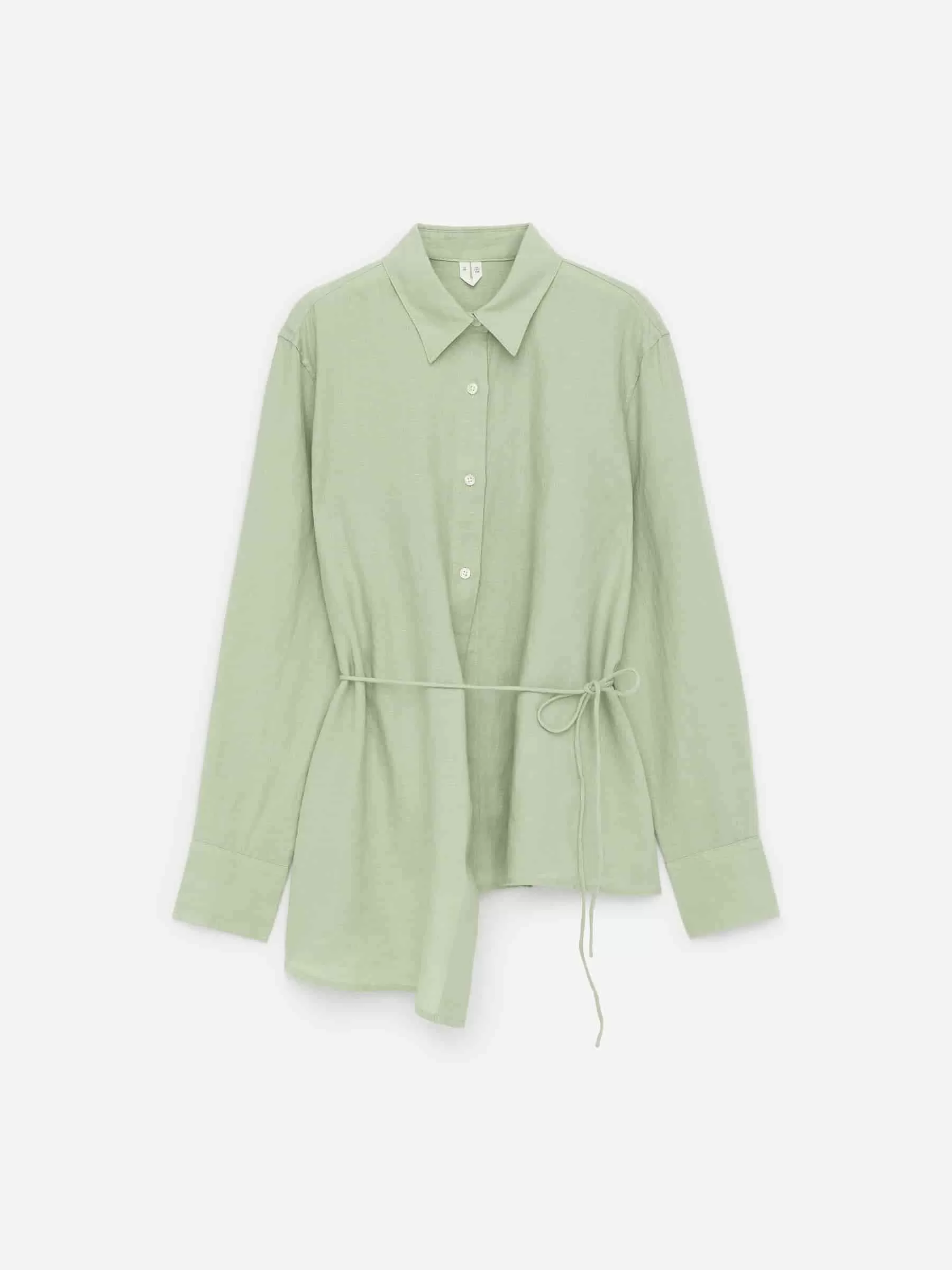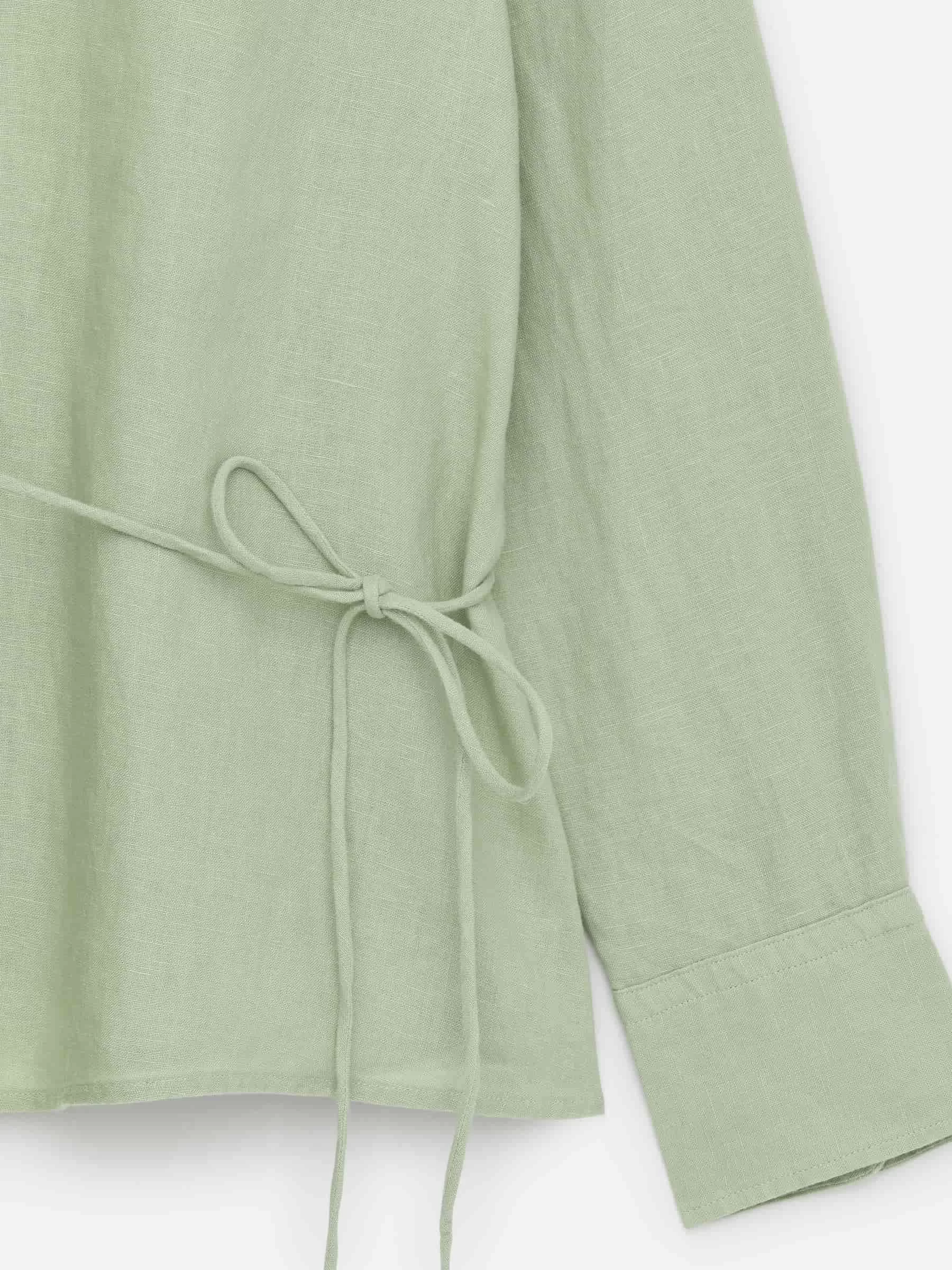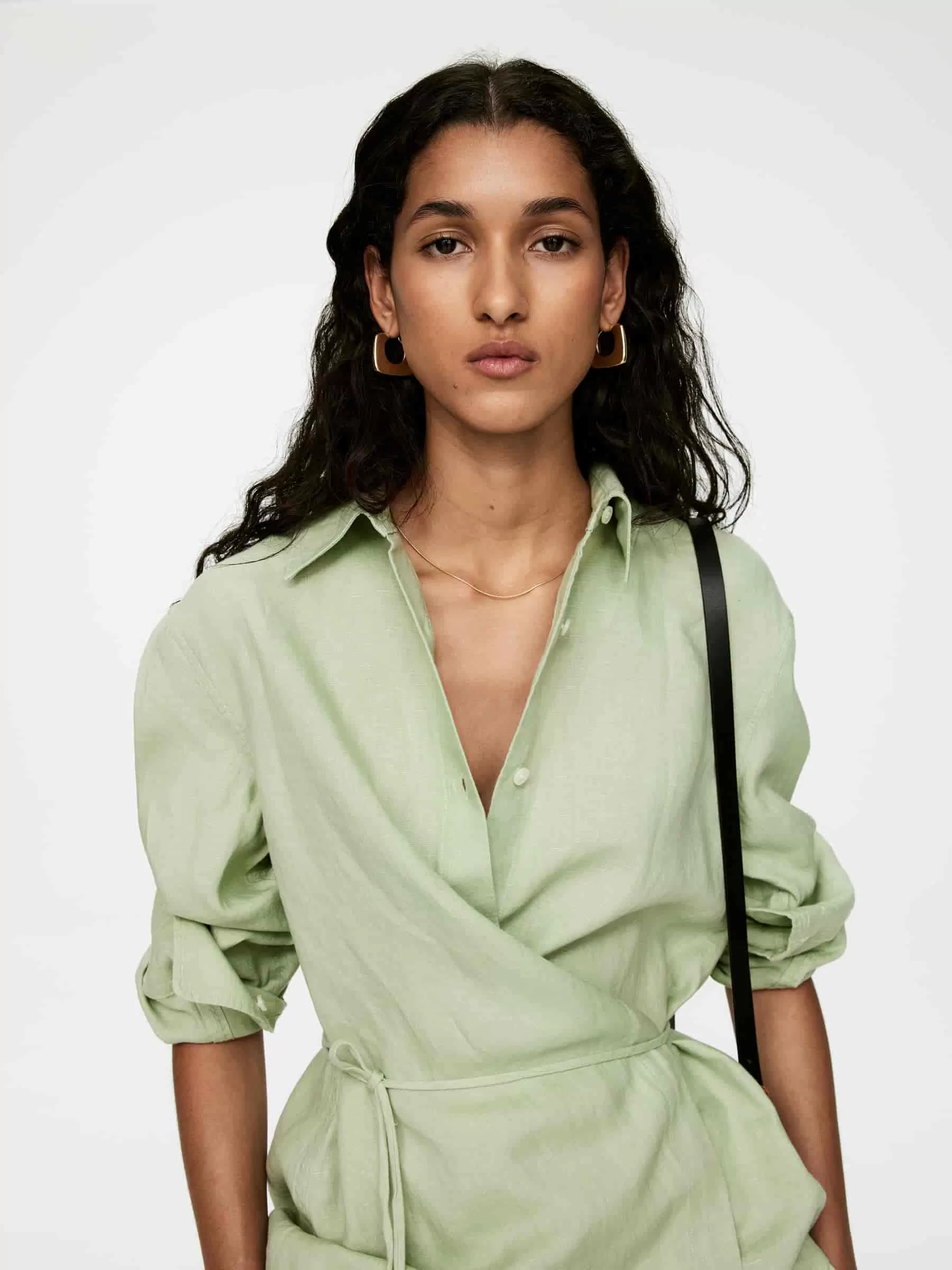 Wickelhemd aus Leinen. Mit Knopfverschluss und Bindegürtel an der Taille. Schlanke Passform.