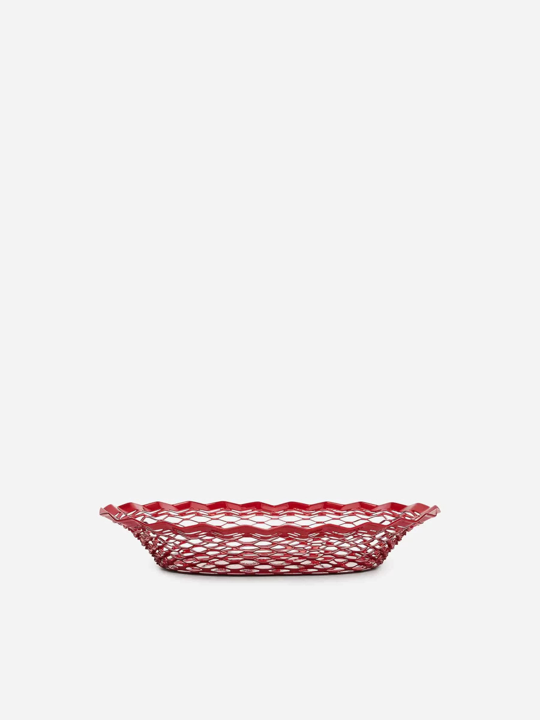 Feine Netzschale aus Edelstahl. Abmessungen 25 cm x 18 cm x 3 cm. Von Chevalier Diffusion.