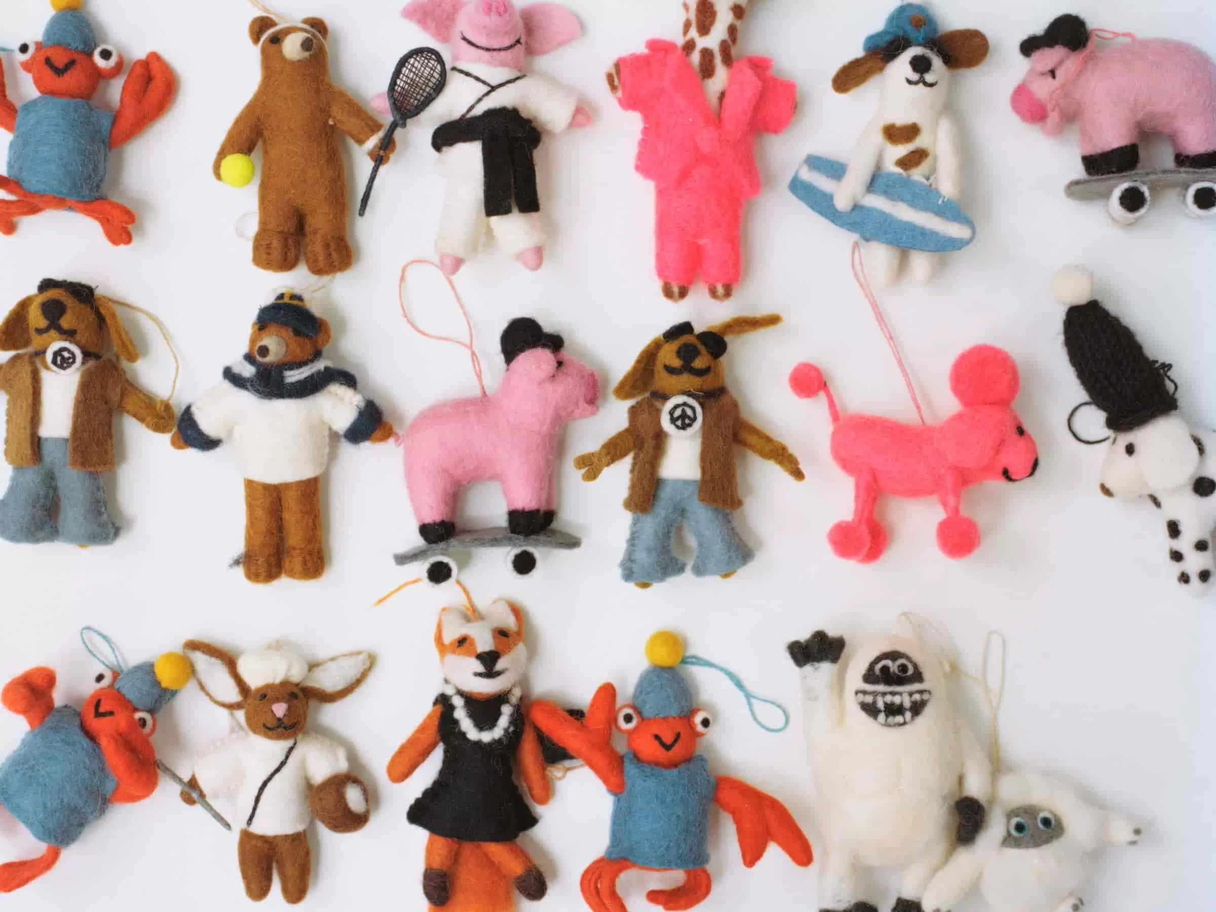 Hund aus gefilzter Wolle. Entworfen von der britischen Marke Felt So Good und handgefertigt in nepalesischen Handwerksbetrieben. Band zum einfachen Aufhängen. Höhe 10,5 cm.