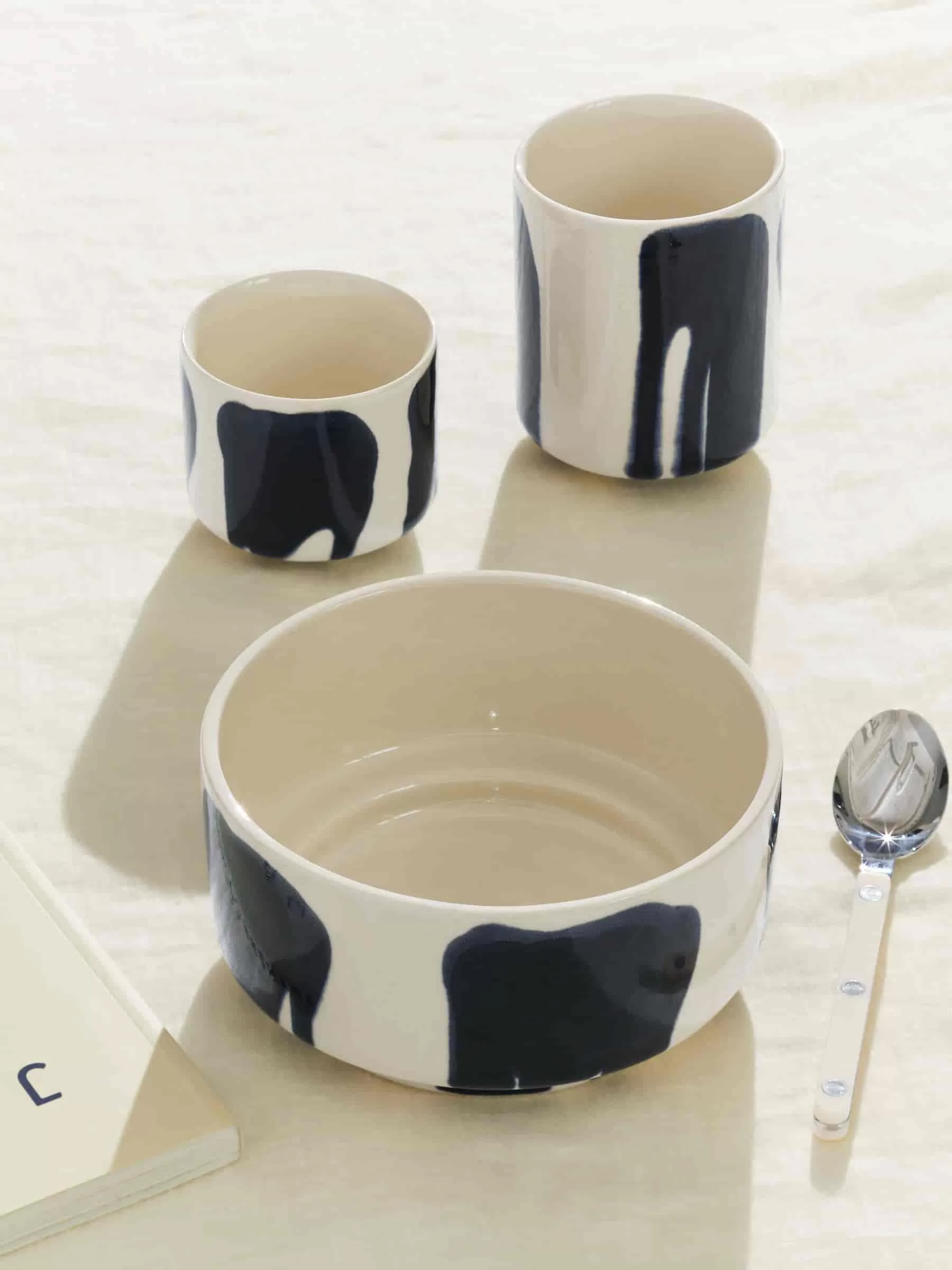 ARKE Haushaltswaren Steinzeugbecher im 2er-Set Gebrochenes Weiß/Blau