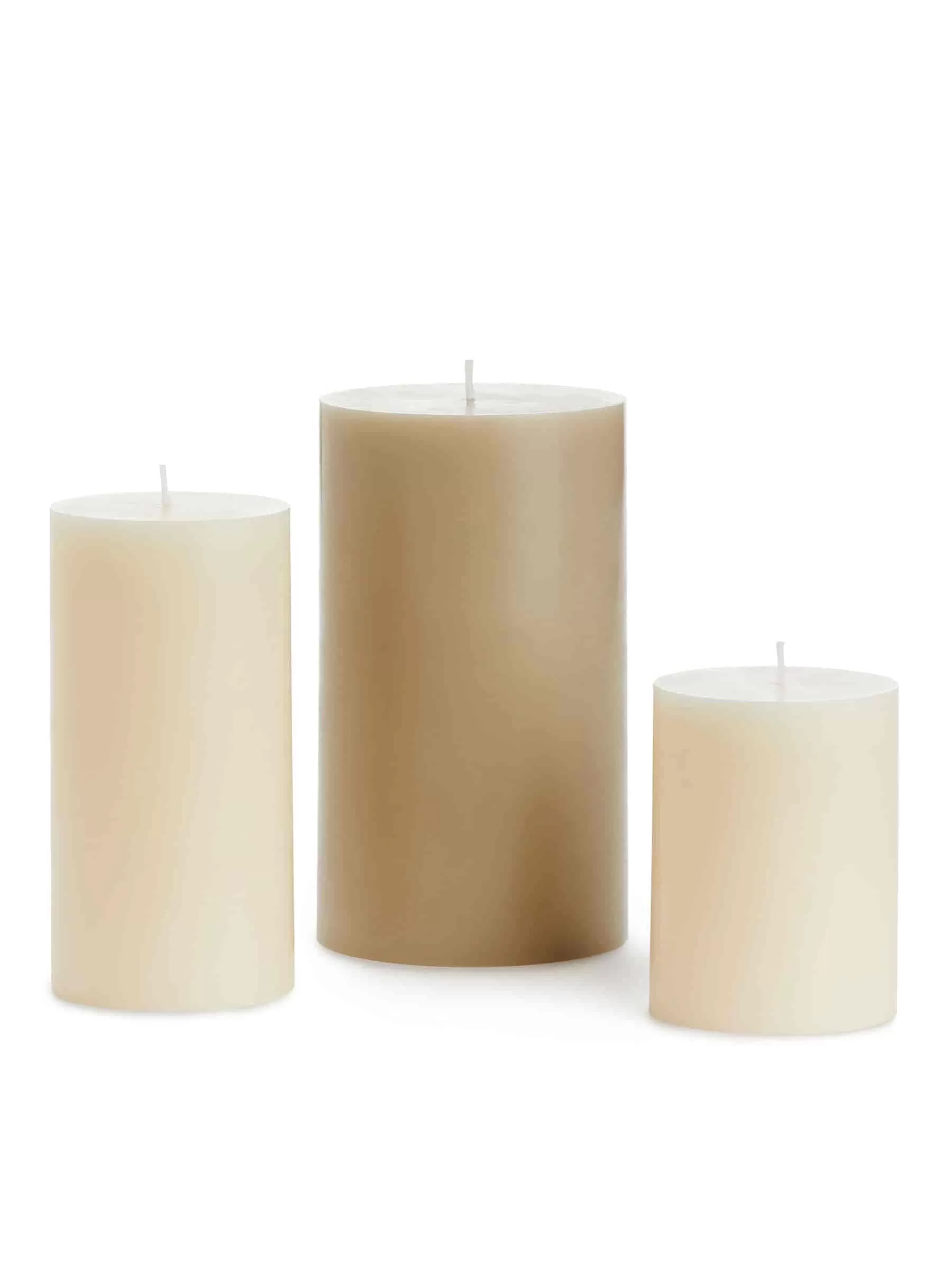 Stumpenkerze aus Wachs. Durchmesser 10 cm, Höhe 17,5 cm. Brenndauer 90 Stunden.