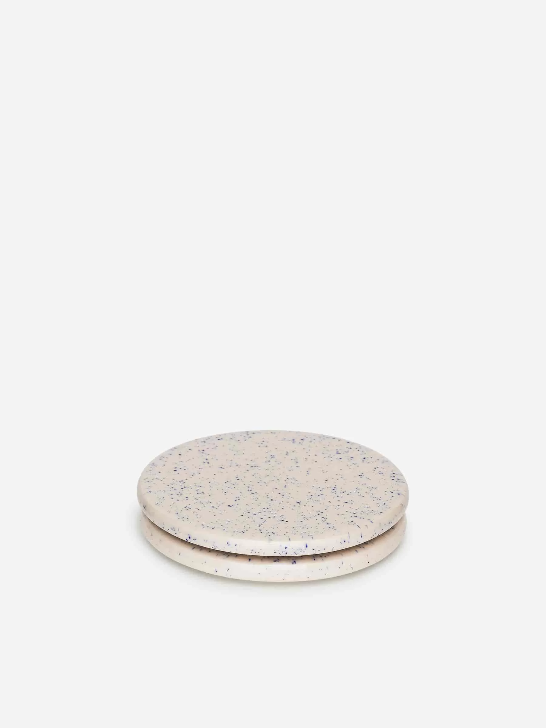 Untersetzer aus glasiertem Steingut. Verkauft im 2er-Set. Durchmesser 10 cm.