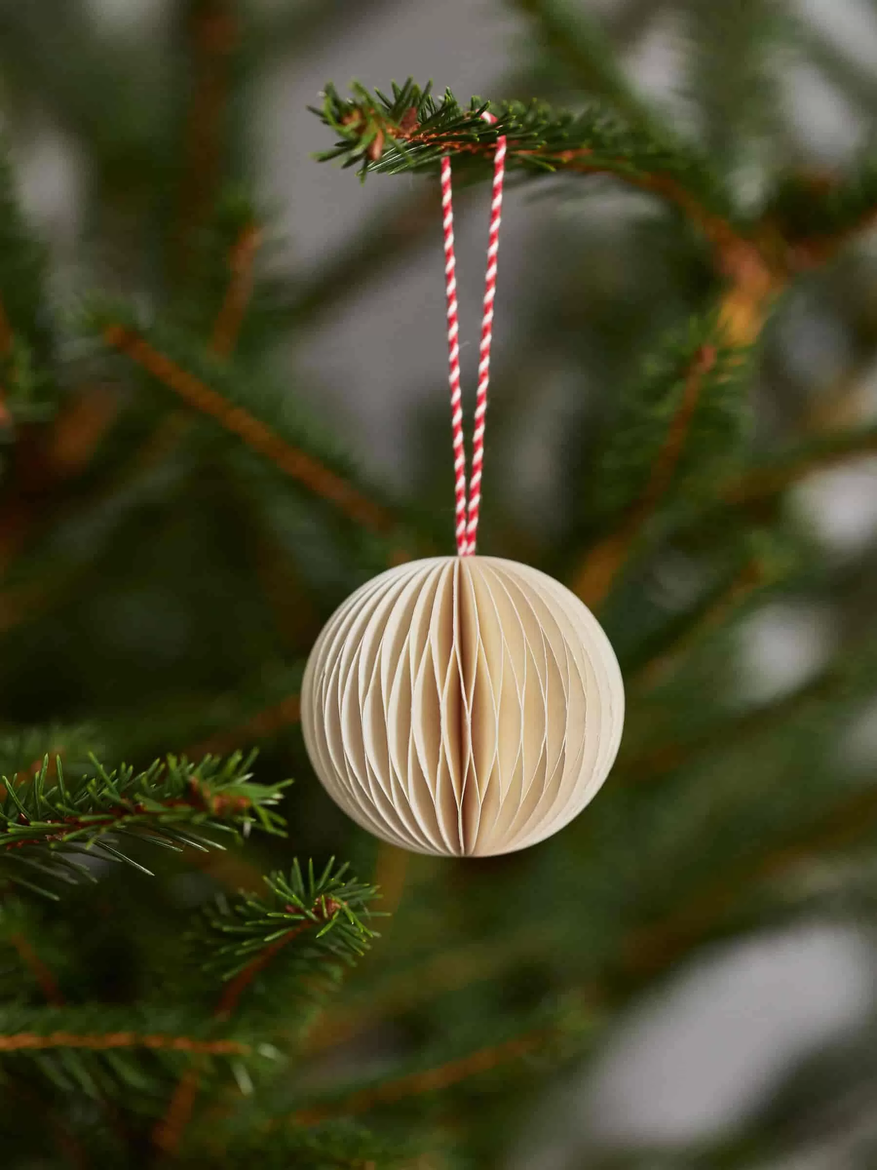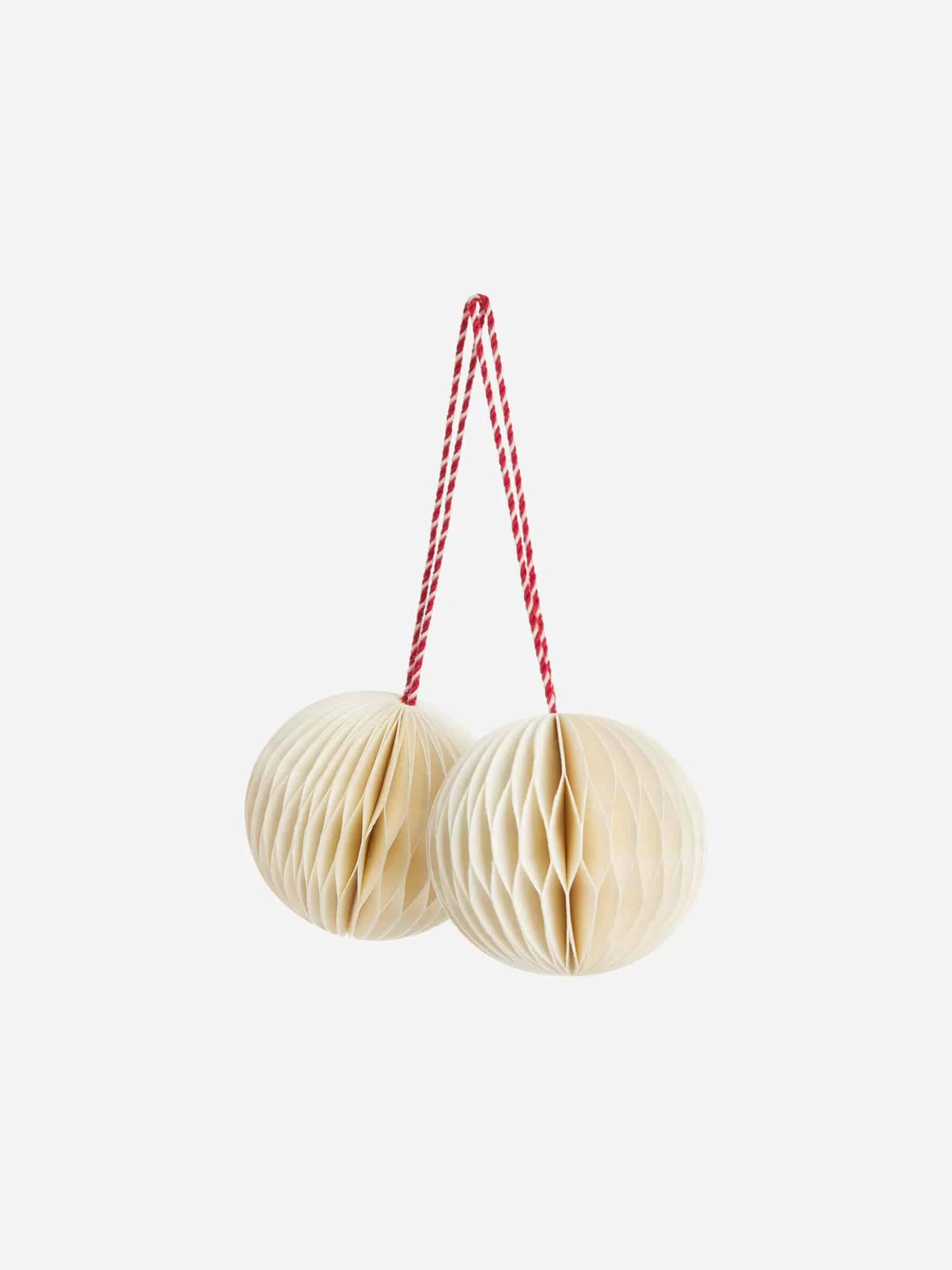 Wabenornamente, handgefertigt aus stabilem Papier. Eine Baumwollschnur zum einfachen Aufhängen. Zweier-Set. Durchmesser 5 cm.