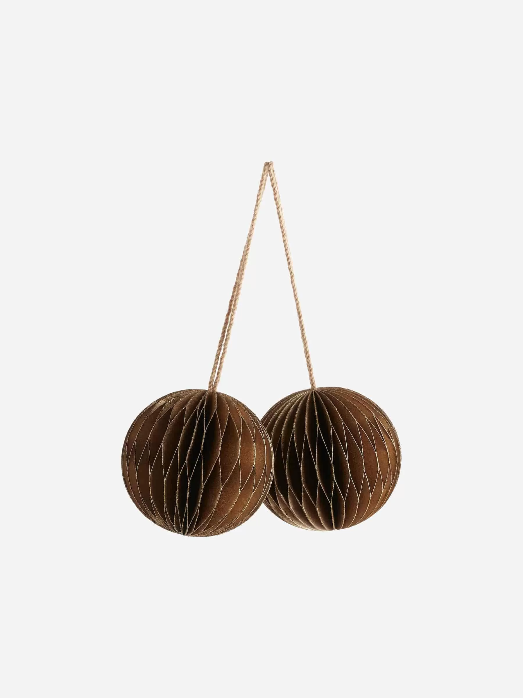 Wabenornamente, handgefertigt aus stabilem Papier. Eine Baumwollschnur zum einfachen Aufhängen. Zweier-Set. Durchmesser 5 cm.