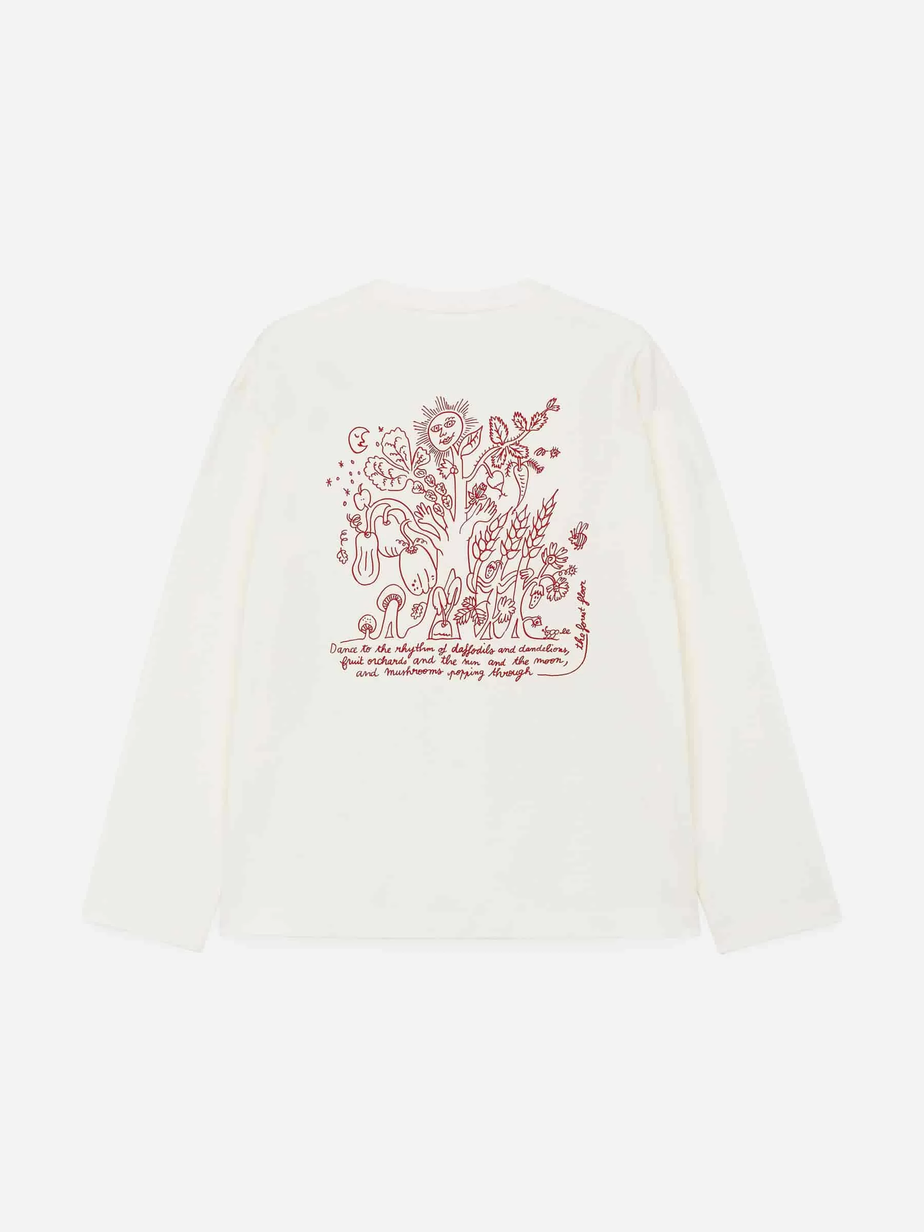 Unisex-T-Shirt mit aufgedrucktem Motiv auf Vorder- und Rückseite. Ein langärmliges Modell aus mittelschwerem 220 g/m² Baumwoll-Single-Jersey. Für eine großzügige Passform geschnitten. Dieses Produkt ist Teil der ARKET CAFÉ-Kollektion mit Illustrationen von Olga Prader.