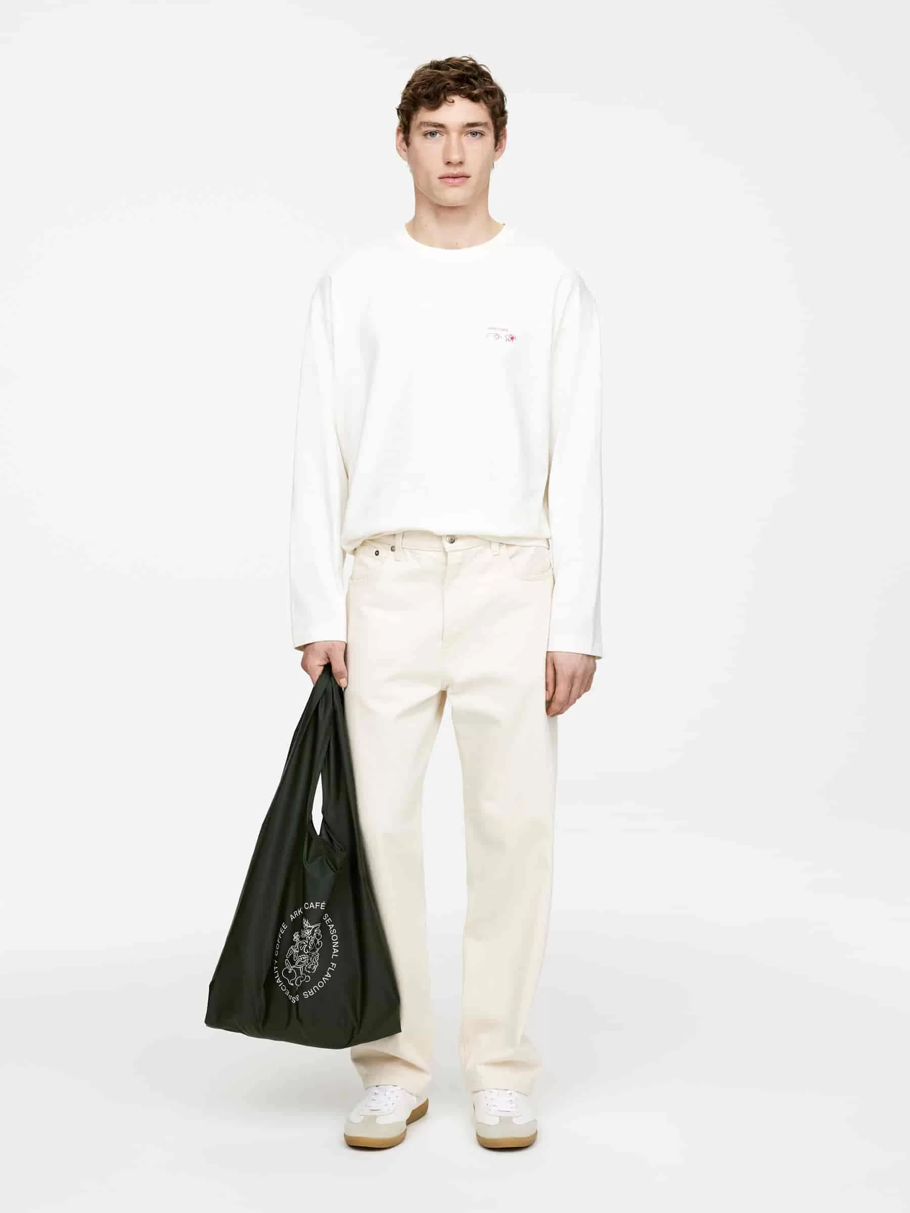 Leichter Shopper mit aufgedrucktem Motiv. Ein praktisches Mitbringteil, das zur einfachen Aufbewahrung in der eigenen Tasche verstaut werden kann. Abmessungen 70 cm x 34 cm. Dieses Produkt ist Teil der ARKET CAFÉ-Kollektion mit Illustrationen von Olga Prader.