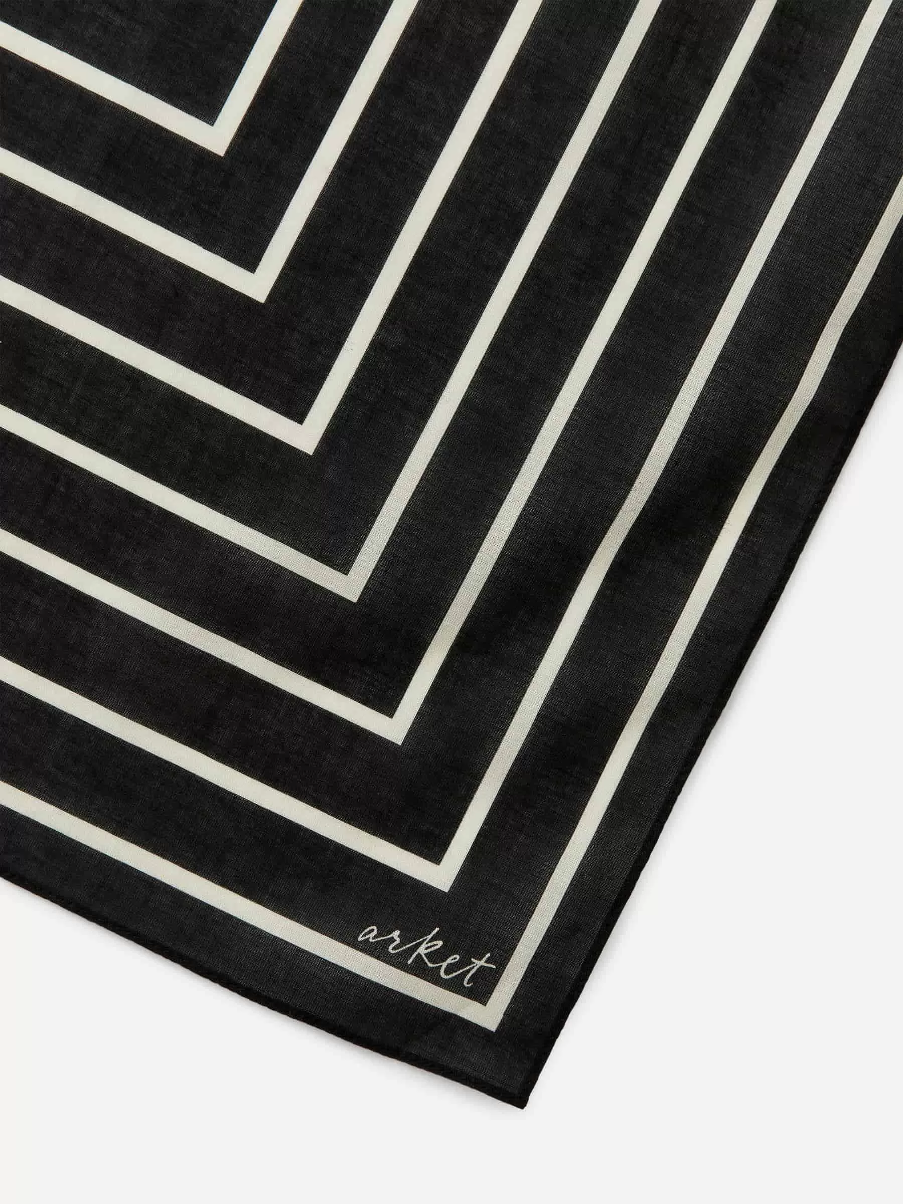 Gewebtes Baumwoll-Bandana mit grafischem Aufdruck. Maße 50 cm x 50 cm.