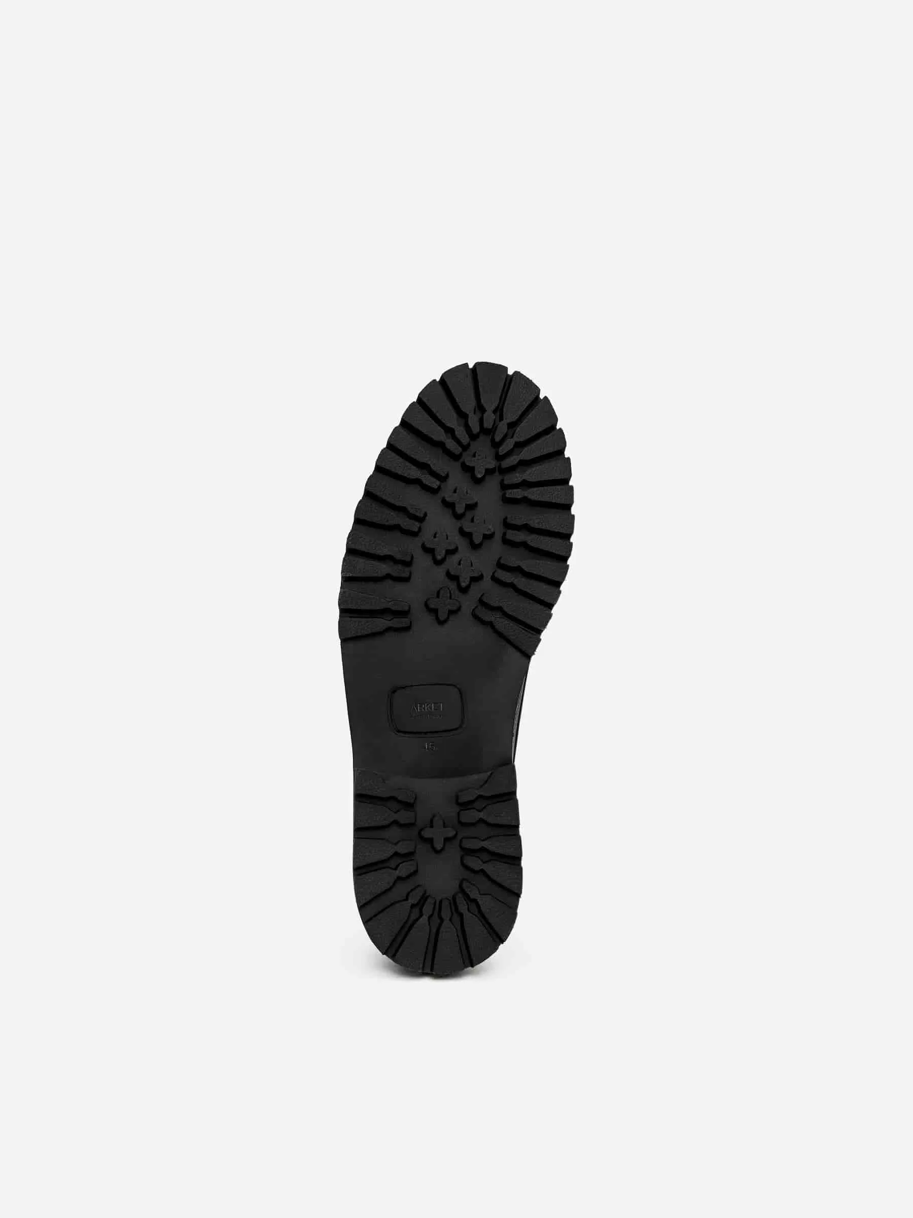 Klassische Bootsschuhe aus genarbtem Leder, das einem chromfreien Gerbungsprozess unterzogen wurde. Schnürsenkel aus gewachster Baumwolle. Gummisohle.
