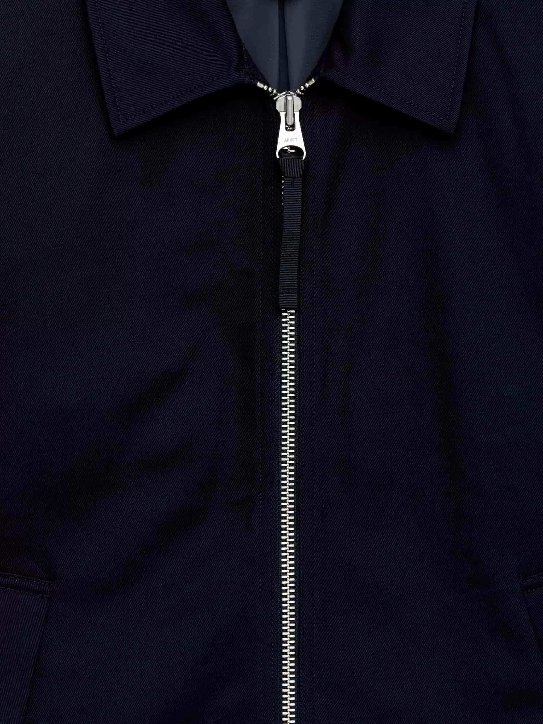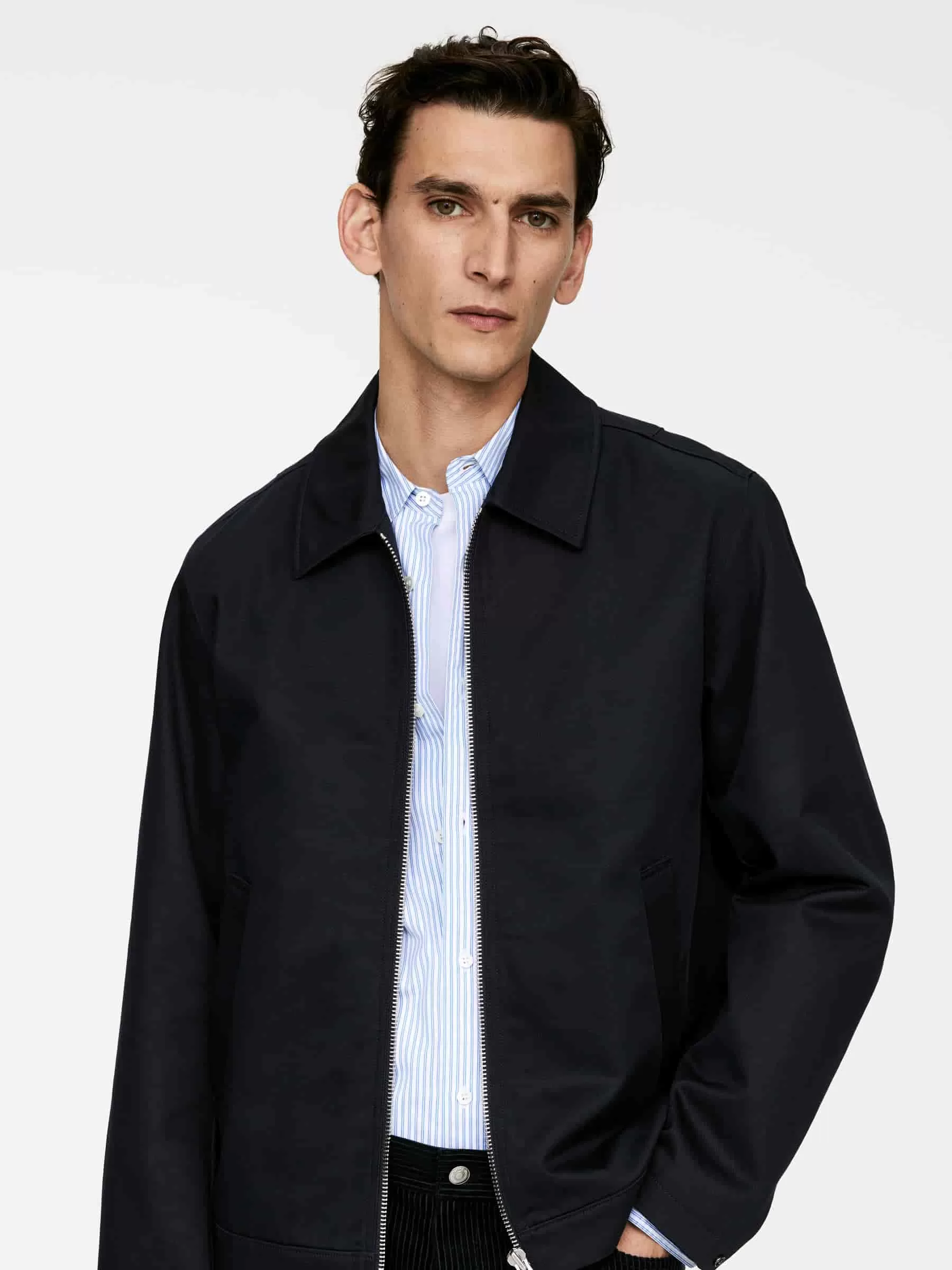 Leichte Baumwolljacke mit Reißverschluss vorne und gerader, leicht kastenförmiger Silhouette. Detailliert mit zwei Reißverschlusstaschen und zwei Innentaschen. Druckknöpfe an der Manschette ermöglichen die Weitenregulierung.
