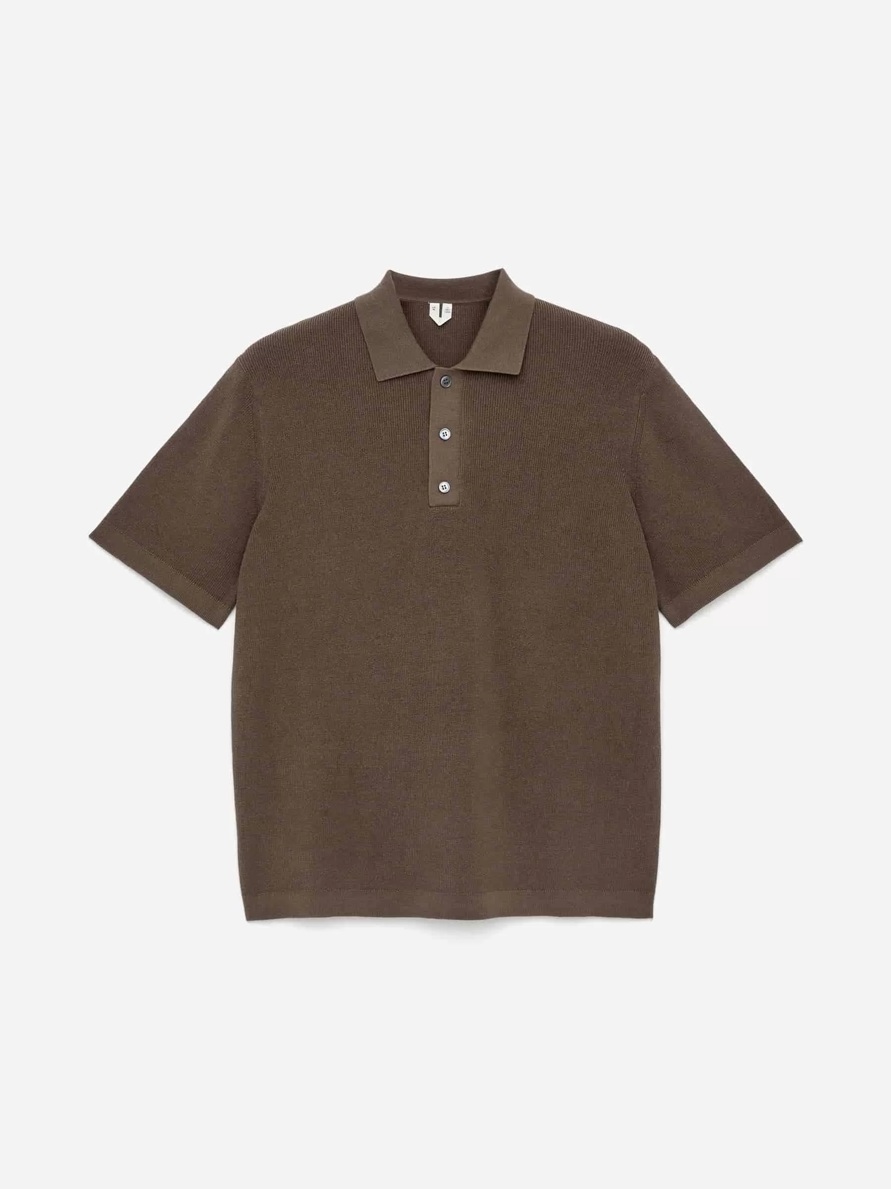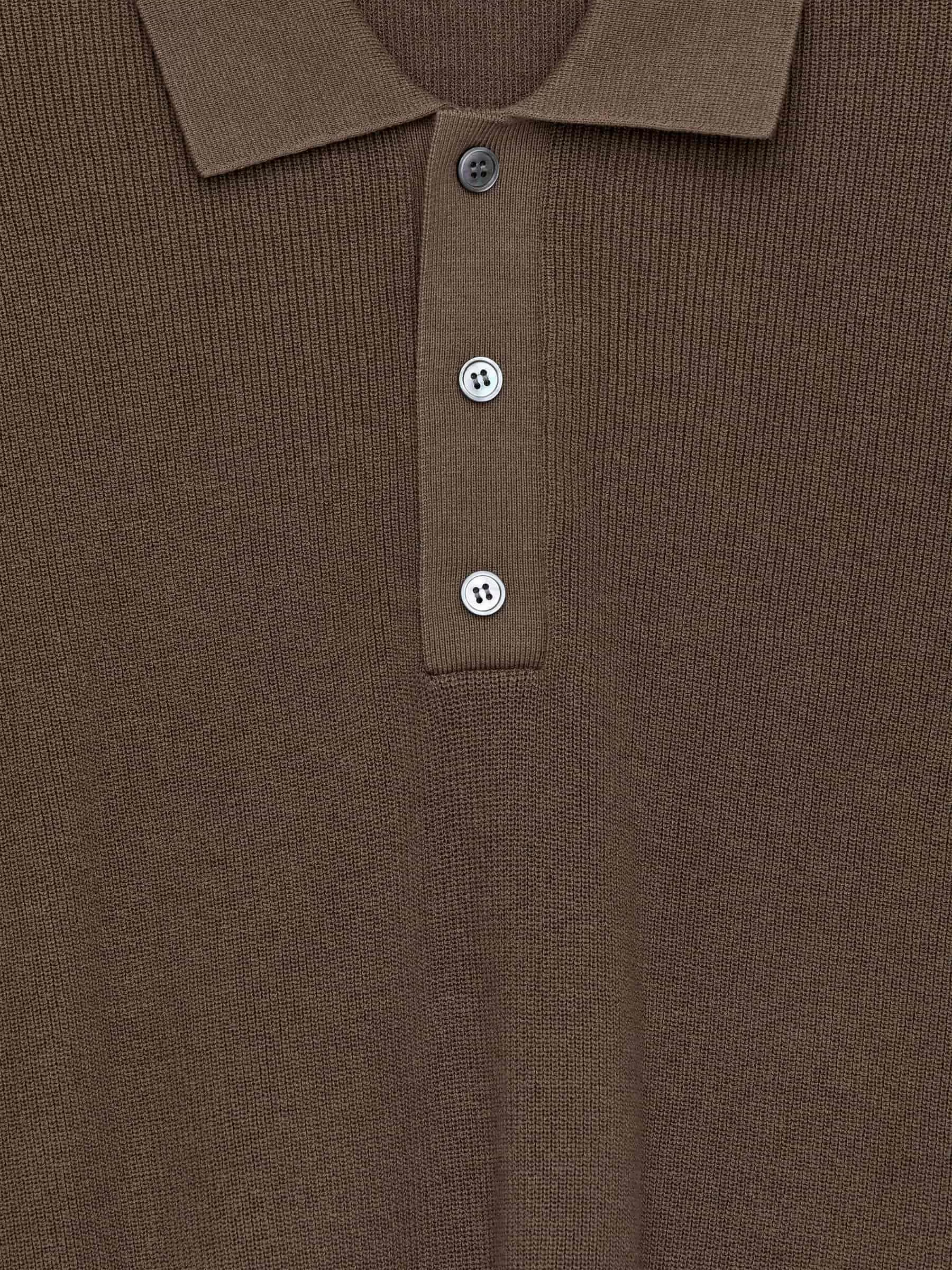 Feinstrick-Poloshirt aus einer Baumwollmischung. Ein kurzärmliges Modell für einen entspannten Look. Ausgestattet mit einem Kragen aus Voll-Milano-Rippstrick, einer halben Knopfleiste mit Knöpfen und Rippstrickdetails.