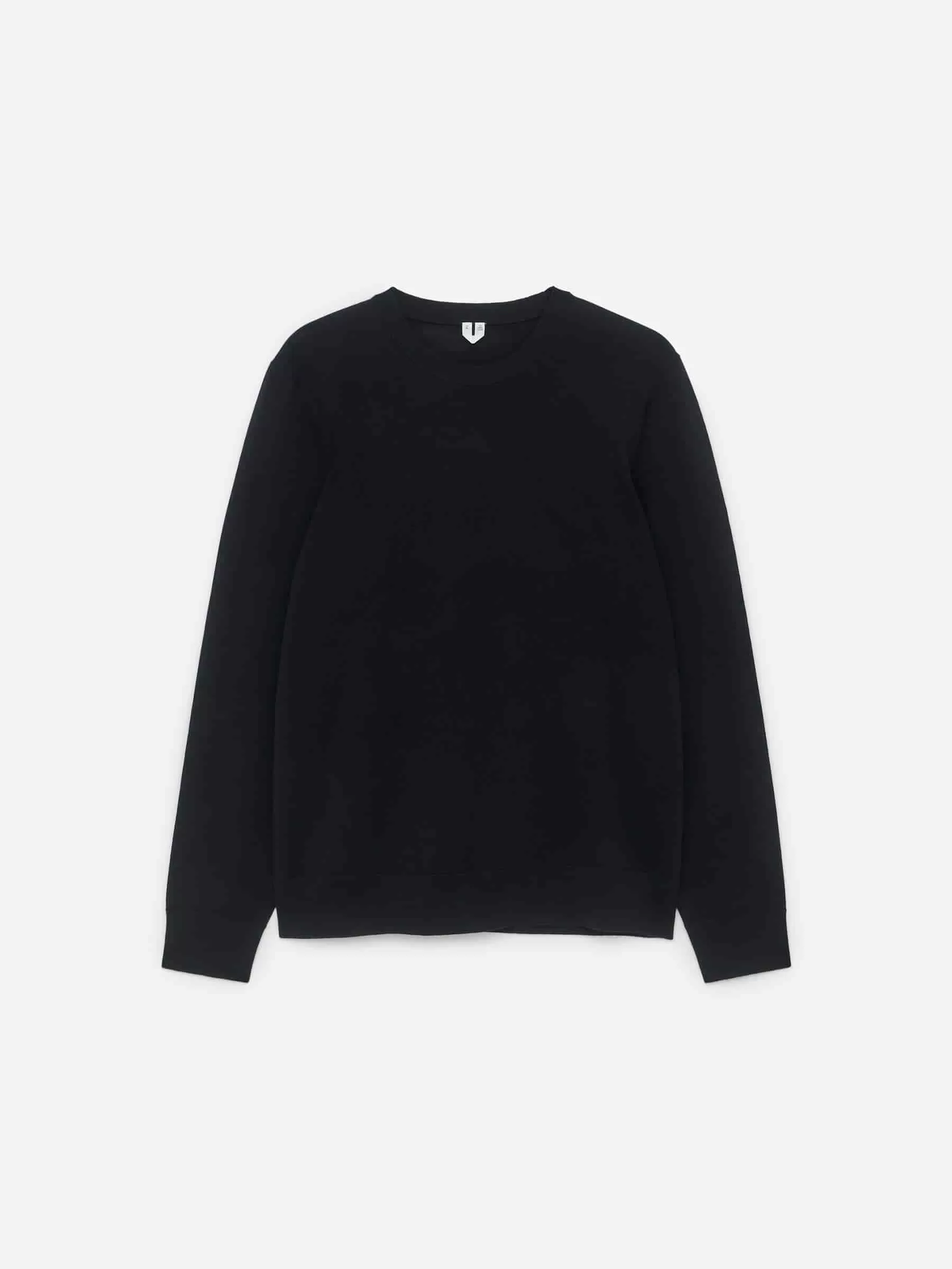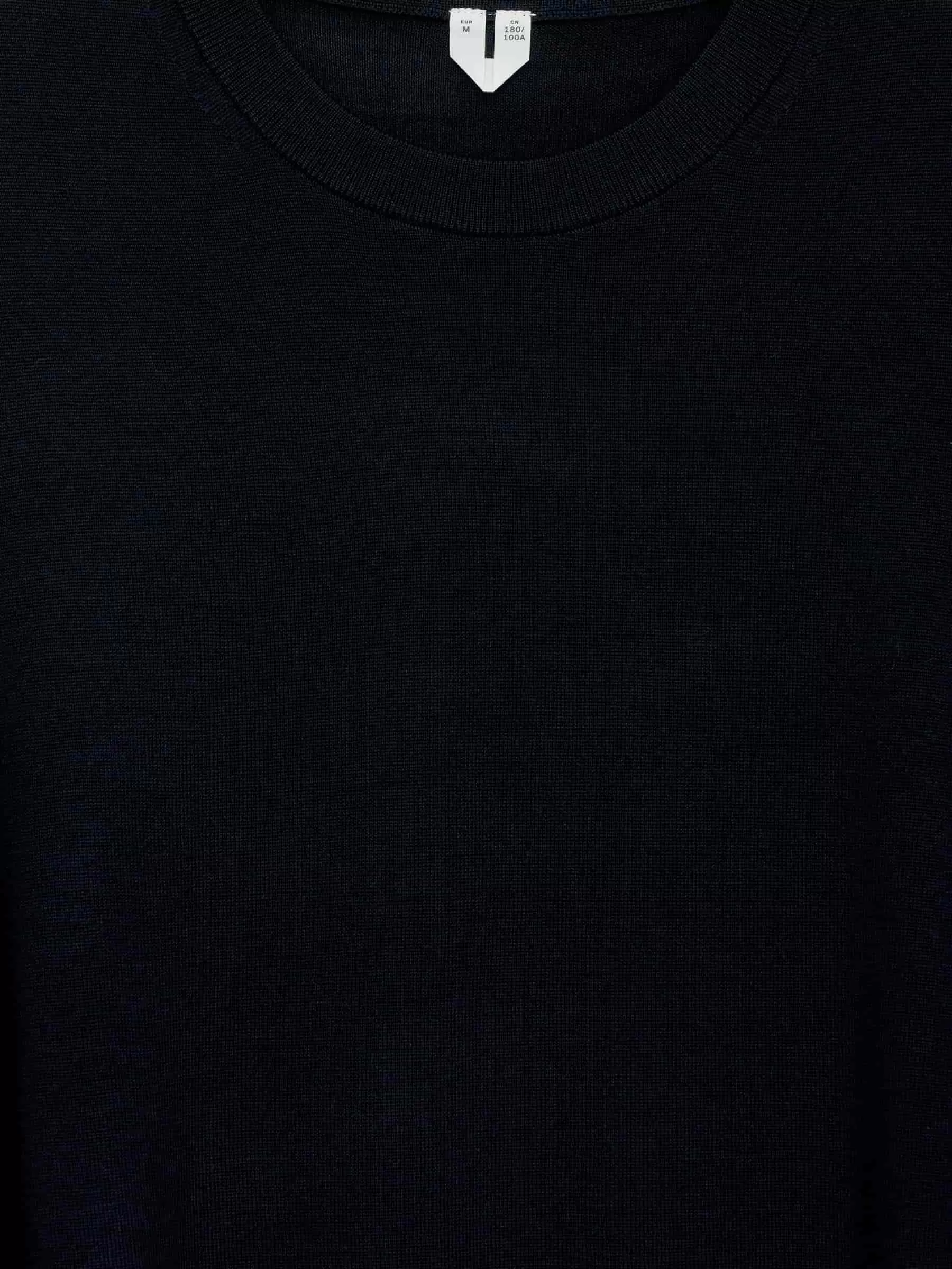 Feinstrickpullover aus weicher Merinowolle. Ein klassischer Rundhalsausschnitt mit gerippten Details. Normale Passform.