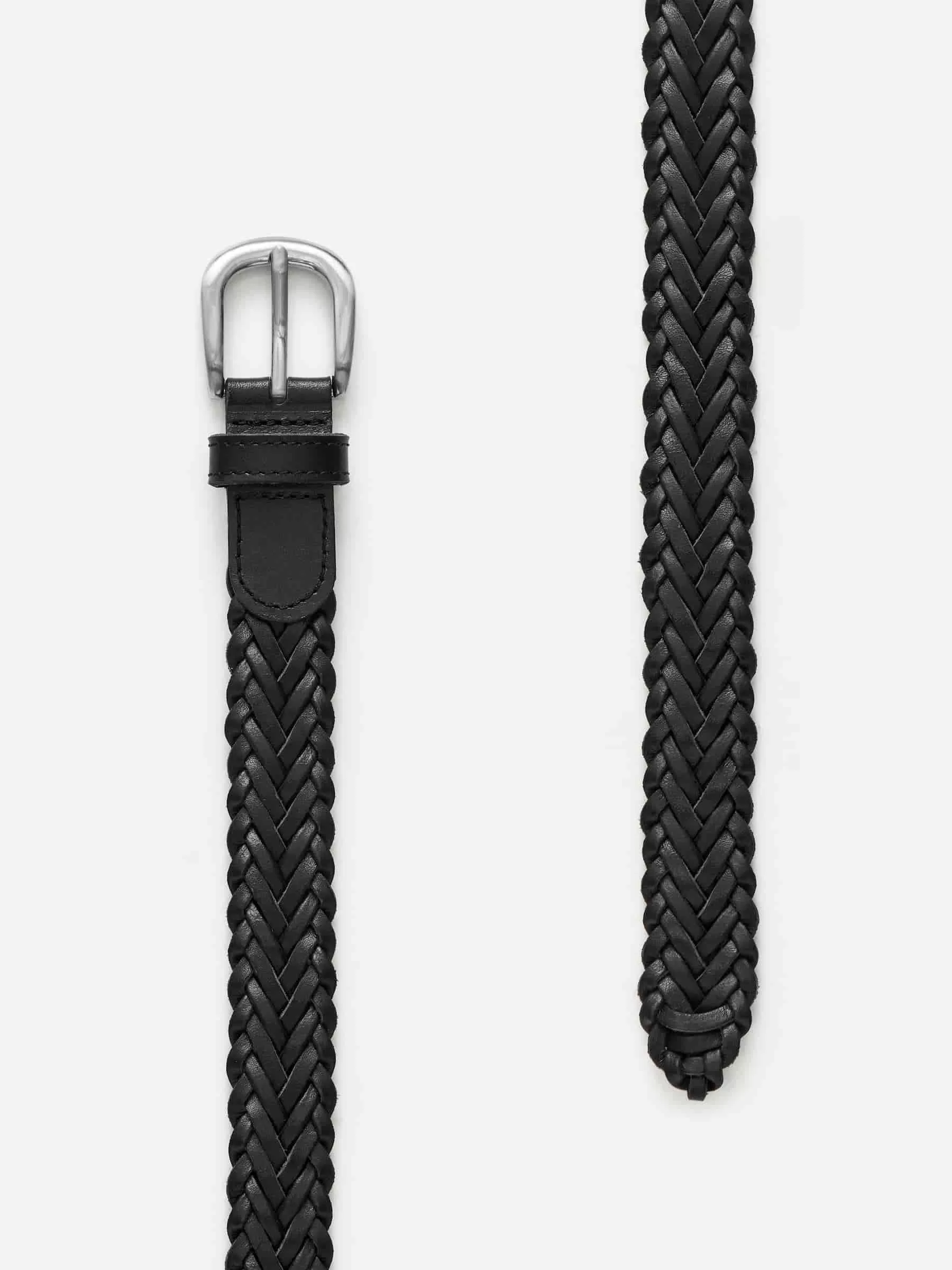 ARKE Herren Geflochtener Ledergürtel Schwarz