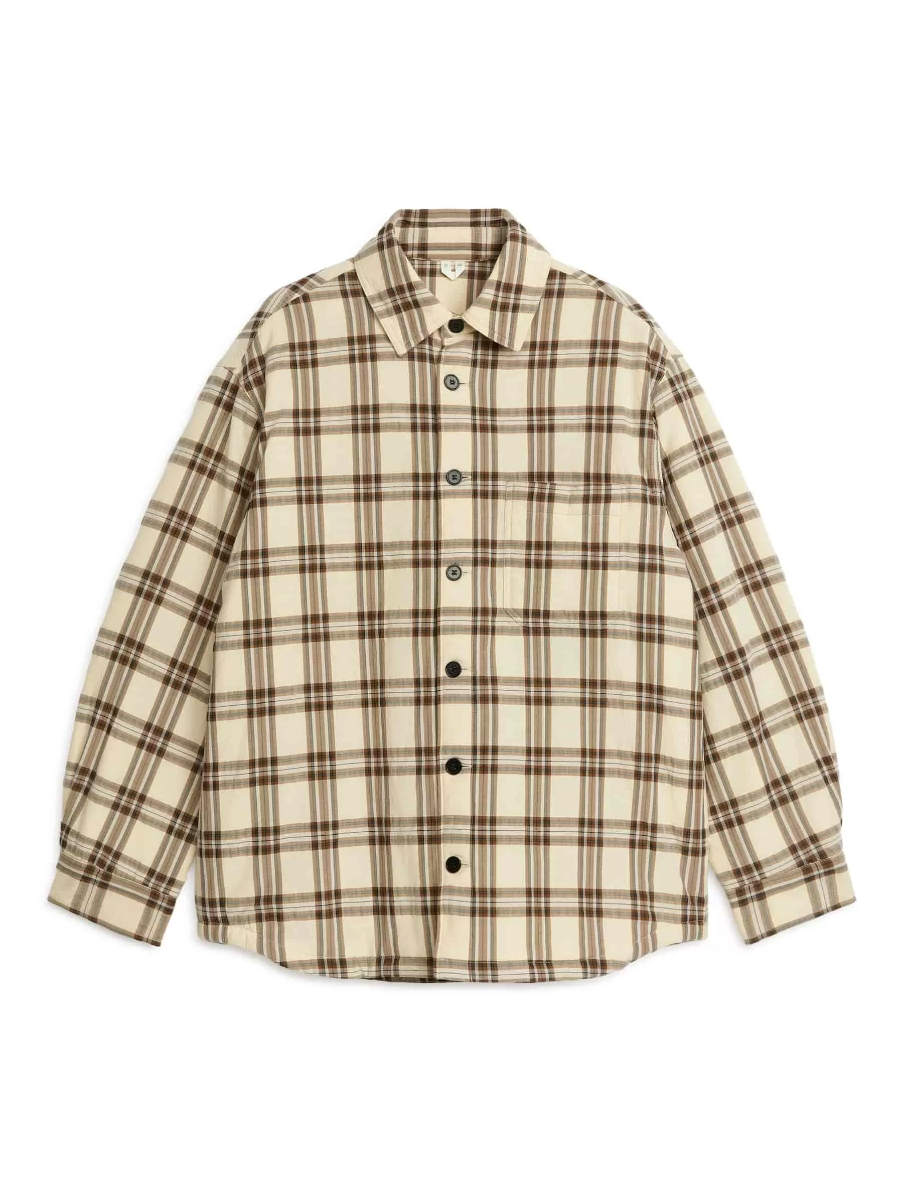 Entspanntes Overshirt mit gestepptem Futter und Wattierung. Ausgestattet mit einer einzelnen Brusttasche und Steinnussknöpfen.