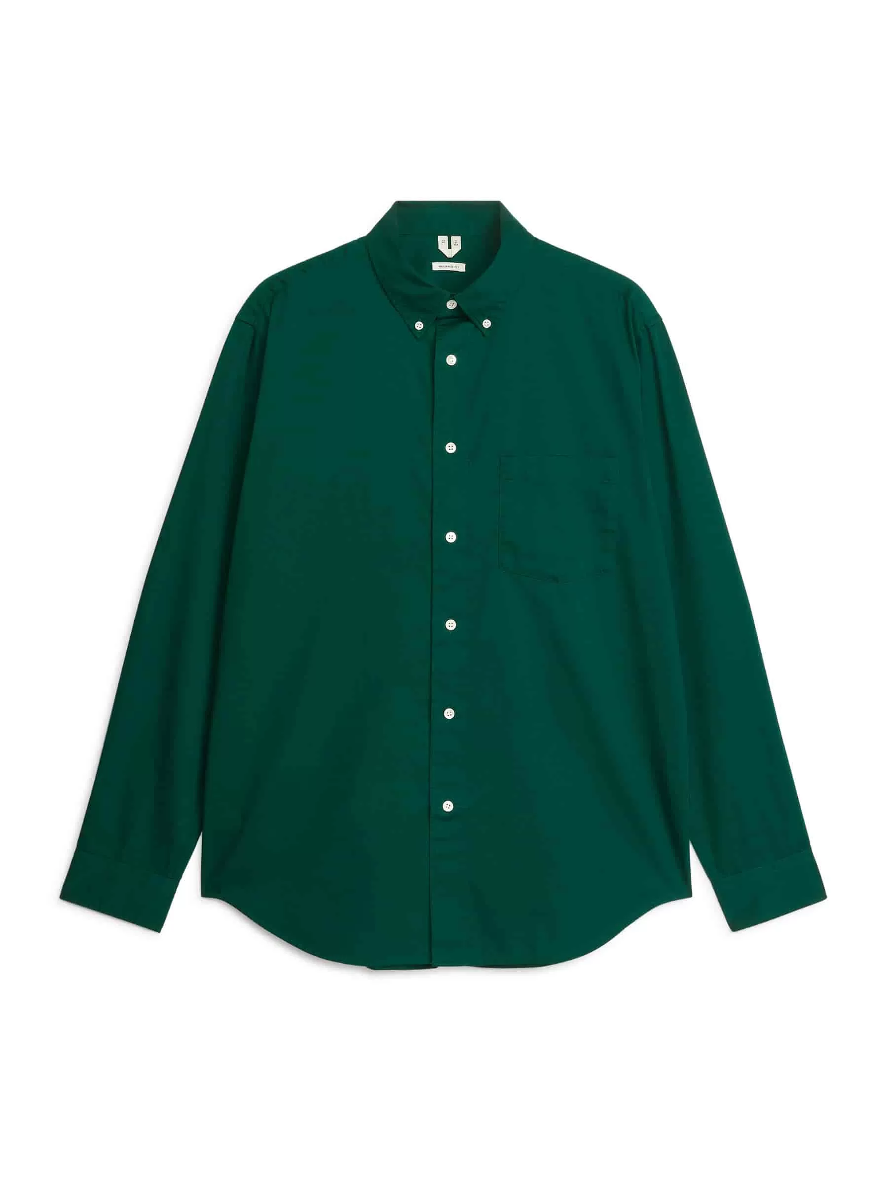 ARKE Herren Hemd aus Baumwolltwill Dunkelgrün