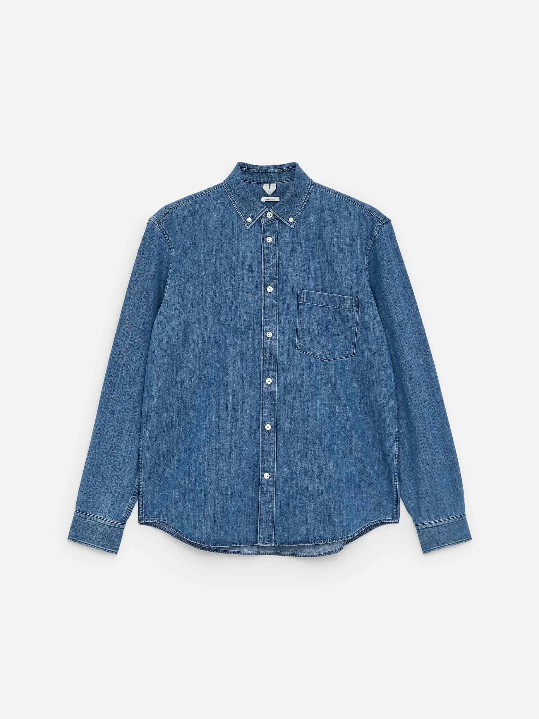Jeanshemd mit Knöpfen und normaler Passform. Mit Brusttasche und geknöpften Manschetten.