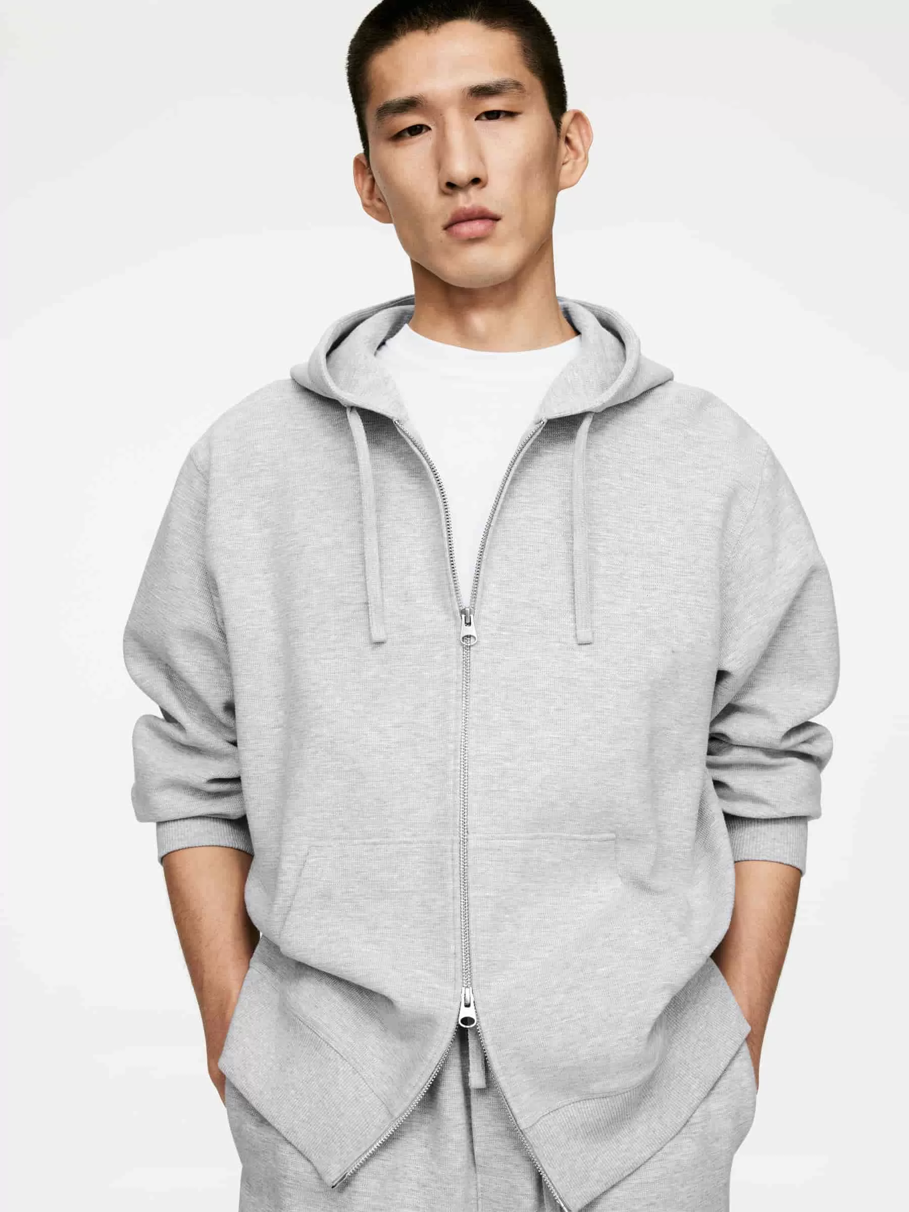 Kapuzen-Sweatshirt mit Reißverschluss aus Doubleface-Jersey. Ausgestattet mit einem Zwei-Wege-Reißverschluss vorne und großen Taschen. Kapuze mit Kordelzug. Passende Hosen erhältlich.