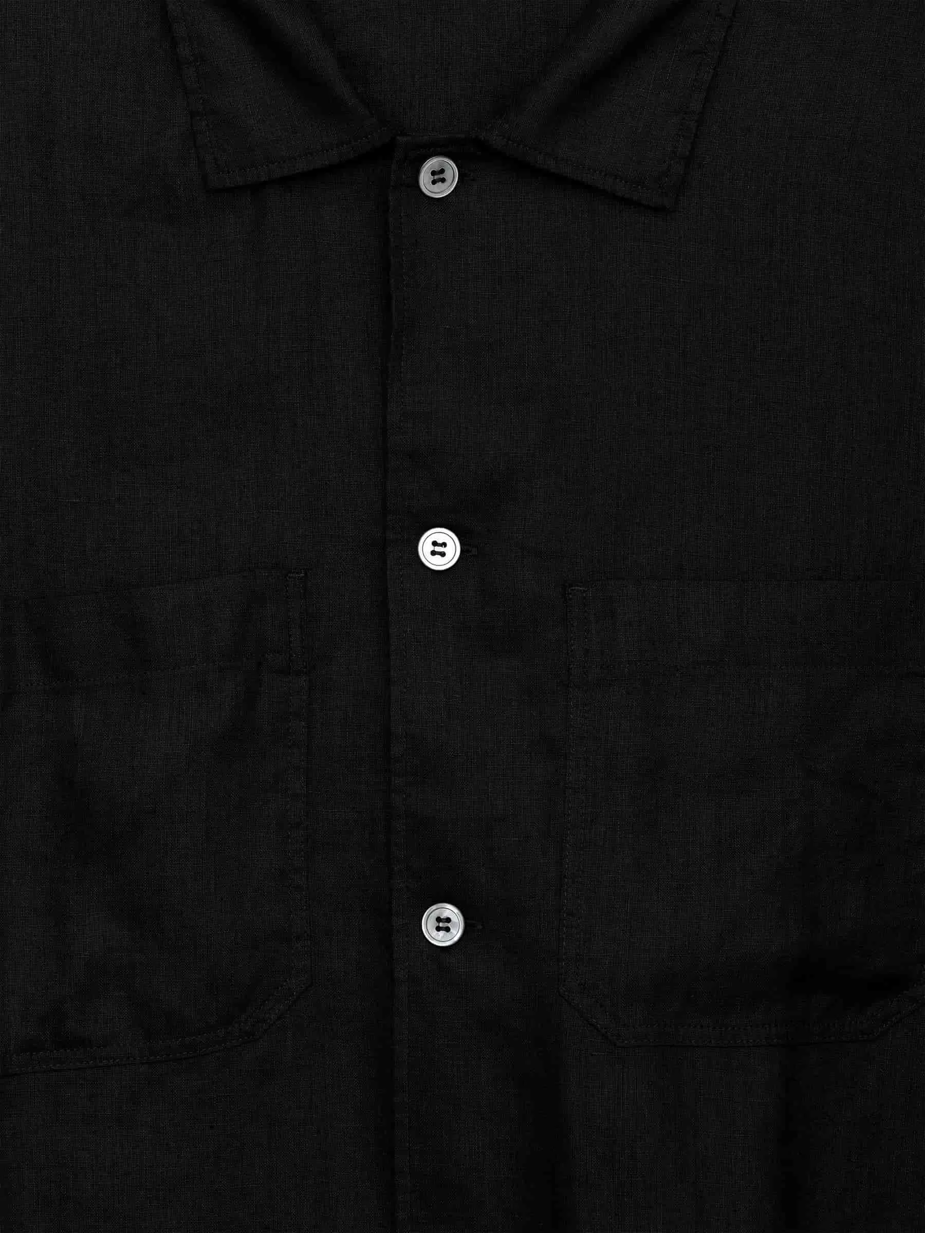Langärmliges Leinenhemd mit Brusttaschen und lockerer Passform.