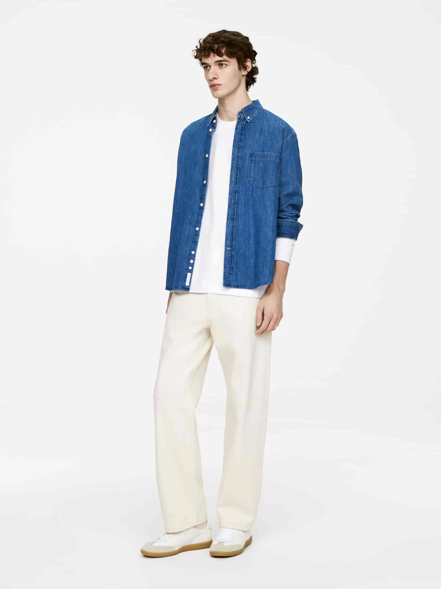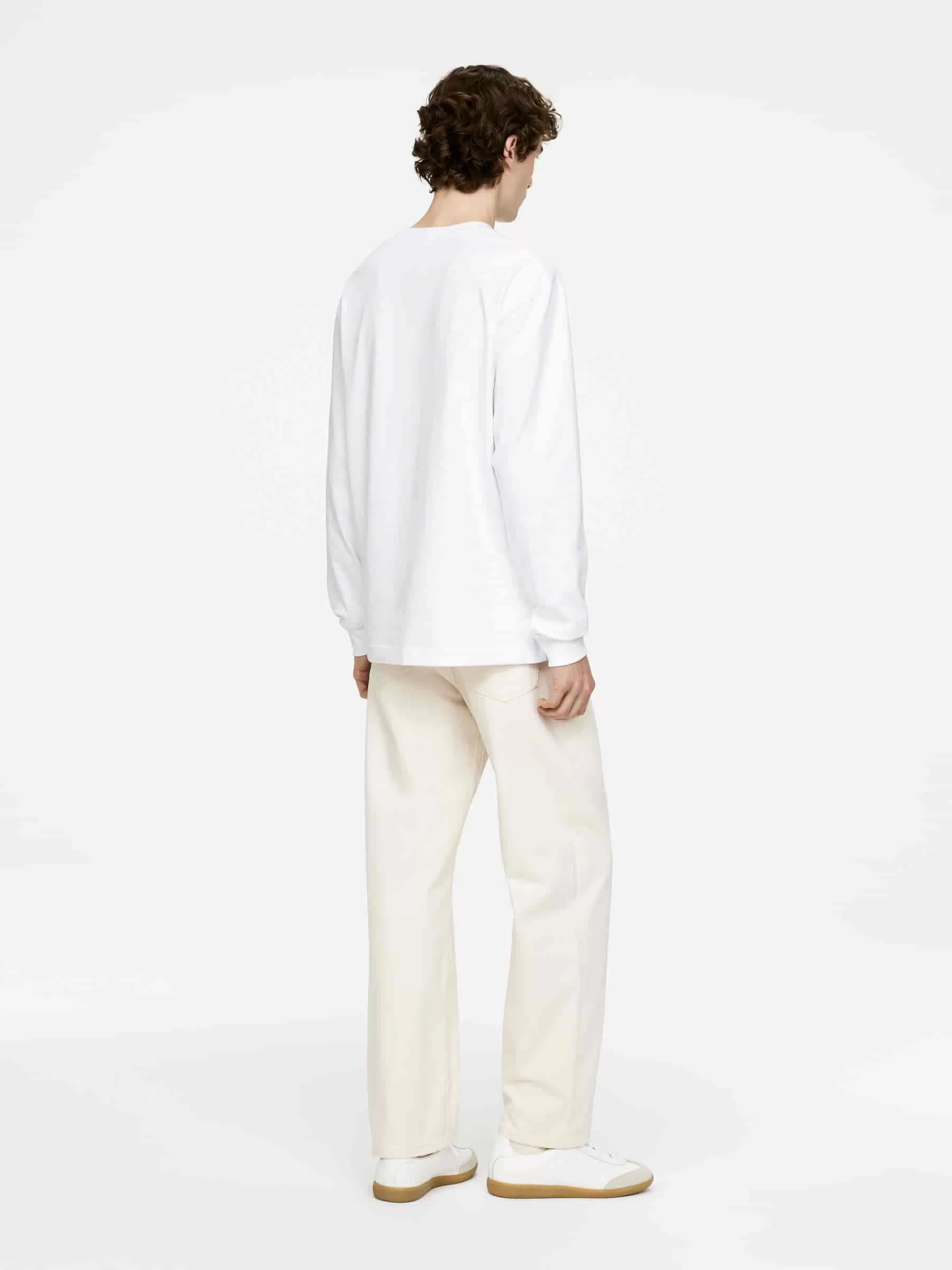 Langärmliges Baumwoll-T-Shirt mit lockerer Passform und überschnittenen Schultern. Rippbündchen an Bündchen und Hals.