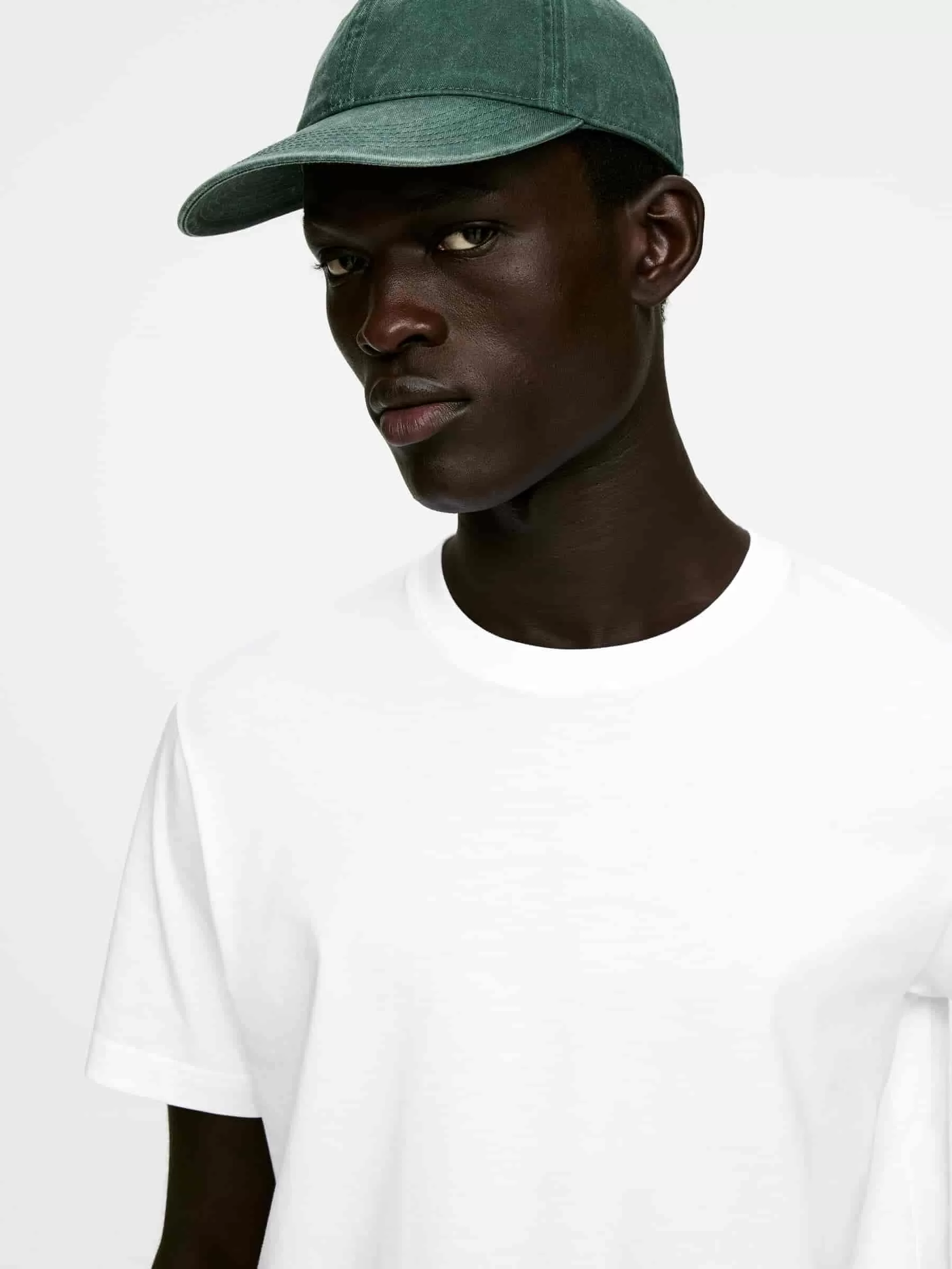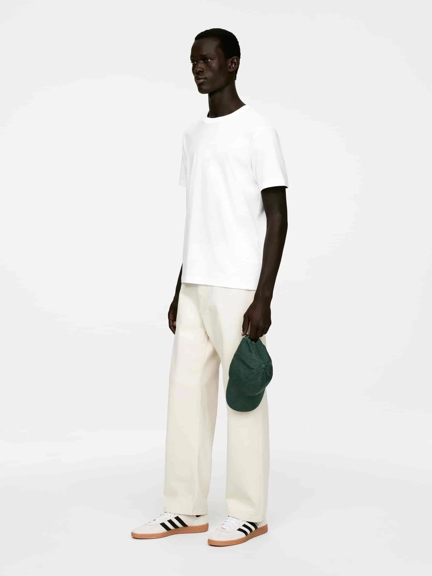 Klassischer T-Shirt-Schnitt mit Rundhalsausschnitt für eine normale Passform. Es besteht aus 170 GSM Single Jersey, was darauf hinweist, dass es das leichteste der Standard-T-Shirts von ARKET ist.