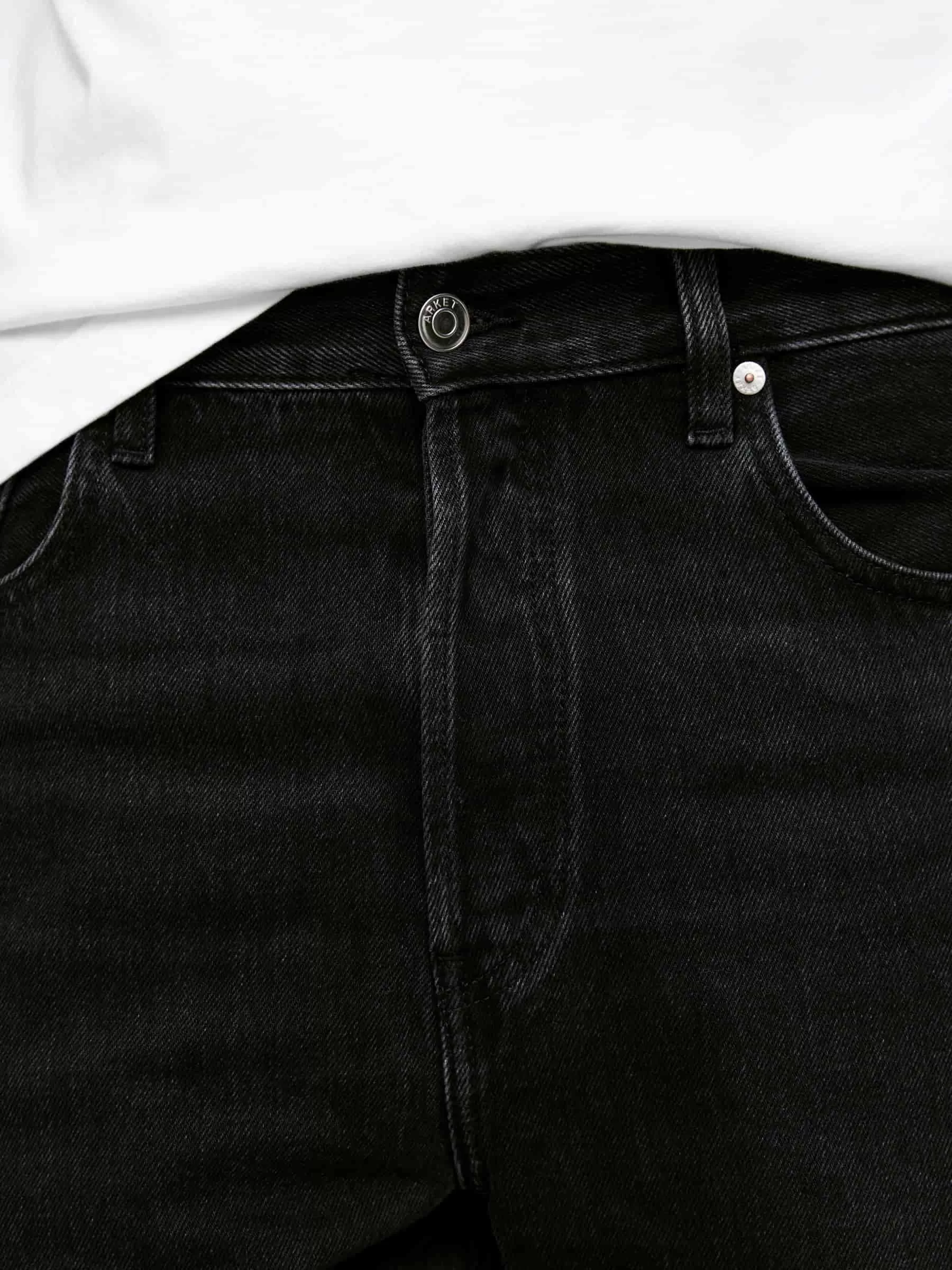 MIST ist unsere weiteste Passform, geschnitten aus nicht dehnbarem Baumwolldenim. Es verfügt über einen tiefen Schritt, eine lockere Passform, die mehr Platz um den Sitz herum bietet, und breite, durchgehende Beine. Knopfleiste.