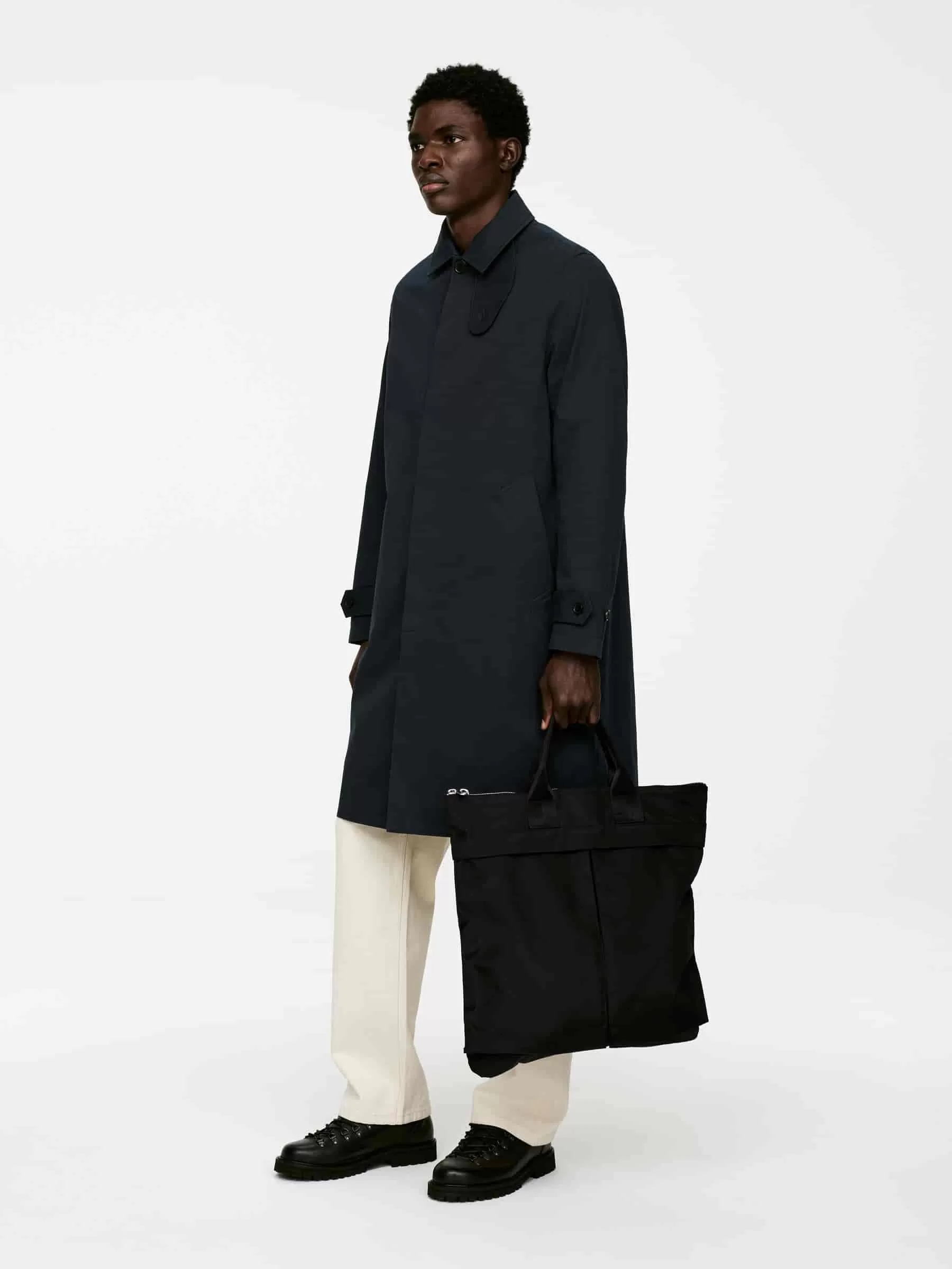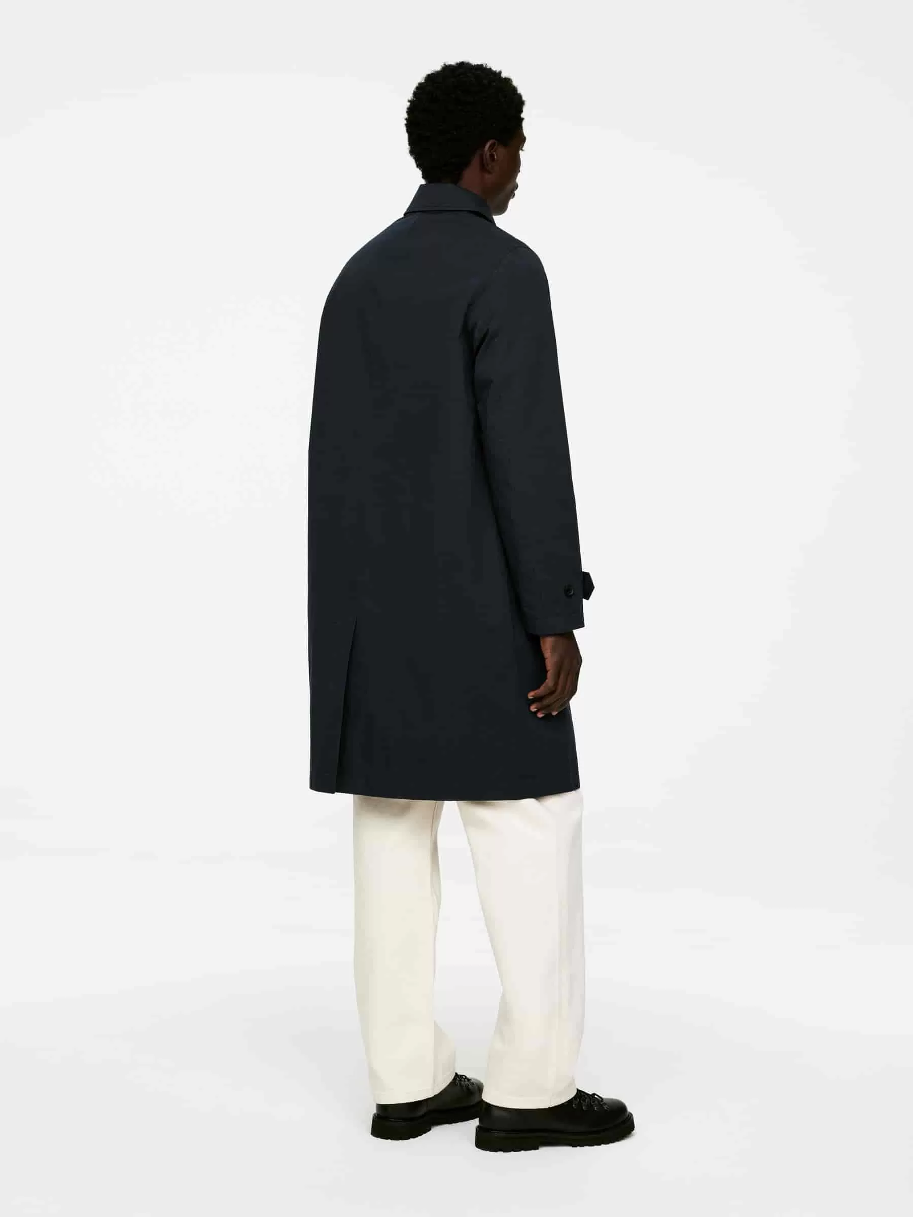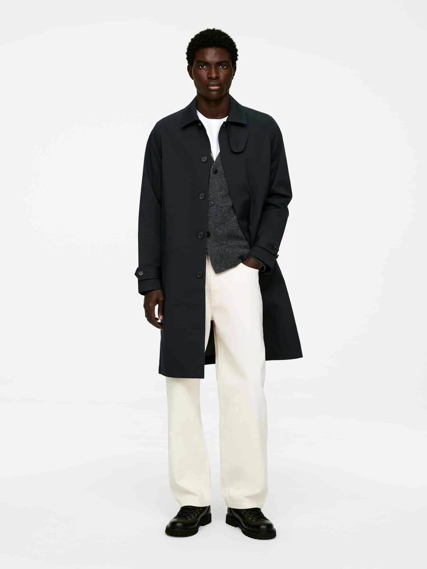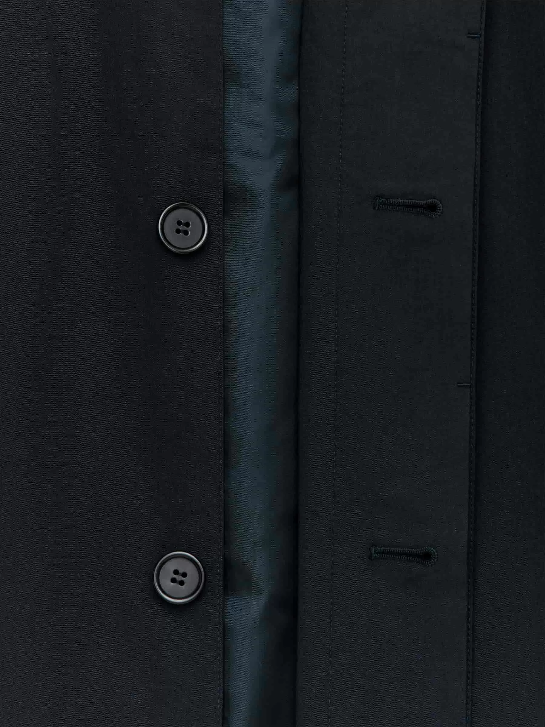 Automantel aus einer Baumwollmischung. Ein mittellanger Stil mit verdeckter Knopfleiste und schrägen Taschen vorne. Windschutzklappe am Innenkragen und verstellbare Manschetten mit Knopfverschluss. Zwei Innentaschen. Normale Passform. Dieses Kleidungsstück ist Teil der 2-in-1-Serie, einem modularen Oberbekleidungssystem, das Schalen und isolierende Einlagen umfasst, die speziell dafür konzipiert sind, zusammengesteckt zu werden und einen vollständig gepolsterten Mantel zu bilden.