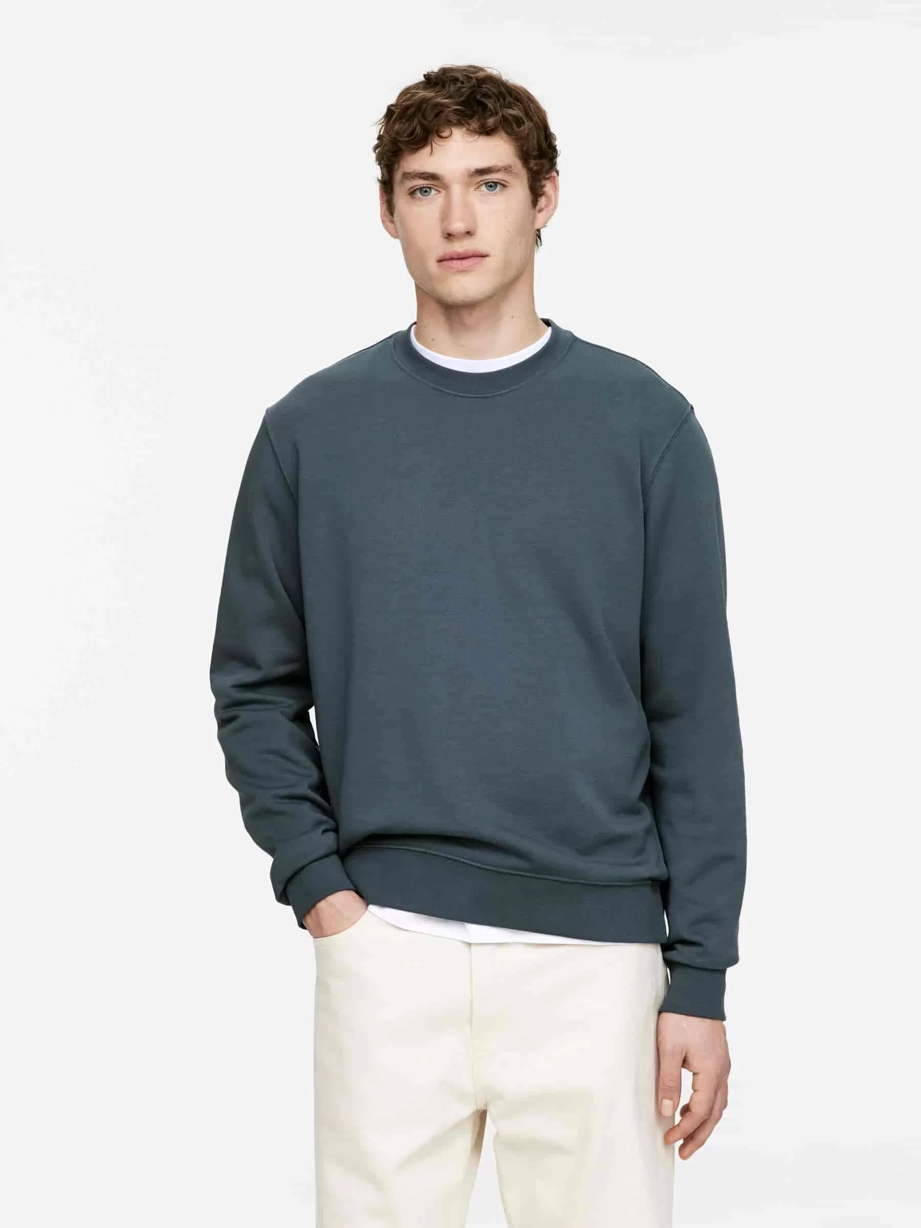 Sweatshirt aus mittelschwerem 340 g/m² French Terry. Ein Rundhalsausschnitt mit gerippten Besätzen. Für eine normale Passform geschnitten.