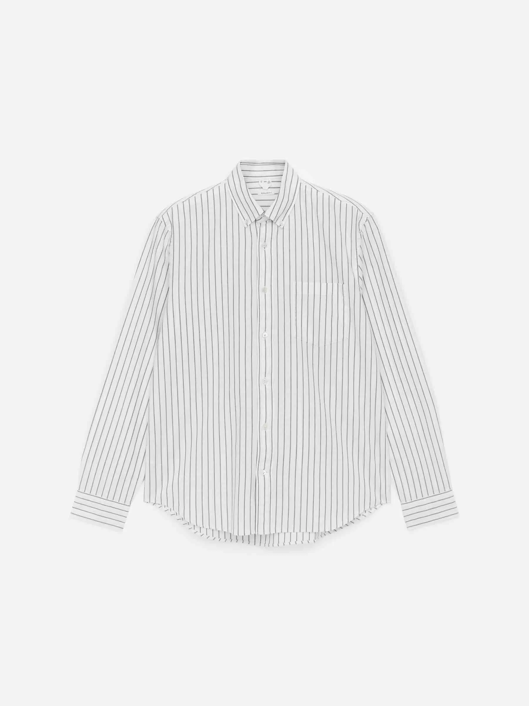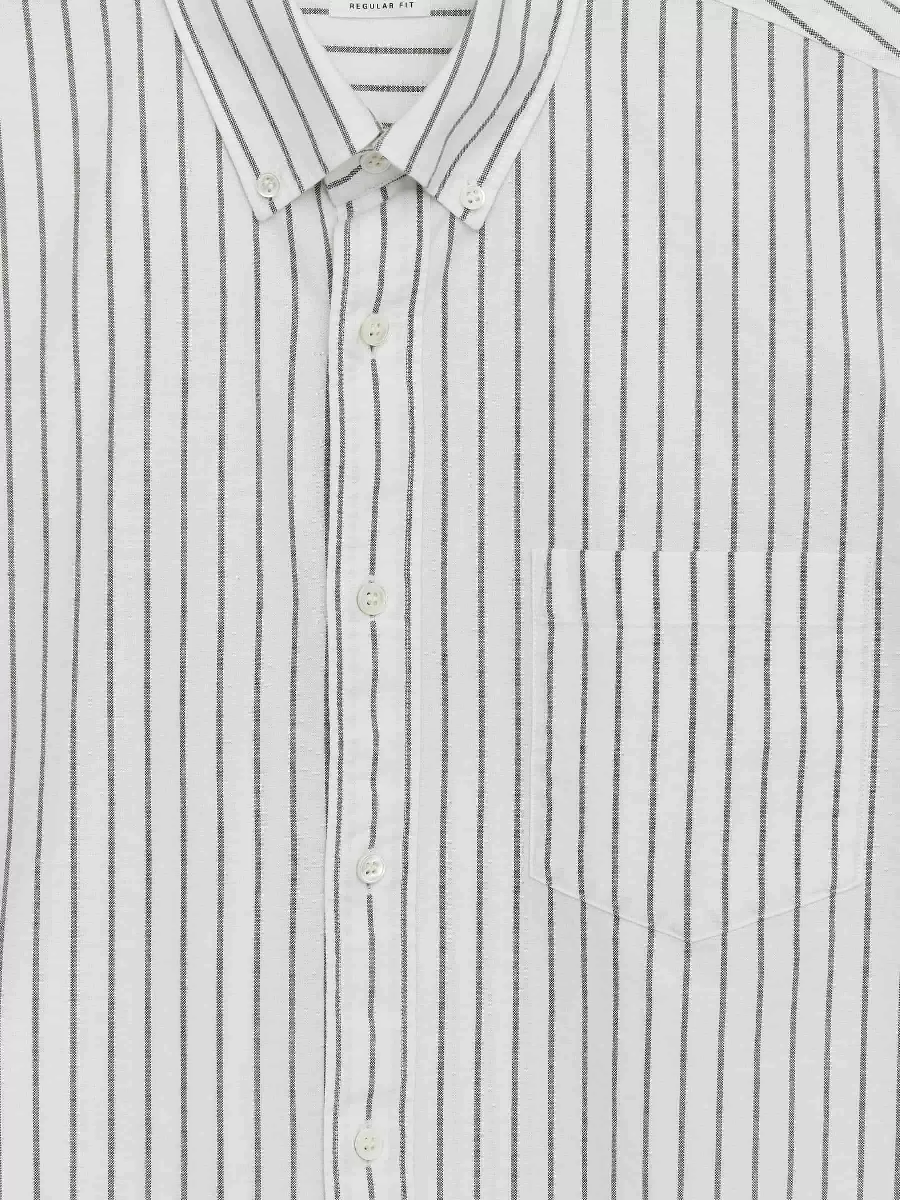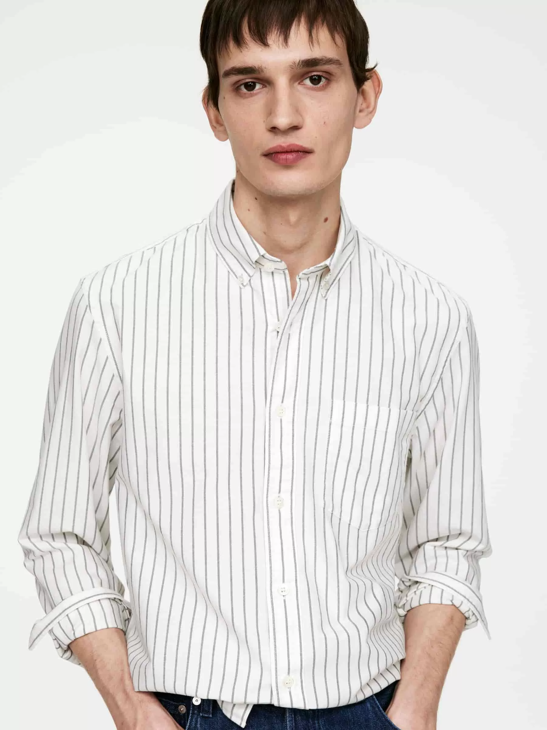 Dieses Hemd ist eines der archetypischen Designs von ARKET, ein normal geschnittenes Hemd mit Button-Down-Kragen. Diese Iteration ist aus einem Oxford-Gewebe genäht. Ein lässiger Stil mit normaler Knopfleiste vorne und einer Brusttasche. Abgerundeter Saum.