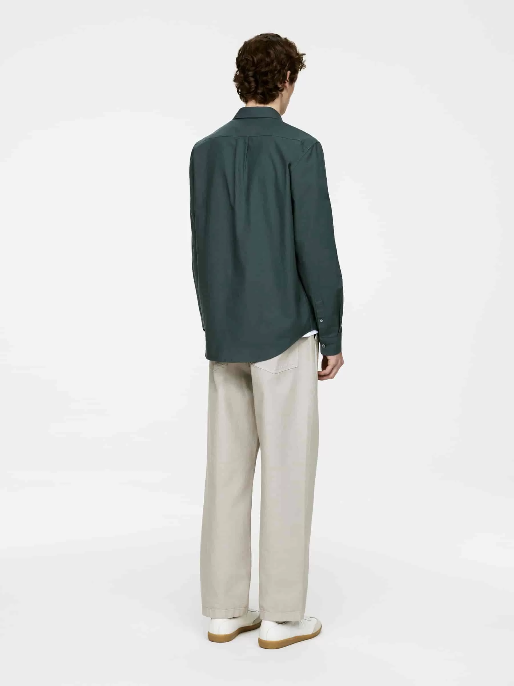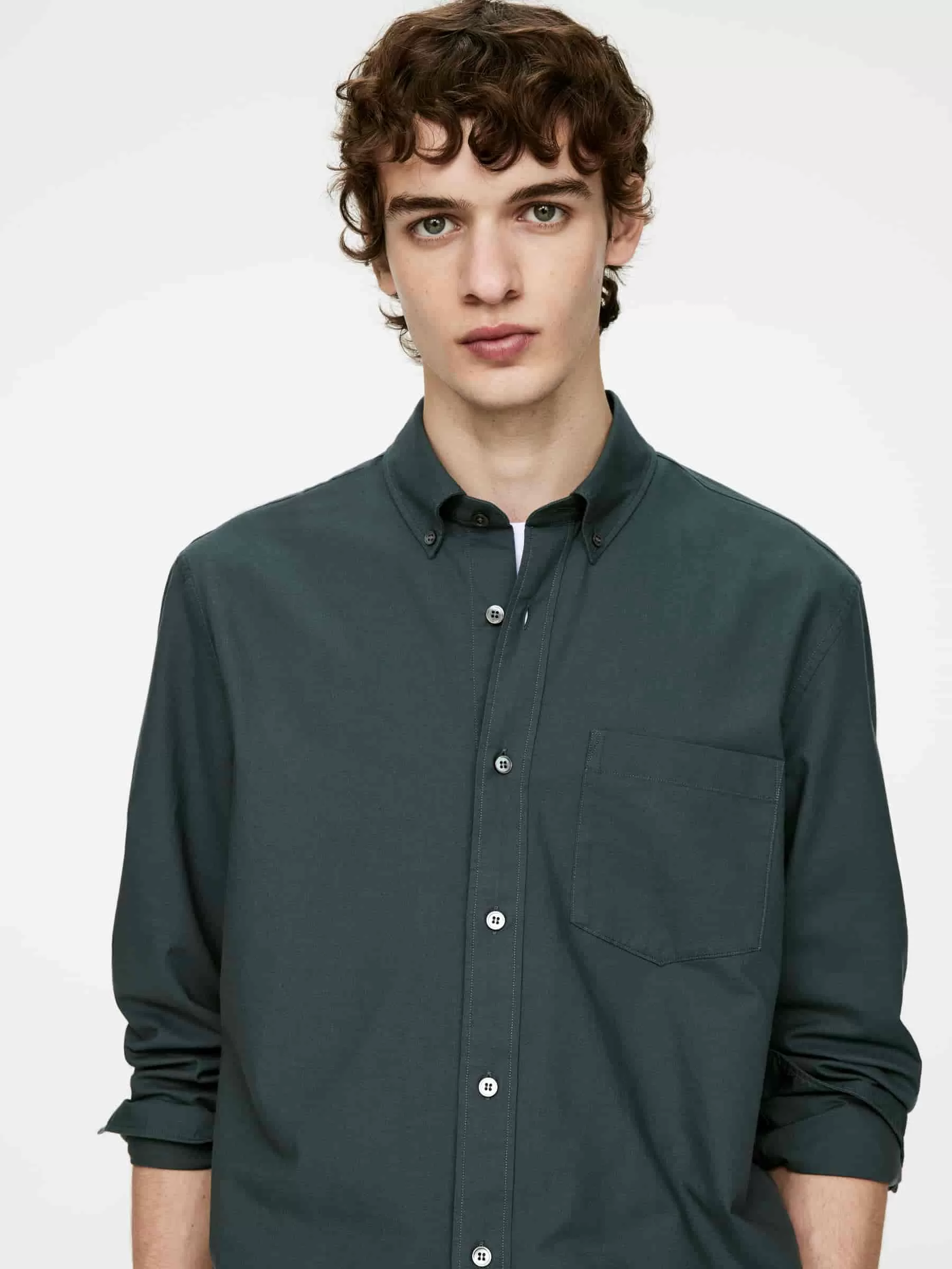 Dieses Hemd ist eines der archetypischen Designs von ARKET, ein normal geschnittenes Hemd mit Button-Down-Kragen. Diese Iteration ist aus einem Oxford-Gewebe genäht. Ein lässiger Stil mit normaler Knopfleiste vorne und einer Brusttasche. Abgerundeter Saum.