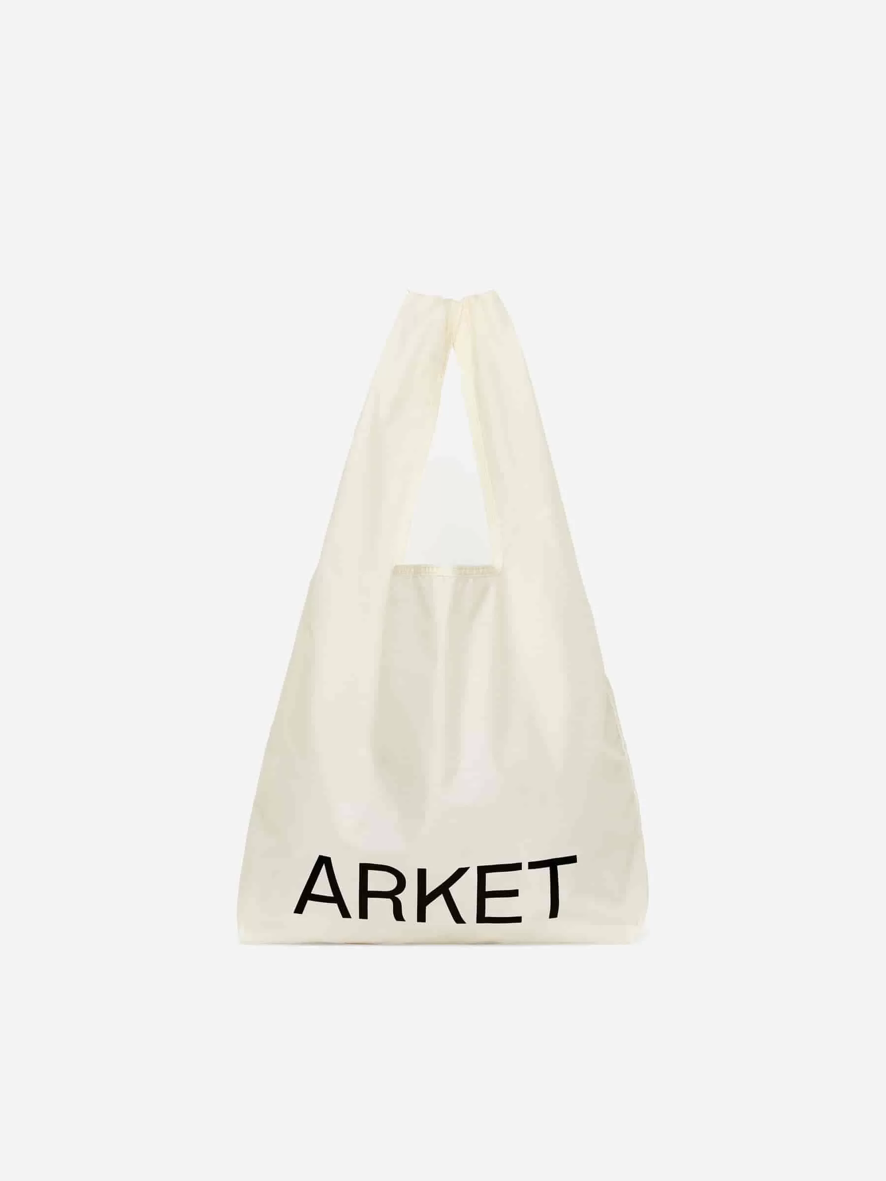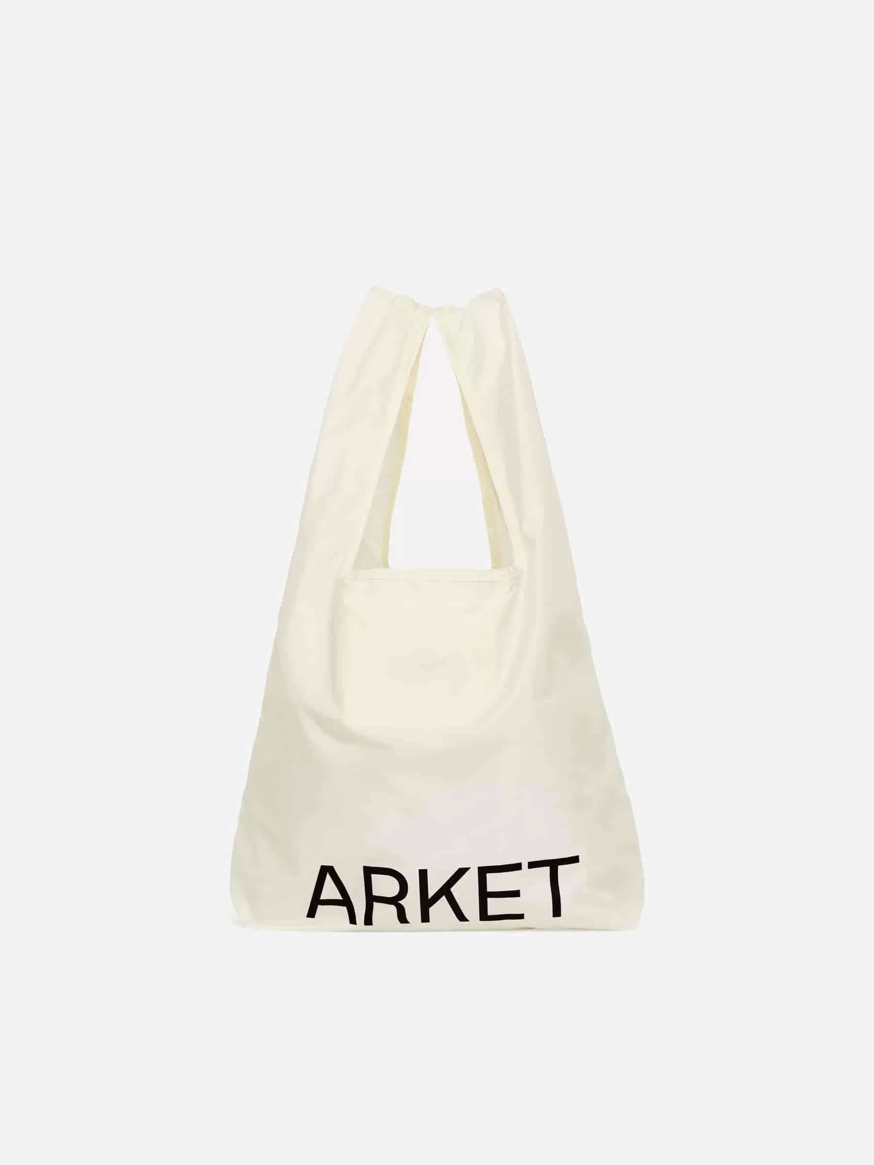 Leichter Shopper mit aufgedrucktem ARKET-Logo. Ein praktisches Mitbringteil, das zur einfachen Aufbewahrung in der eigenen Tasche verstaut werden kann. Abmessungen 70 cm x 34 cm.