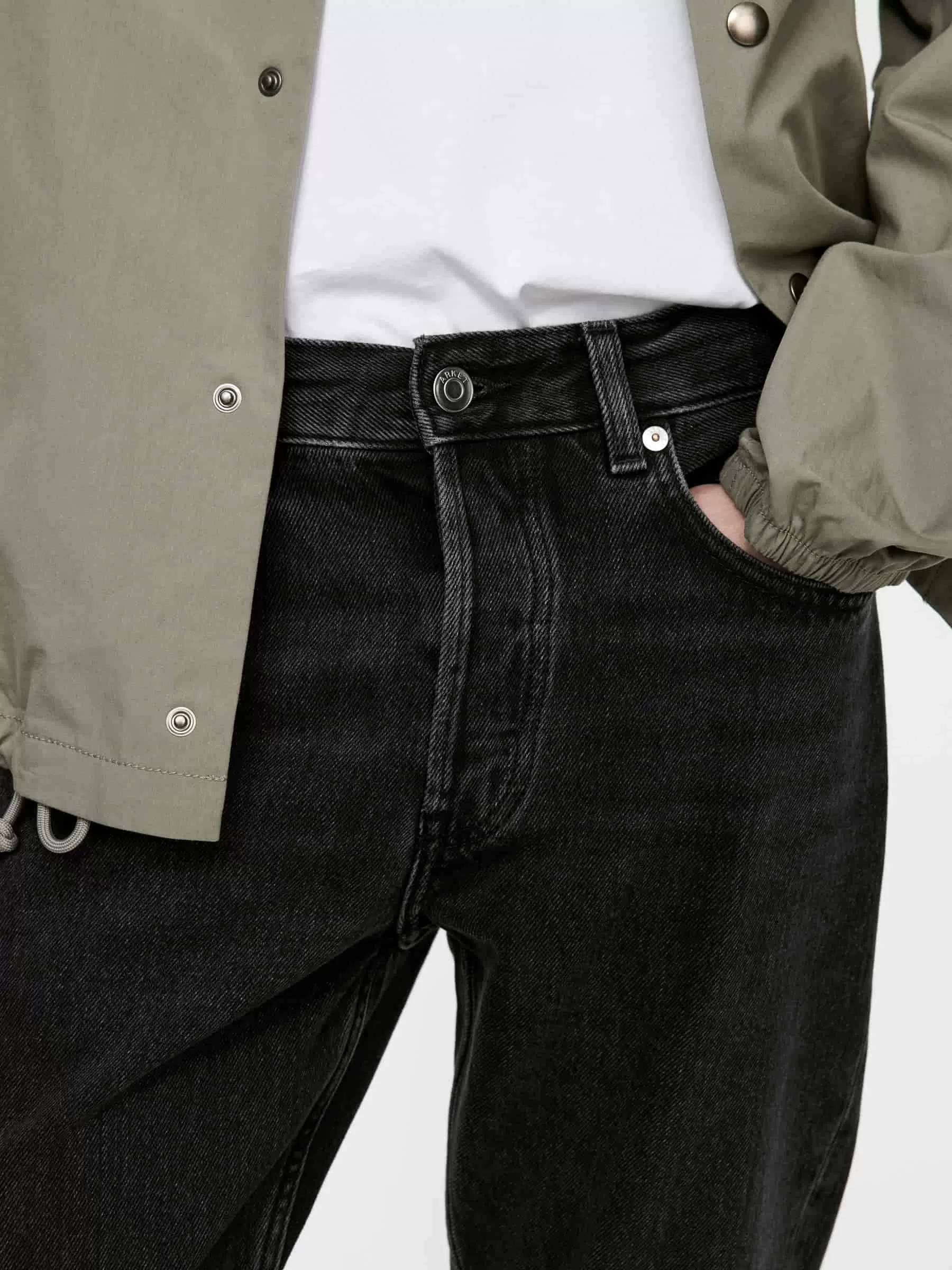 PARK ist aus nicht dehnbarem Denim geschnitten und hat eine mittelhohe Taille, eine normale Passform und gerade, leicht schmal zulaufende Beine ab dem Knie. Knopfleiste.