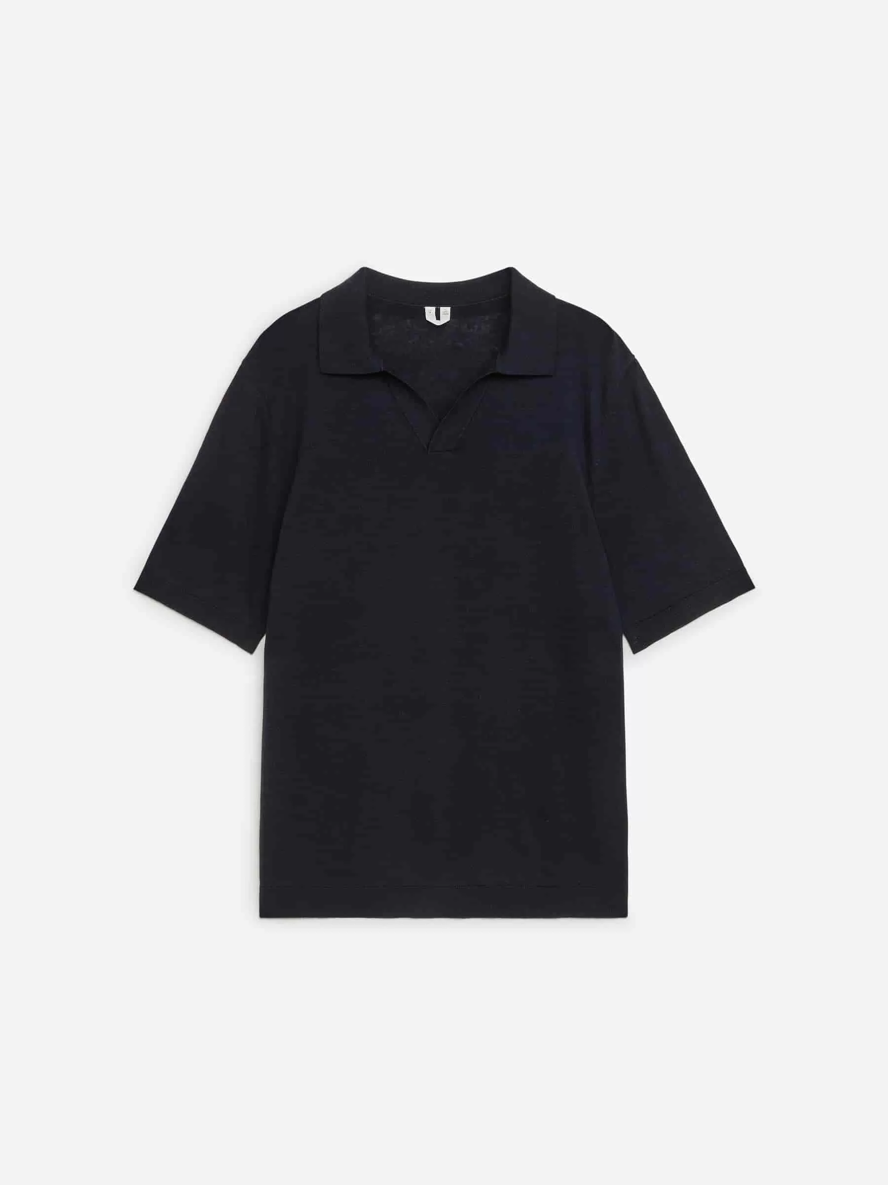 ARKE Herren Poloshirt aus Baumwollleinen Dunkelblau