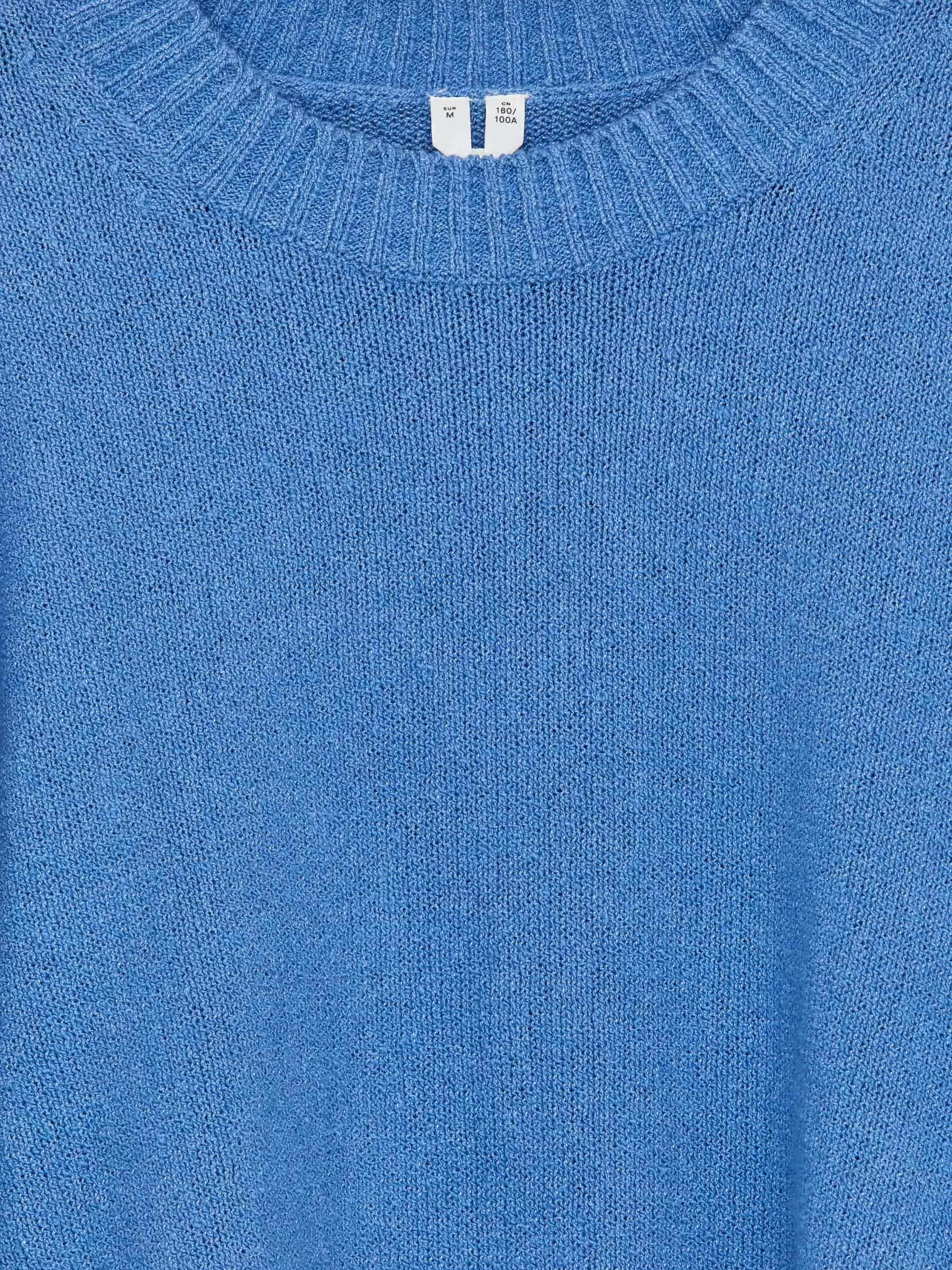Pullover mit Rundhalsausschnitt, leicht überschnittenen Schultern und gerippten Kanten an Bündchen, Hals und Saum. Hergestellt aus einer luxuriösen Mischung aus Baumwolle, Polyester, Leinen und Maulbeerseide.
