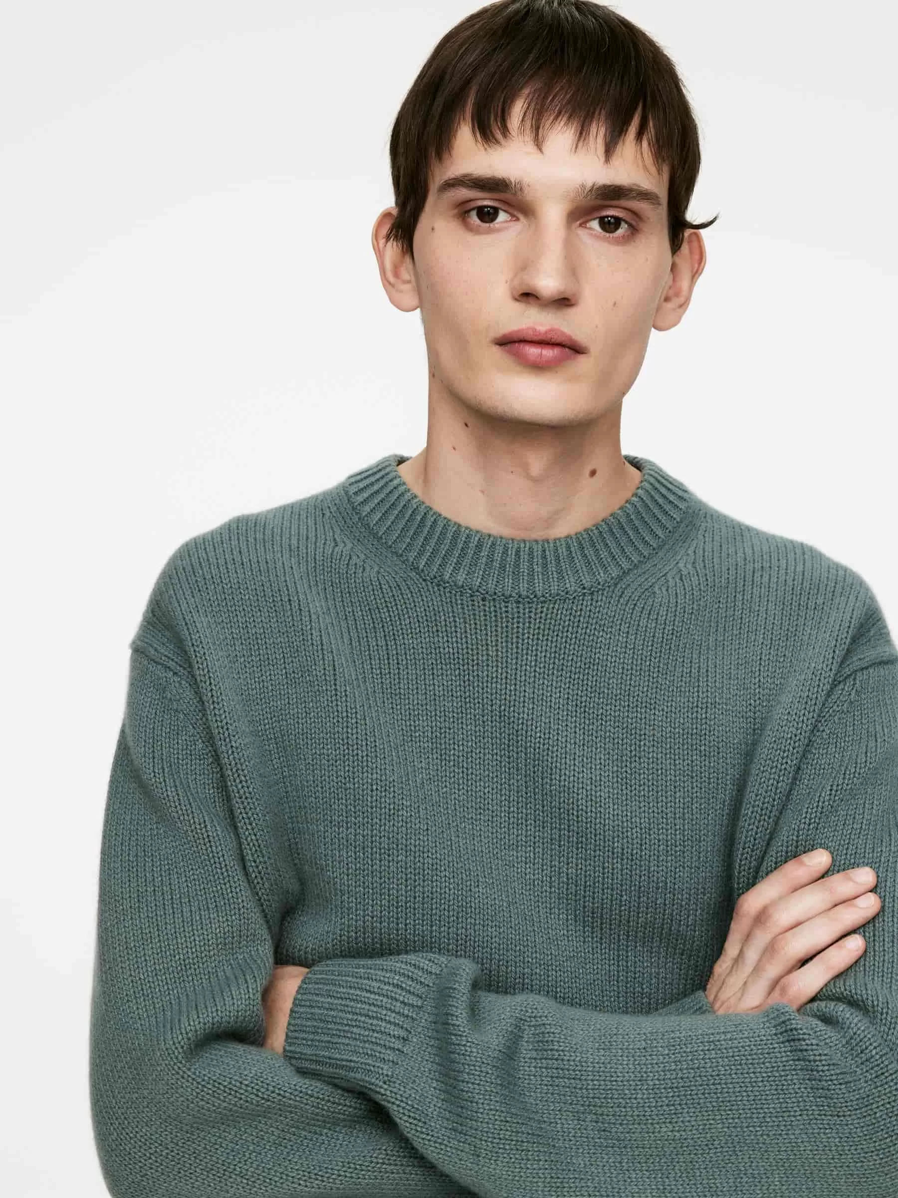 ARKE Herren Pullover aus schwerer Wollmischung Dunkelgrün