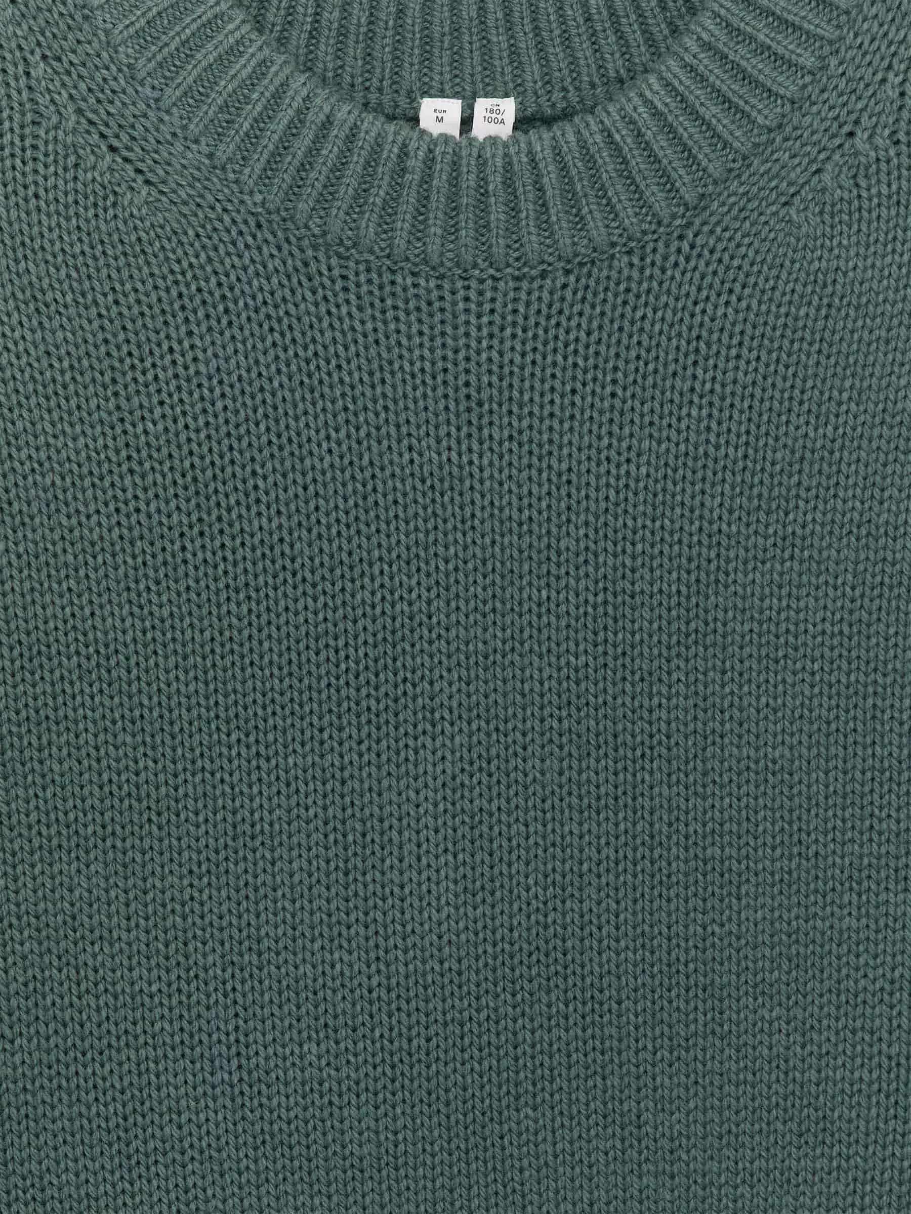 Klobiger Pullover aus Glattstrick mit übergroßer Passform und kastenförmiger Silhouette. Hergestellt aus weicher Wolle mit Nylonzusatz für ein leichtes Tragegefühl. Ein Rundhalsausschnitt mit Rippstrickbesätzen.