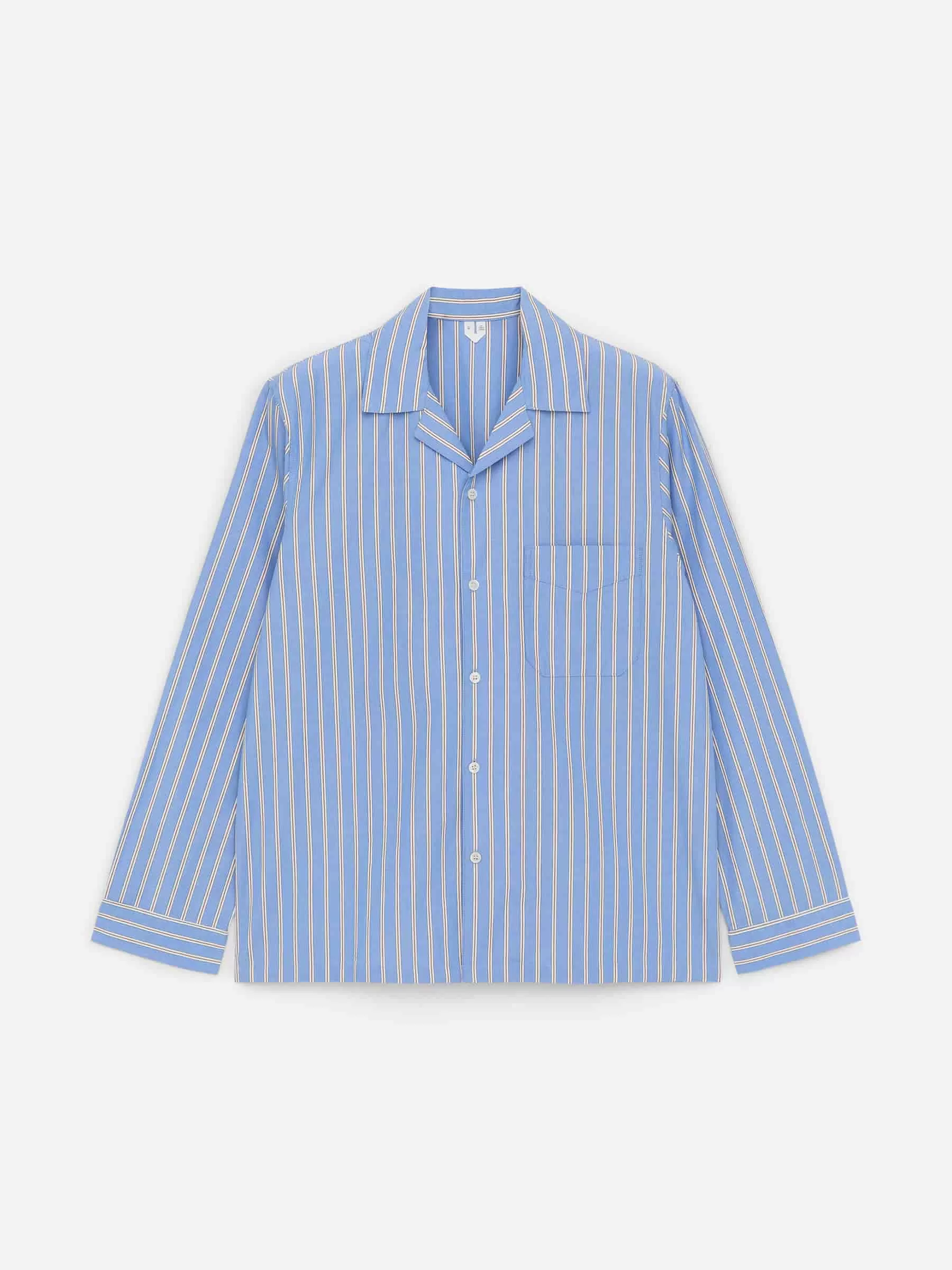 Pyjamahemd aus knackiger Baumwollpopeline. Ein gerade geschnittener Stil mit einer Brusttasche. Vordere Knopfleiste mit Perlmuttknöpfen, was bedeutet, dass dieses Produkt Details tierischen Ursprungs enthält.