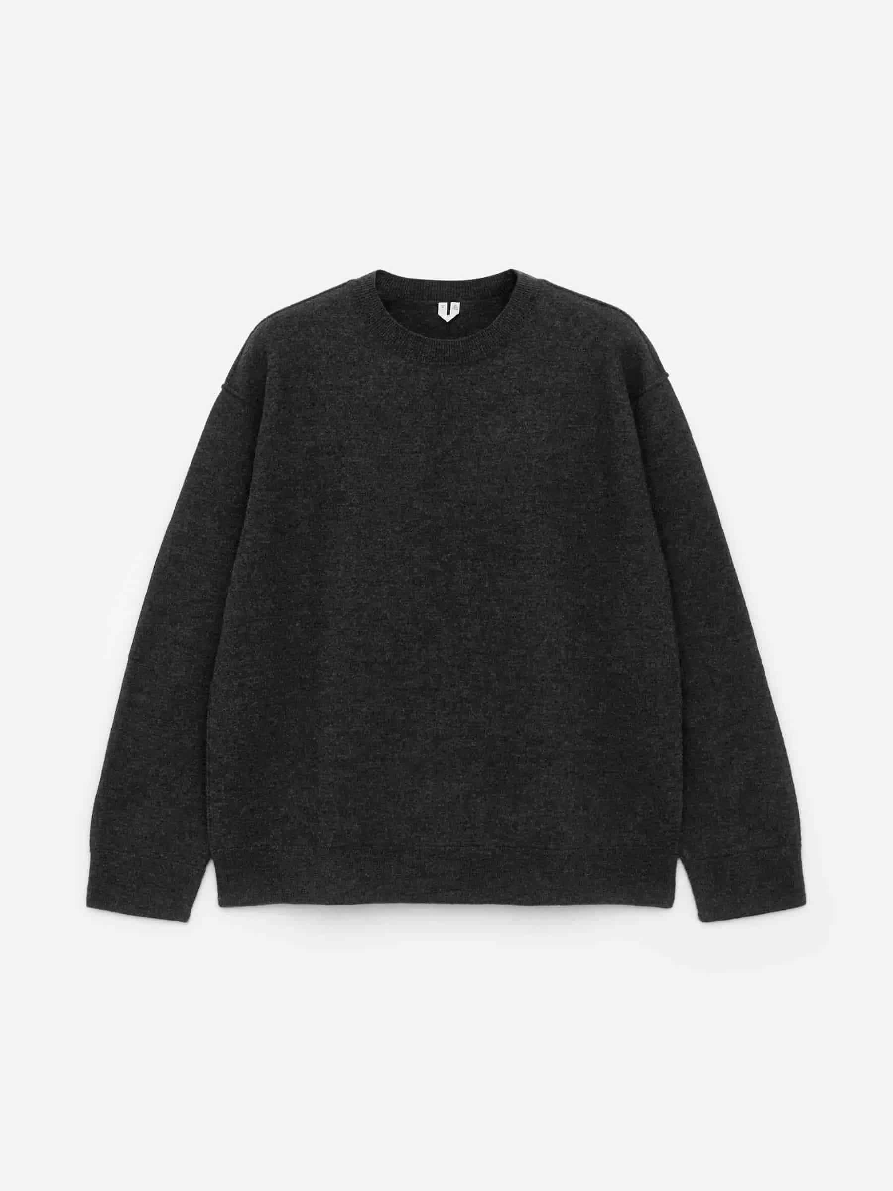 ARKE Herren Rundhalspullover aus gekochter Wolle Dunkelgrau