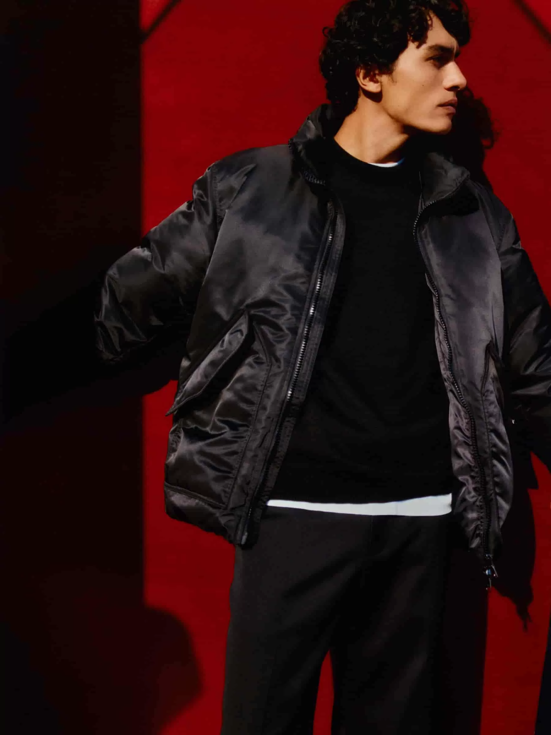 ARKE Herren Upcycled Daunenfliegerjacke Schwarz