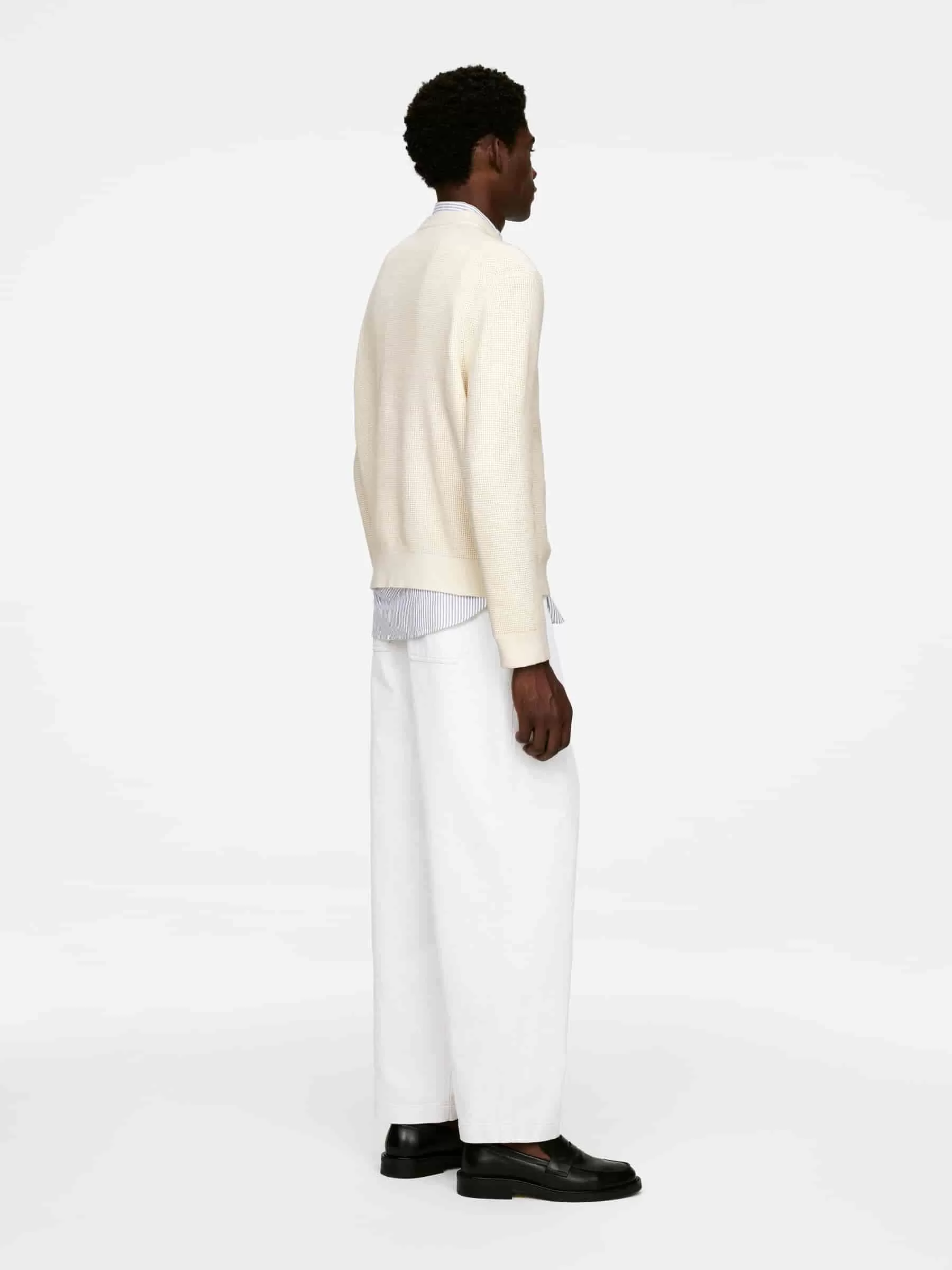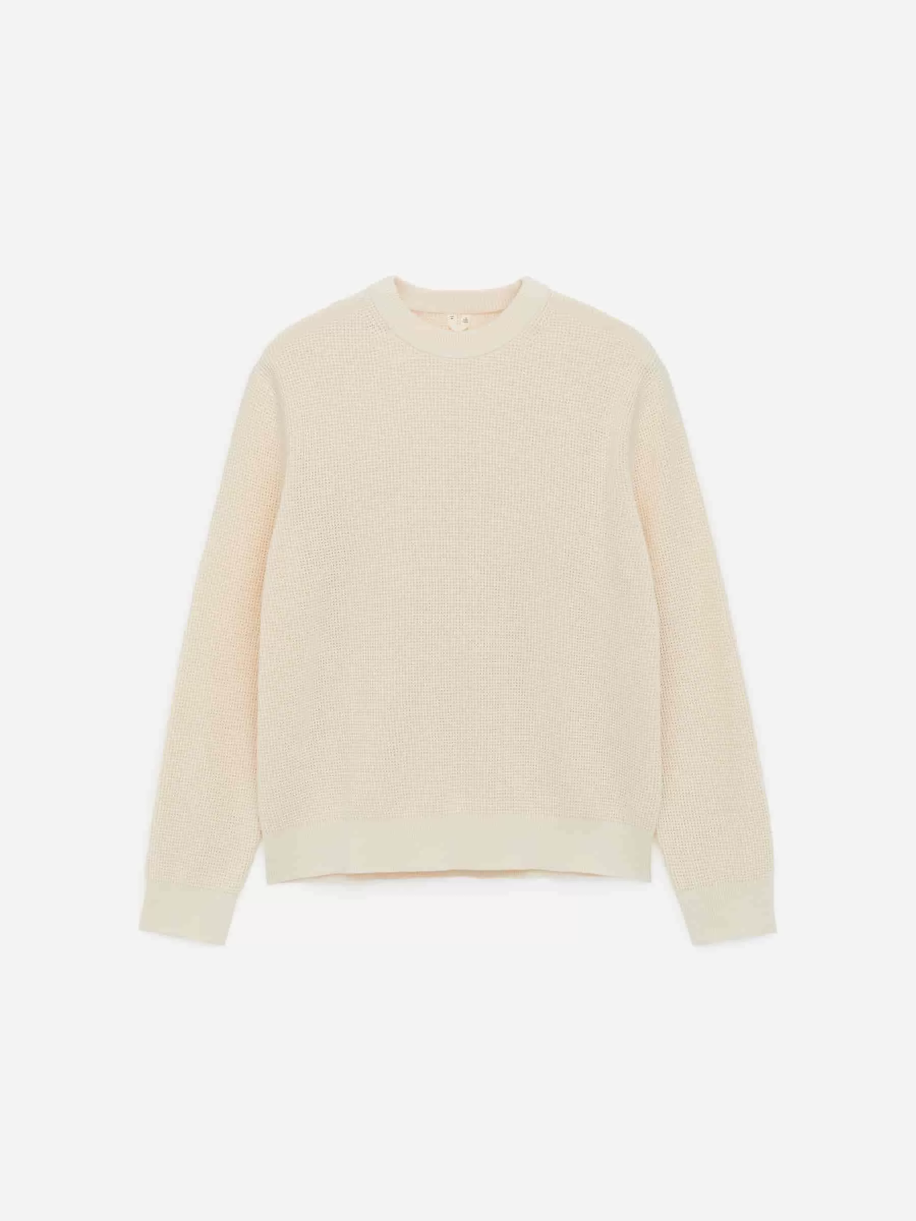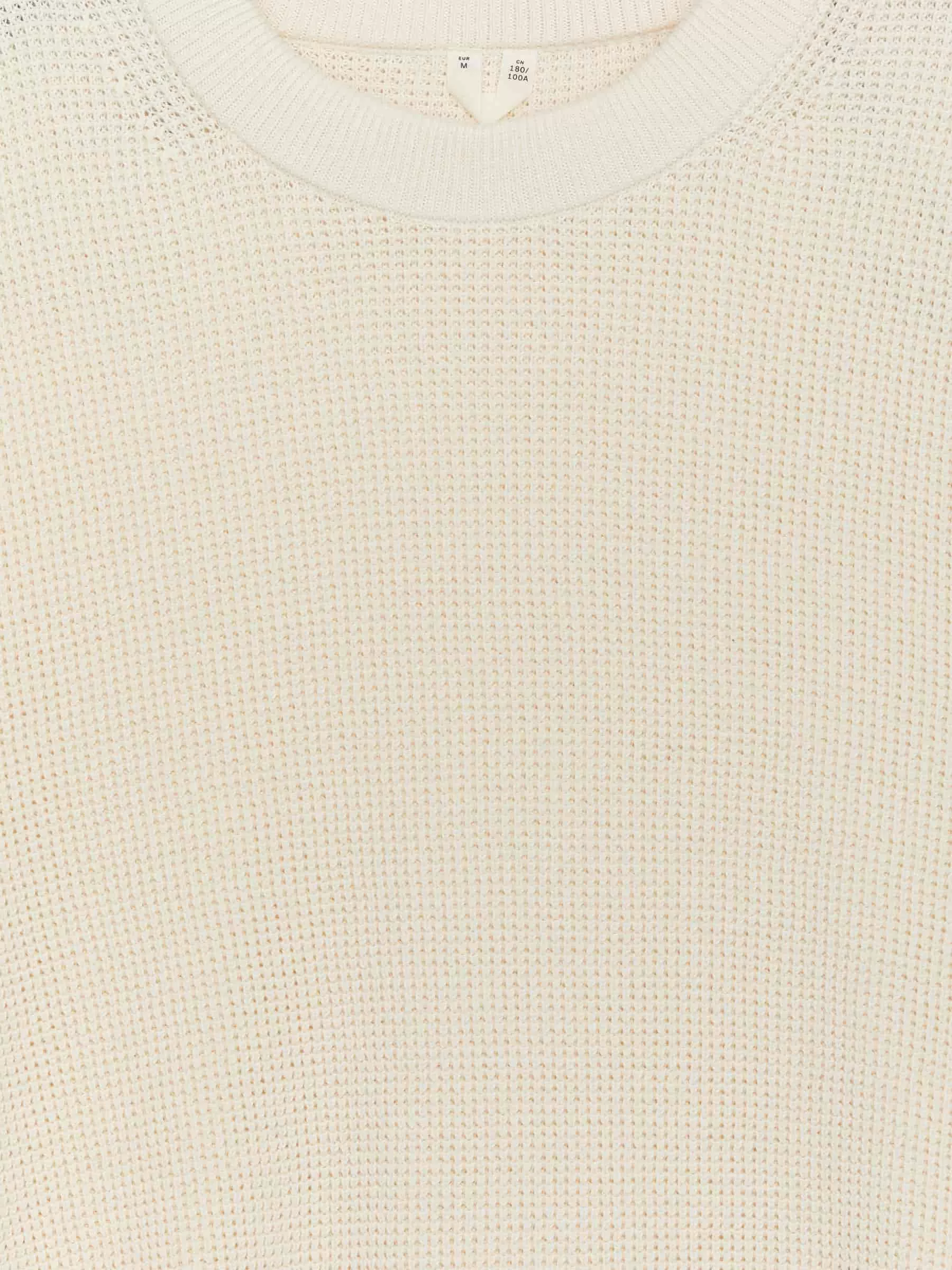 Pullover aus einer Baumwoll-Leinen-Mischung, gestrickt mit Waffelstruktur. Ein Rundhalsausschnitt in normaler Passform. Rippstrickbesätze.
