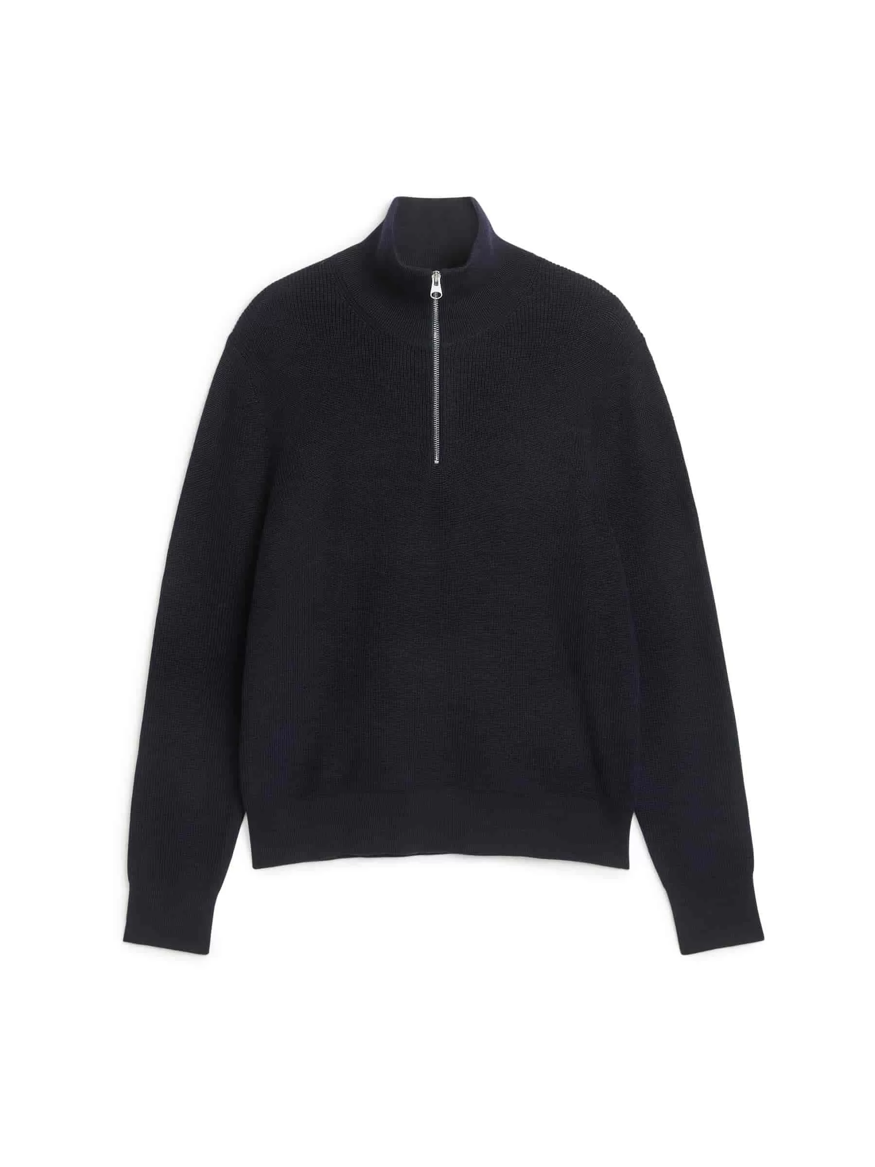 ARKE Herren Wolle & Pullover aus Baumwolle mit halbem Reißverschluss Dunkelblau