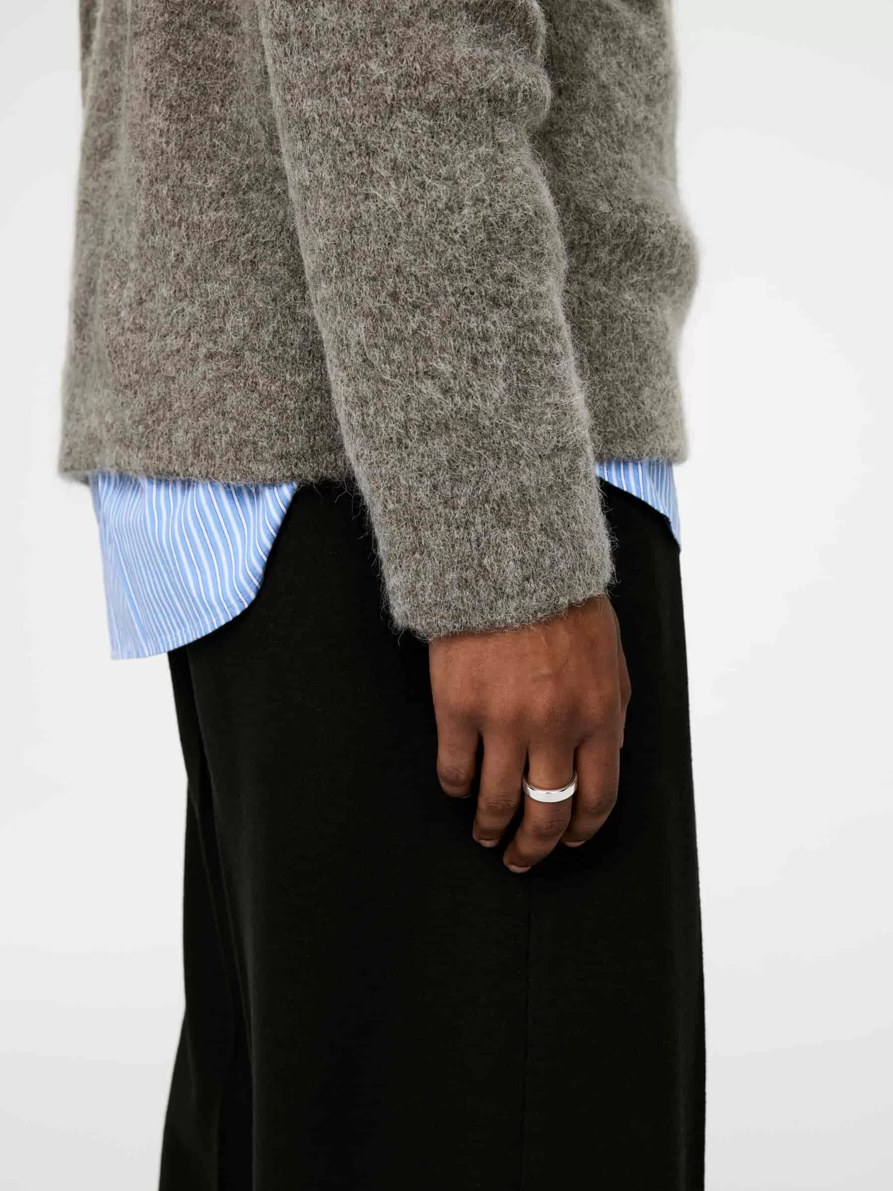 Dünner Ring mit abgerundeter Form aus massivem Sterlingsilber. Das Silber ist unbeschichtet, sodass es leicht mit jedem Silberpoliertuch poliert werden kann.