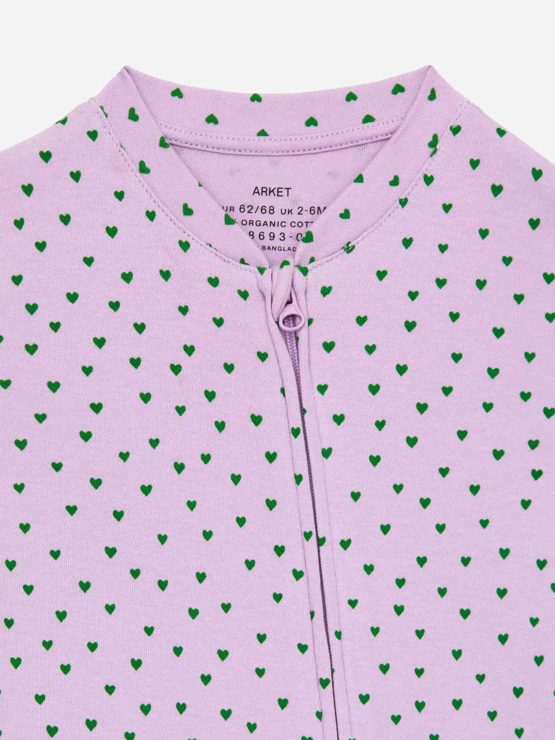 Pyjama aus weichem Jersey mit Allover-Print. Detailliert mit einem diagonalen Zwei-Wege-Reißverschluss für einfaches An- und Ausziehen.