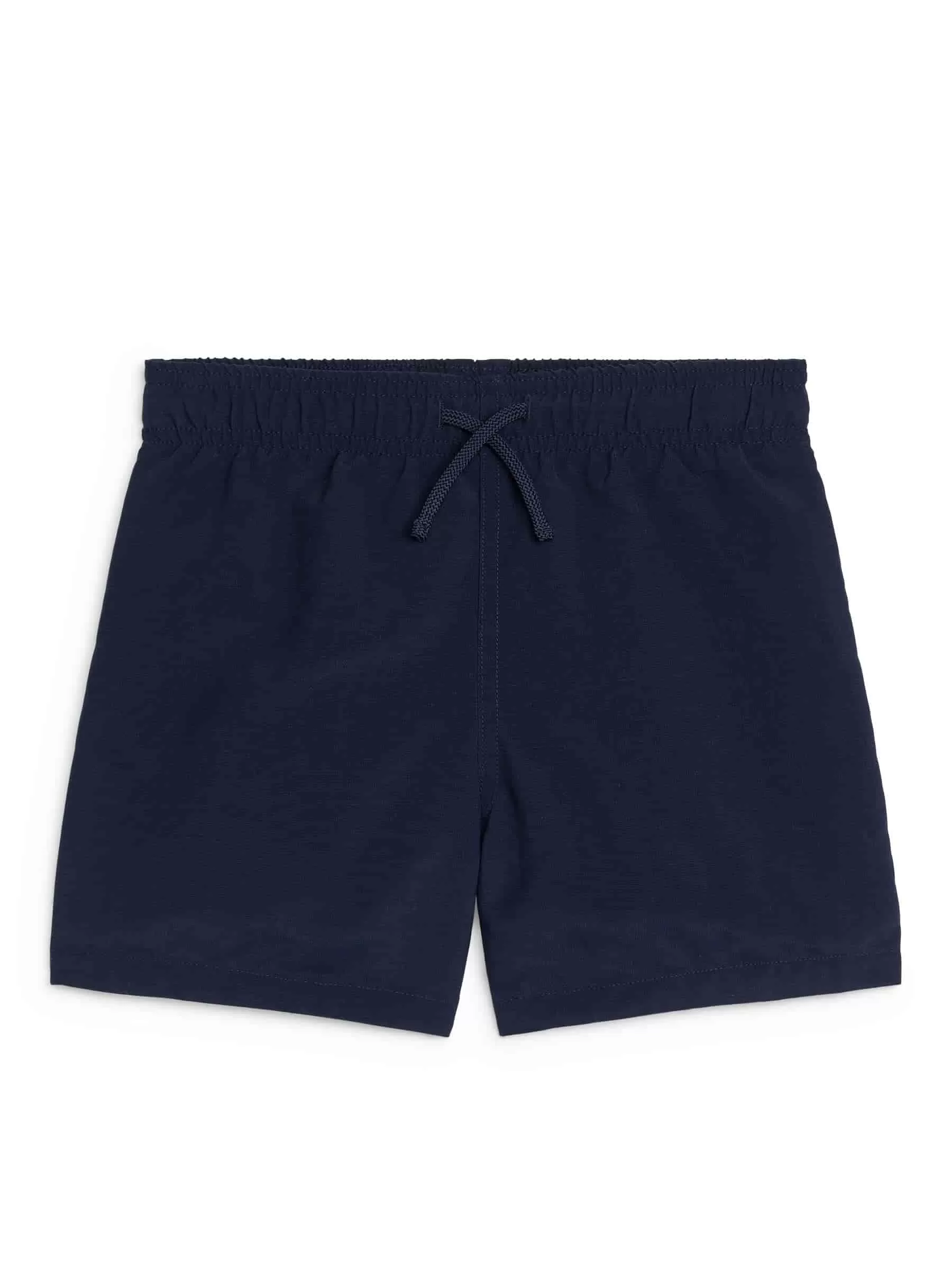 Badeshorts mit elastischem Bund und Kordelzug. Dies ist ein gefütterter, mittellanger Stil mit normaler Passform.