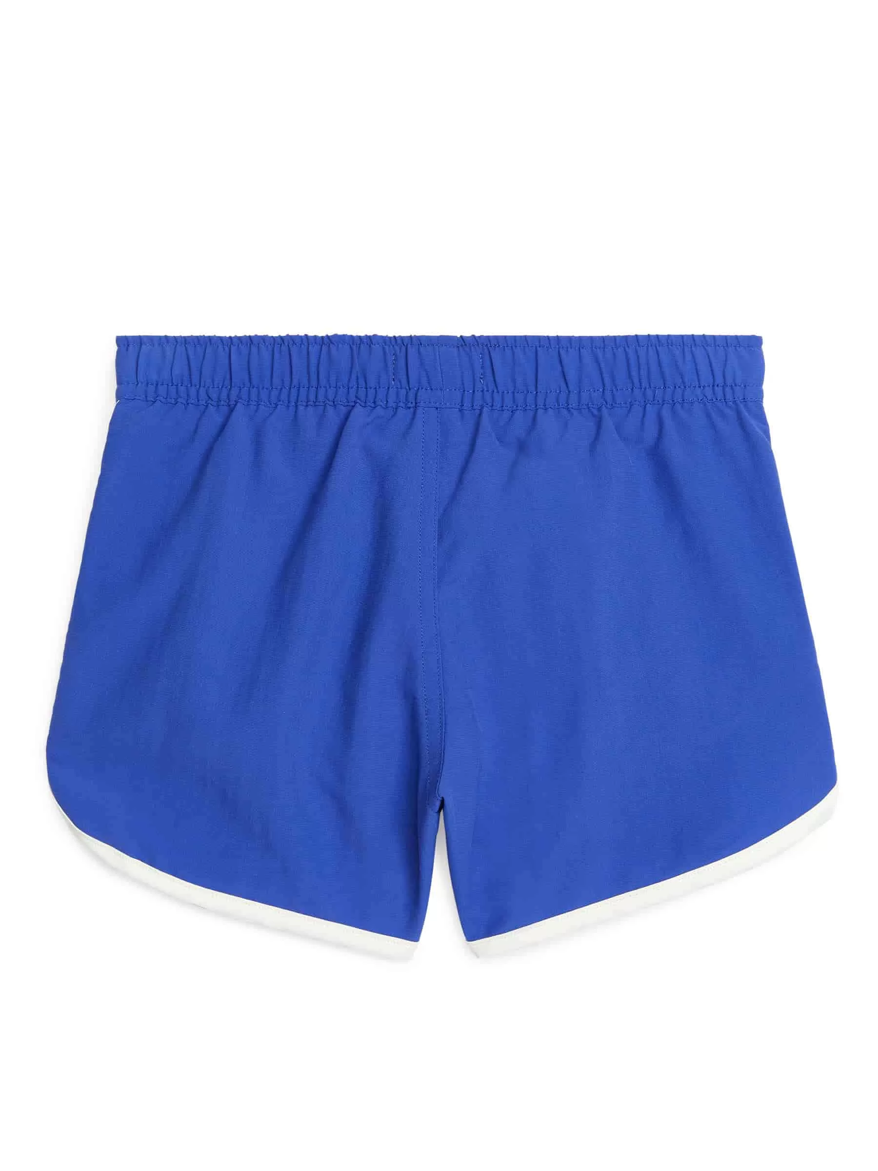 Badeshorts mit kontrastierenden Bindungen. Für eine normale Passform geschnitten. Detailliert mit Seitentaschen, Gummizügen in der Taille und Mesh-Futter.