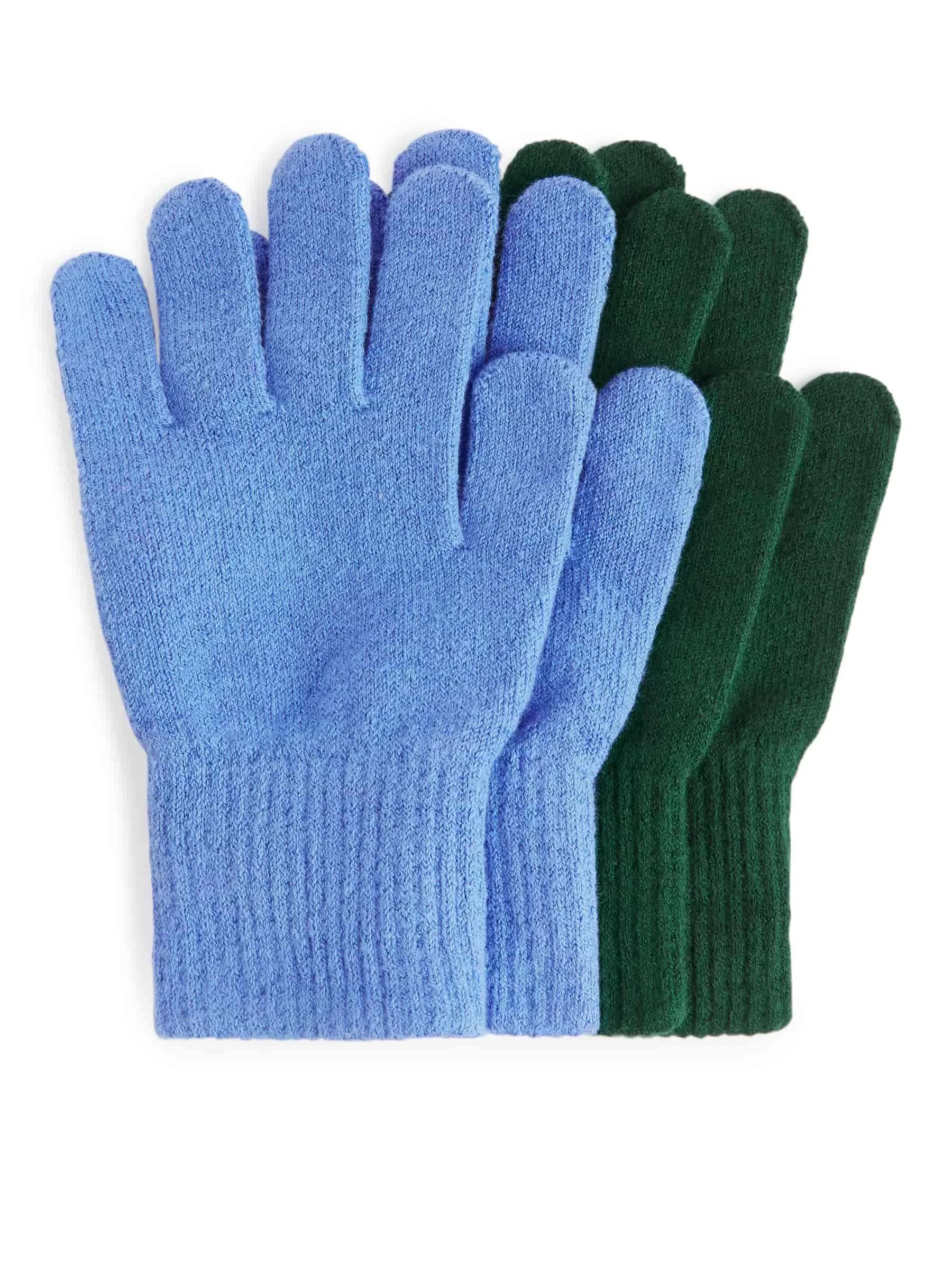 Handschuhe in Einheitsgröße, verkauft im praktischen 2er-Pack. Gestrickt aus einer weichen, dehnbaren Baumwollmischung, die nach jedem Waschen ihre Form behält. Gerippte Bündchen.