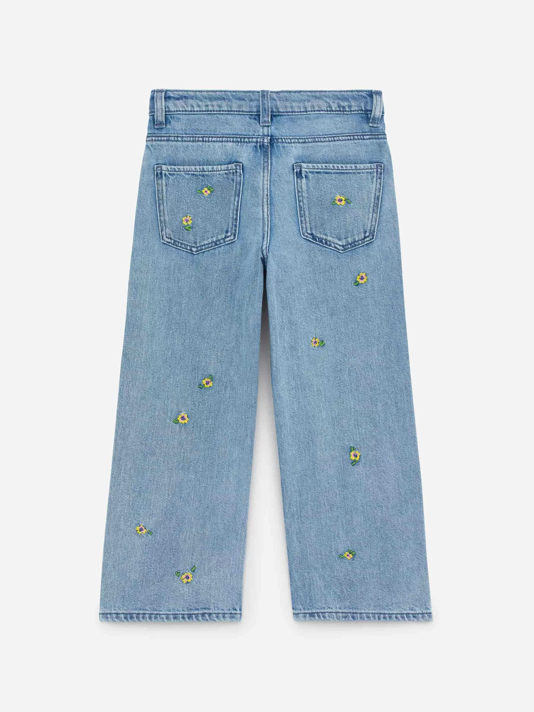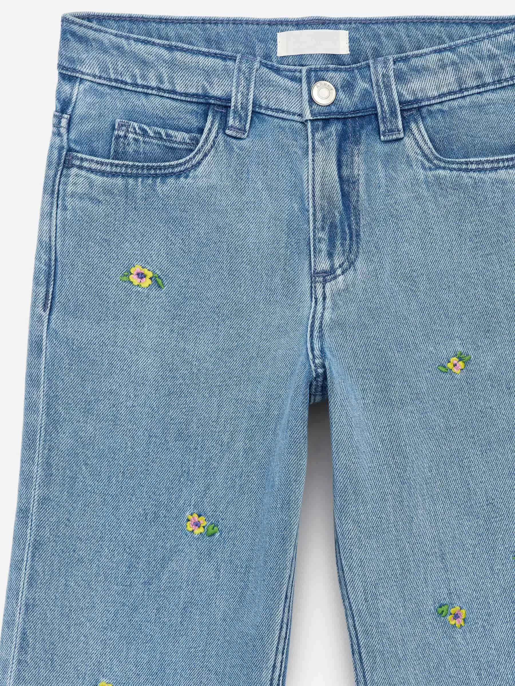 Jeanshose mit aufgestickten Marienkäfern. Ein klassischer 5-Pocket-Stil mit verstellbarem Innenbund. Entspannte Passform.