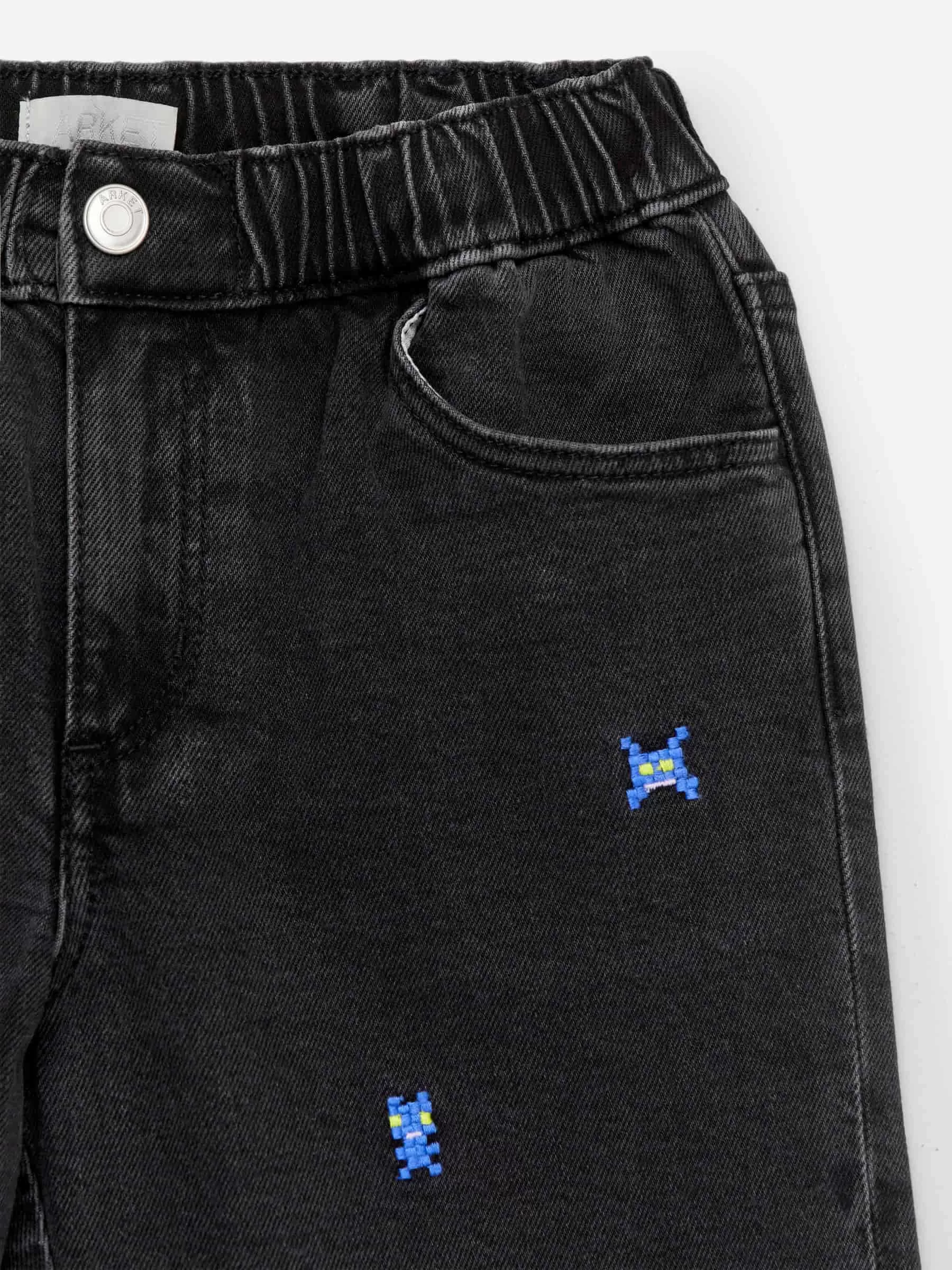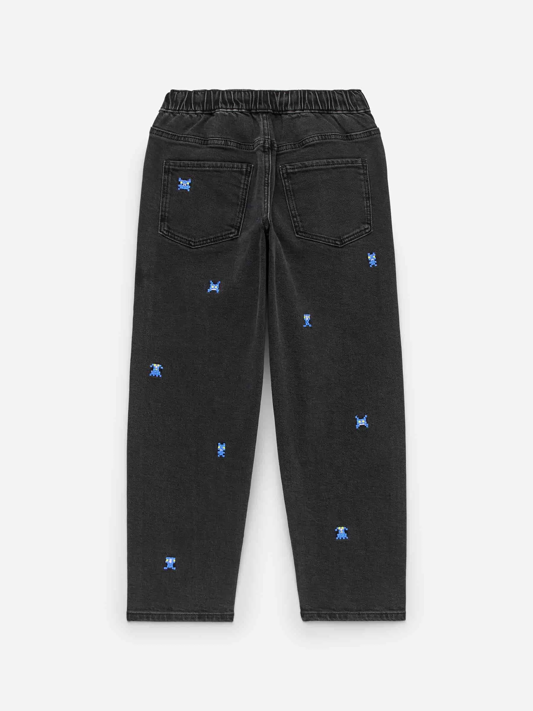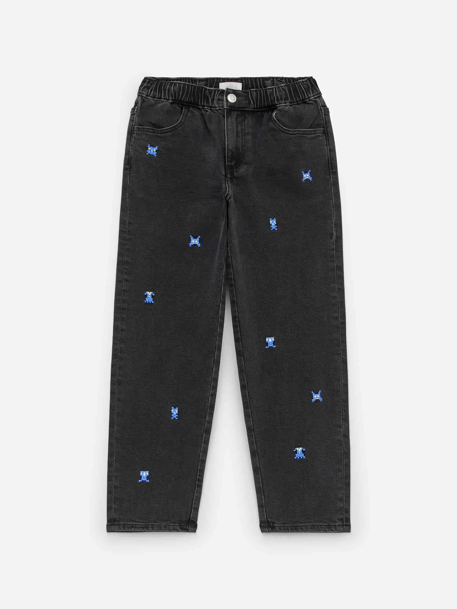 ARKE Kinder Bestickte Jeanshose Aus Schwarz
